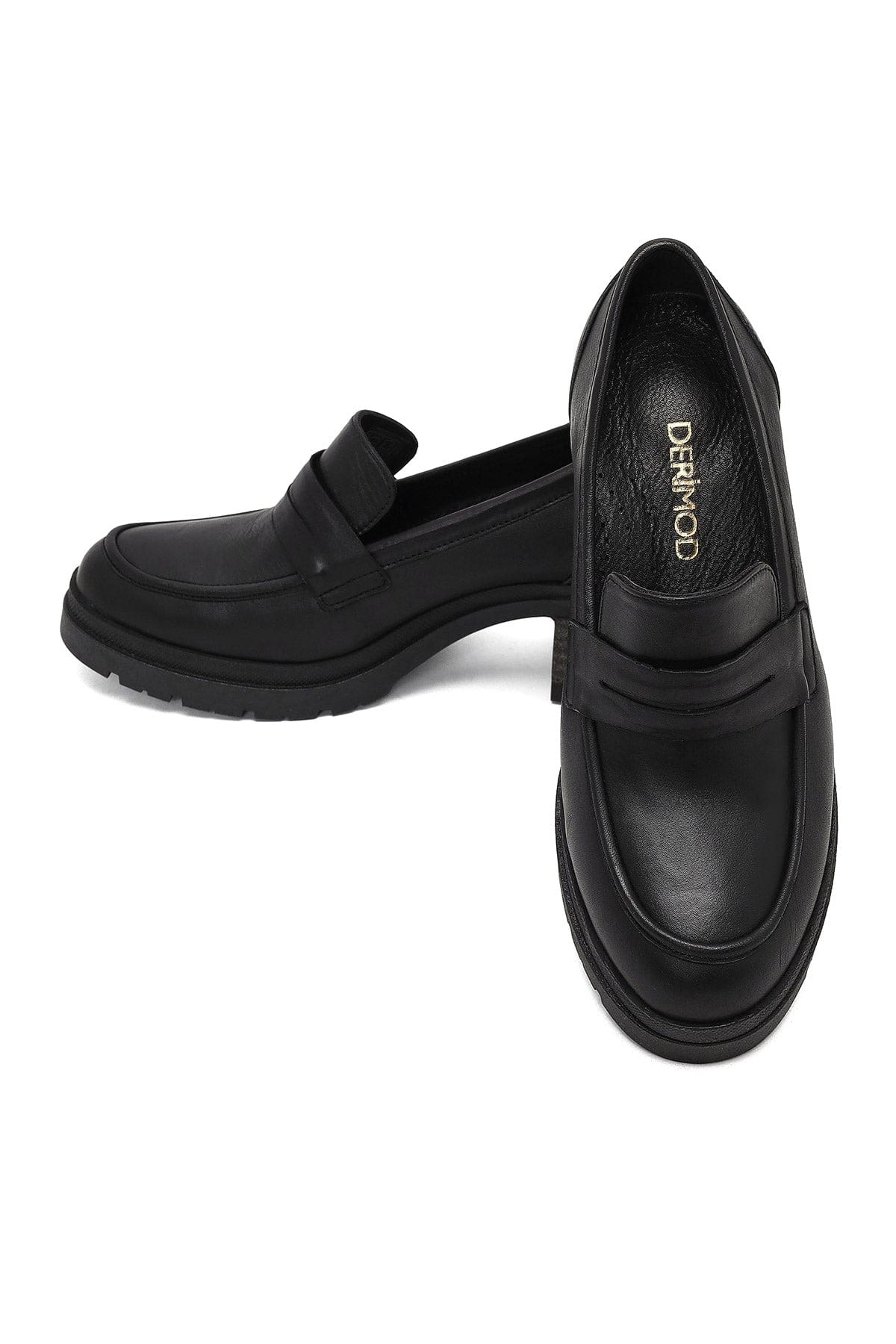 کفش لوفر زنانه مشکی چرمی پاشنه ضخیم دری مد
