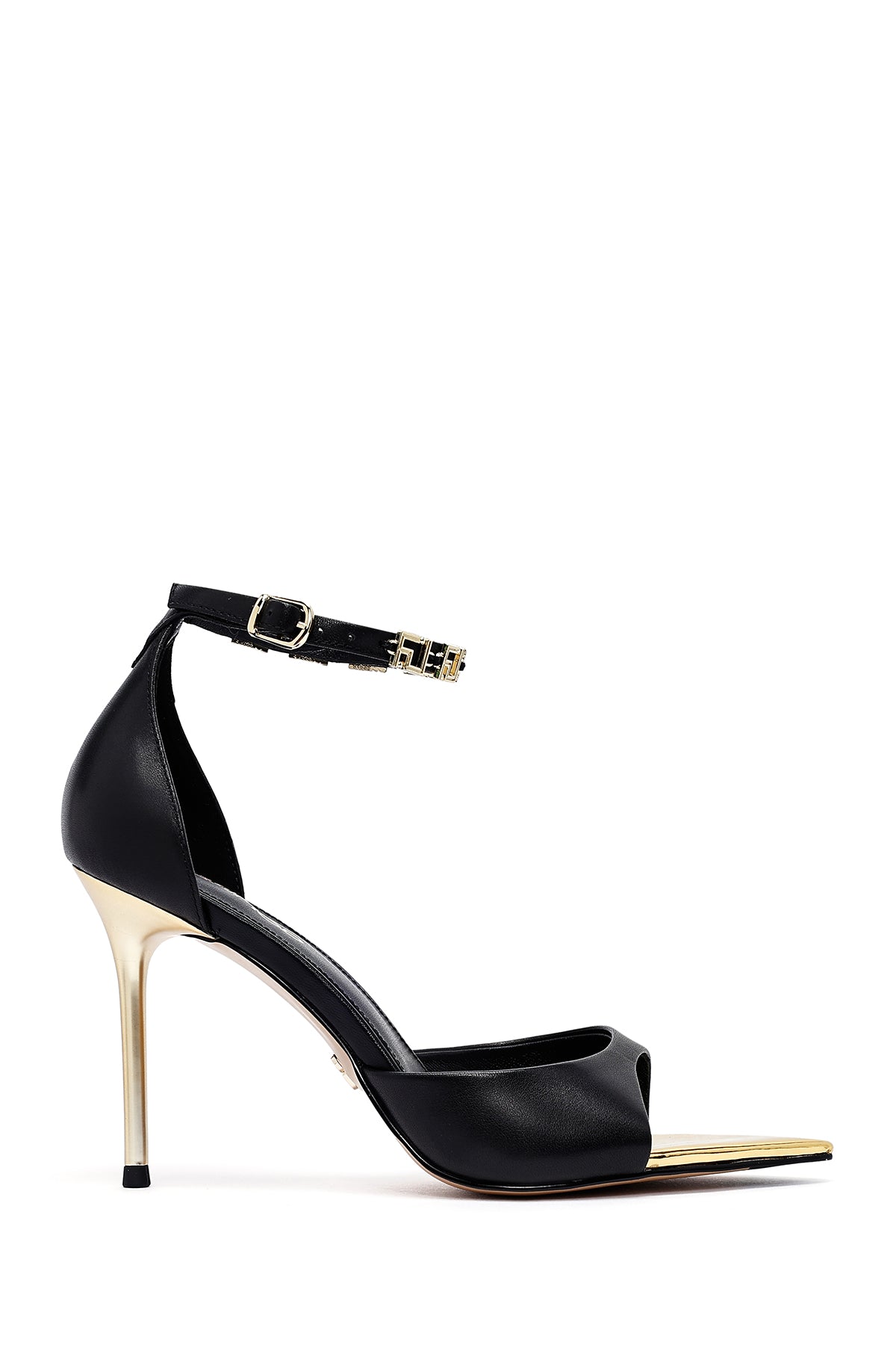 Kadın Siyah Bilekten Tokalı İnce Topuklu Deri Sandalet