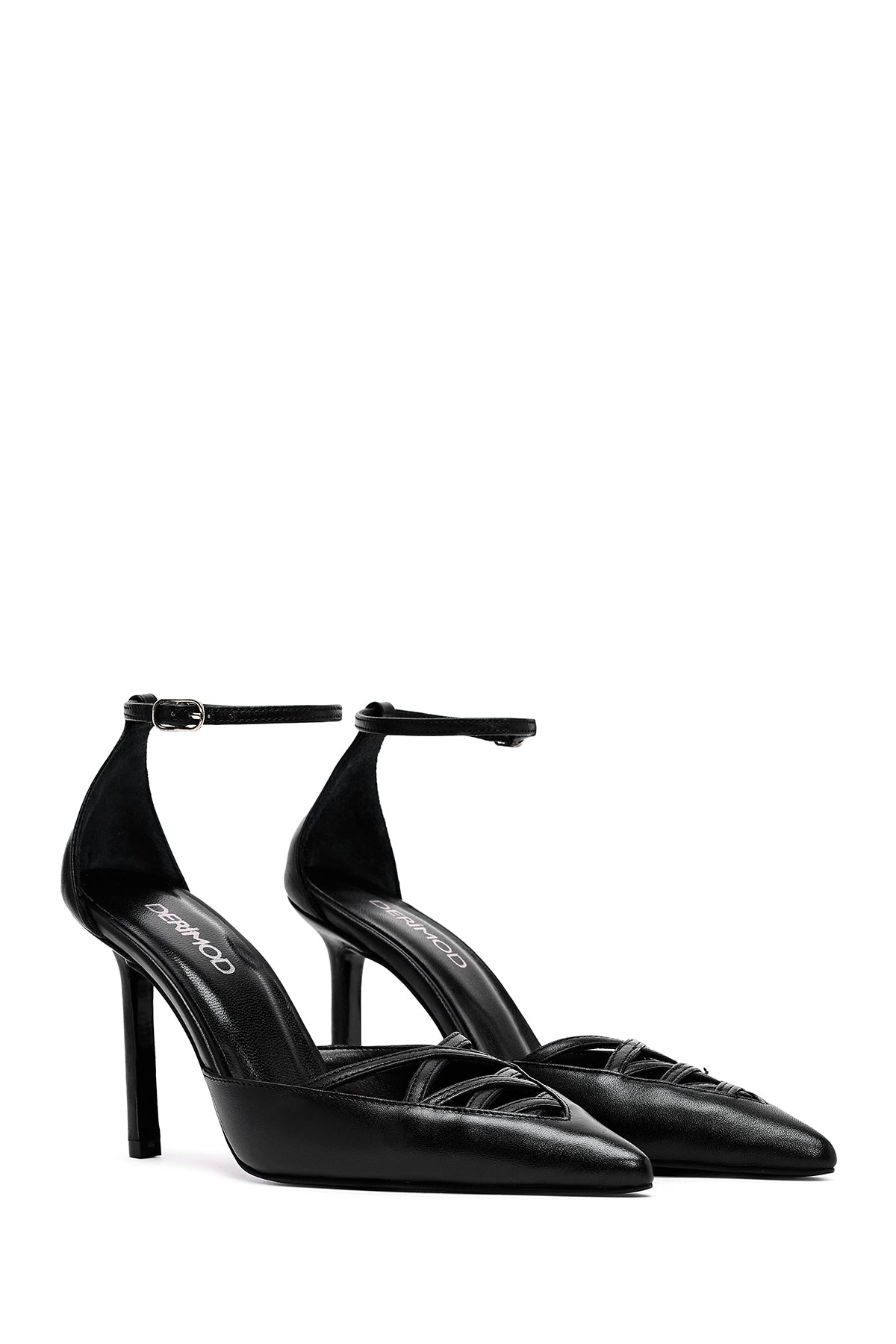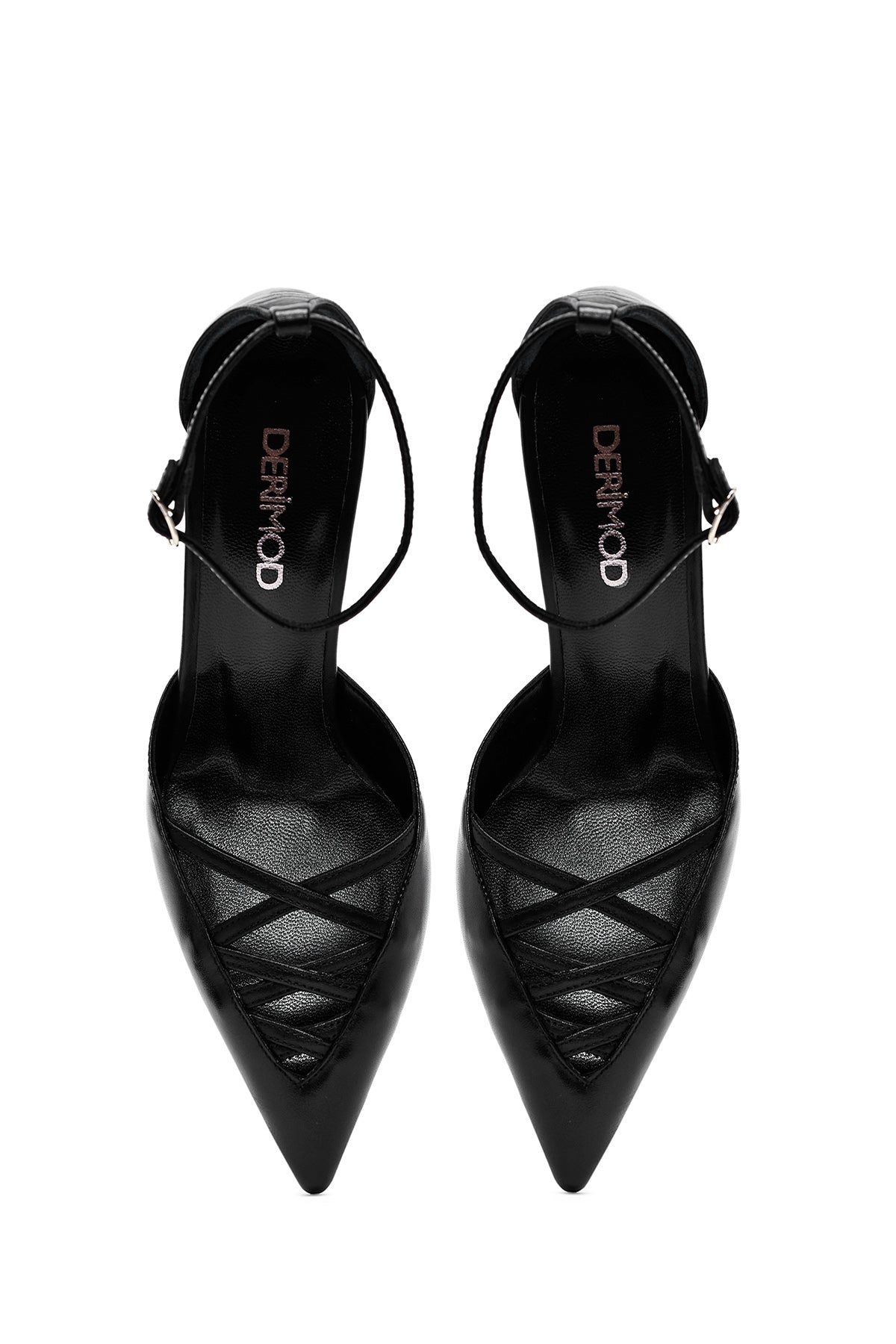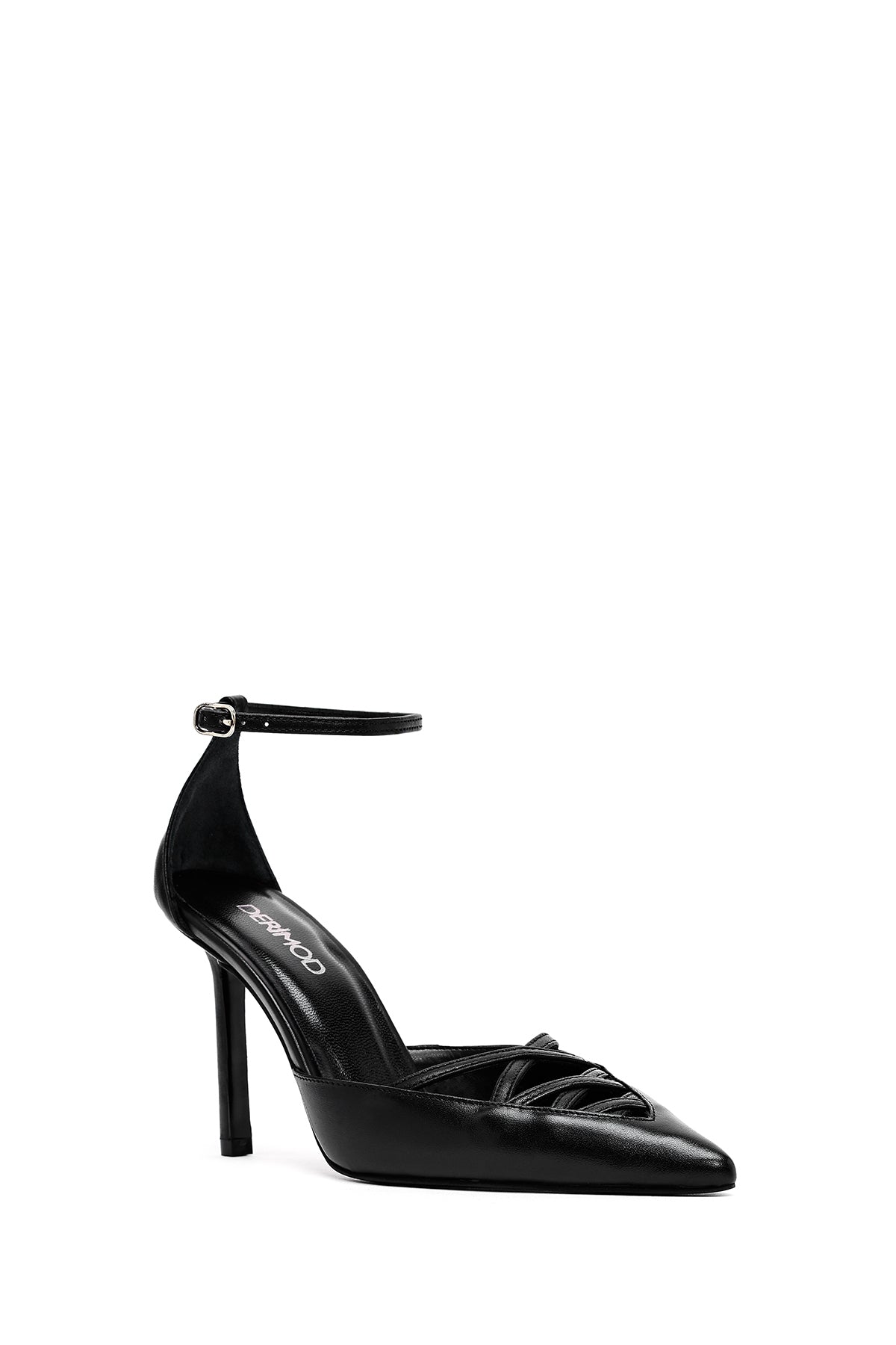 Kadın Siyah Bilekten Tokalı İnce Topuklu Deri Ayakkabı