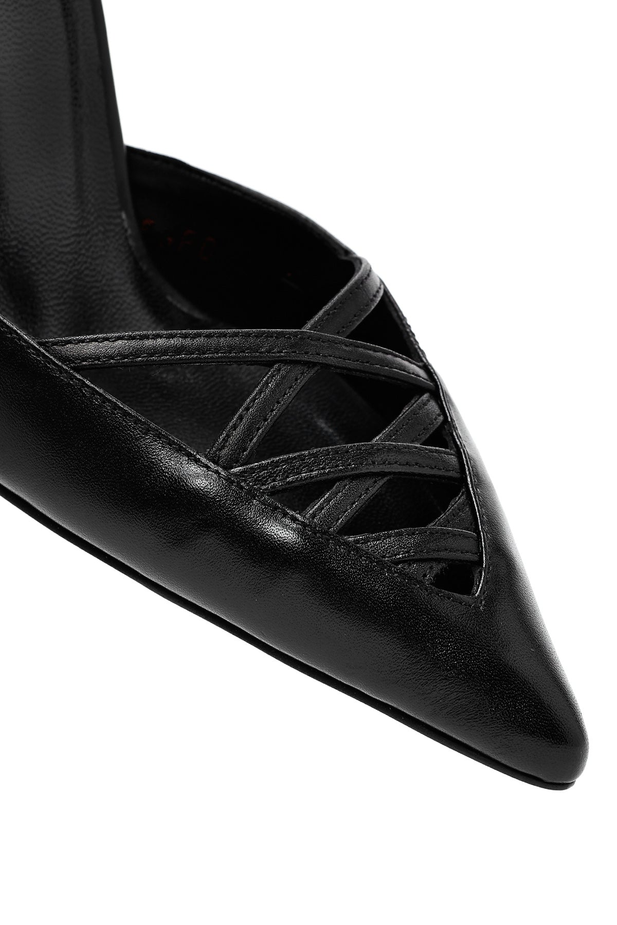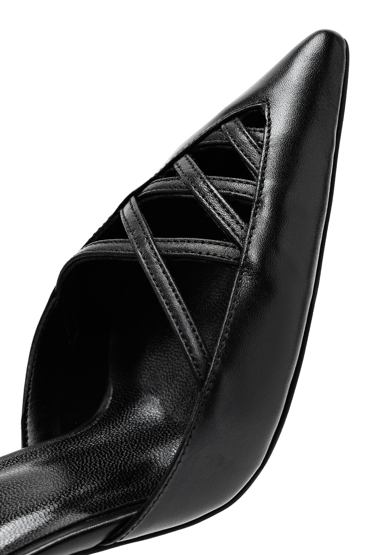 کفش زنانه مشکی چرم پاشنه نازک بنددار دری مد