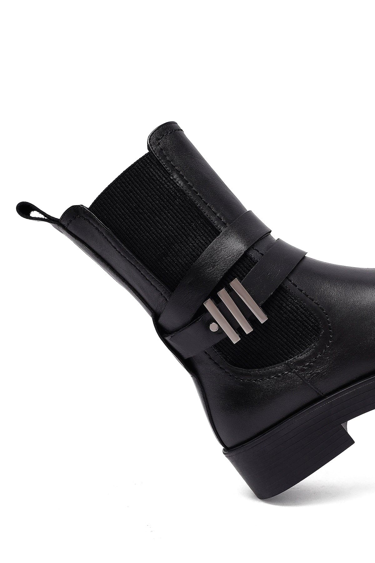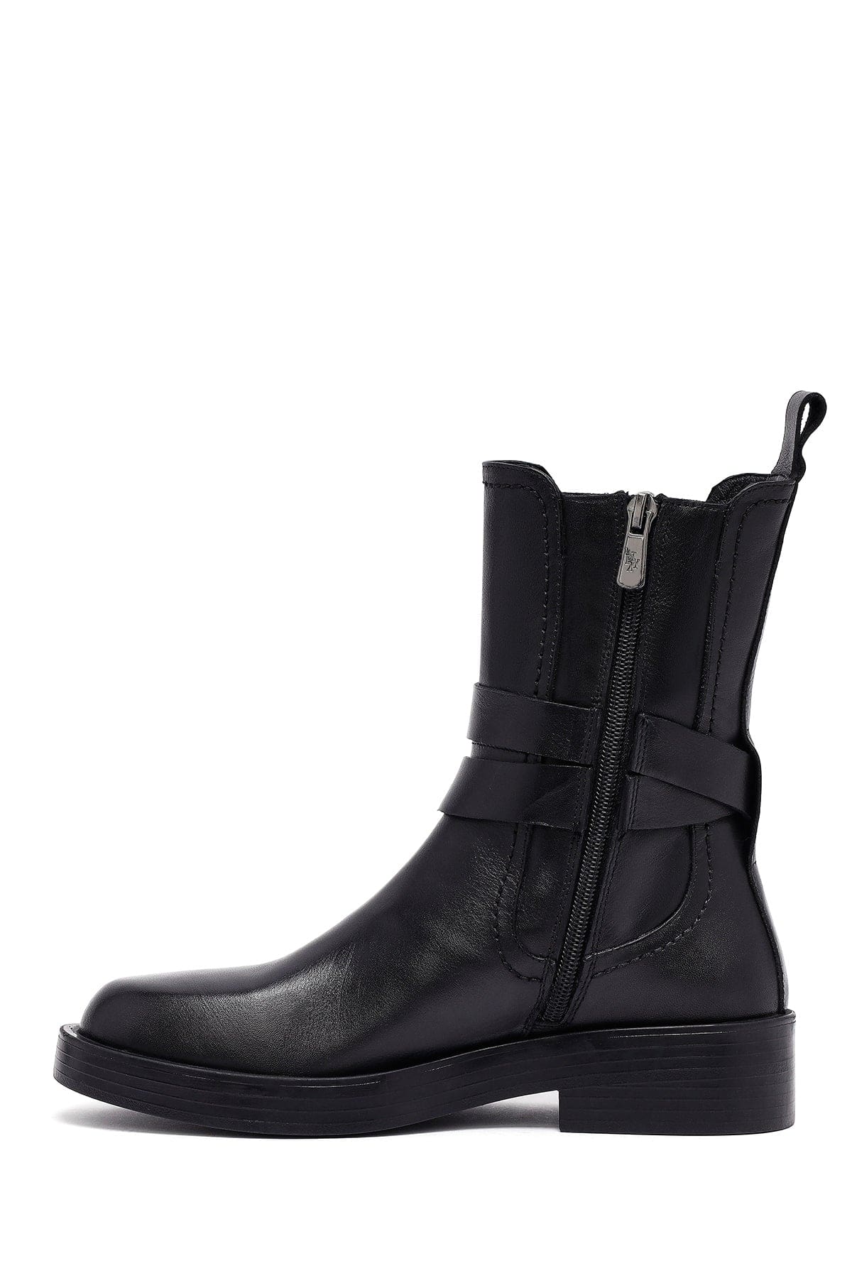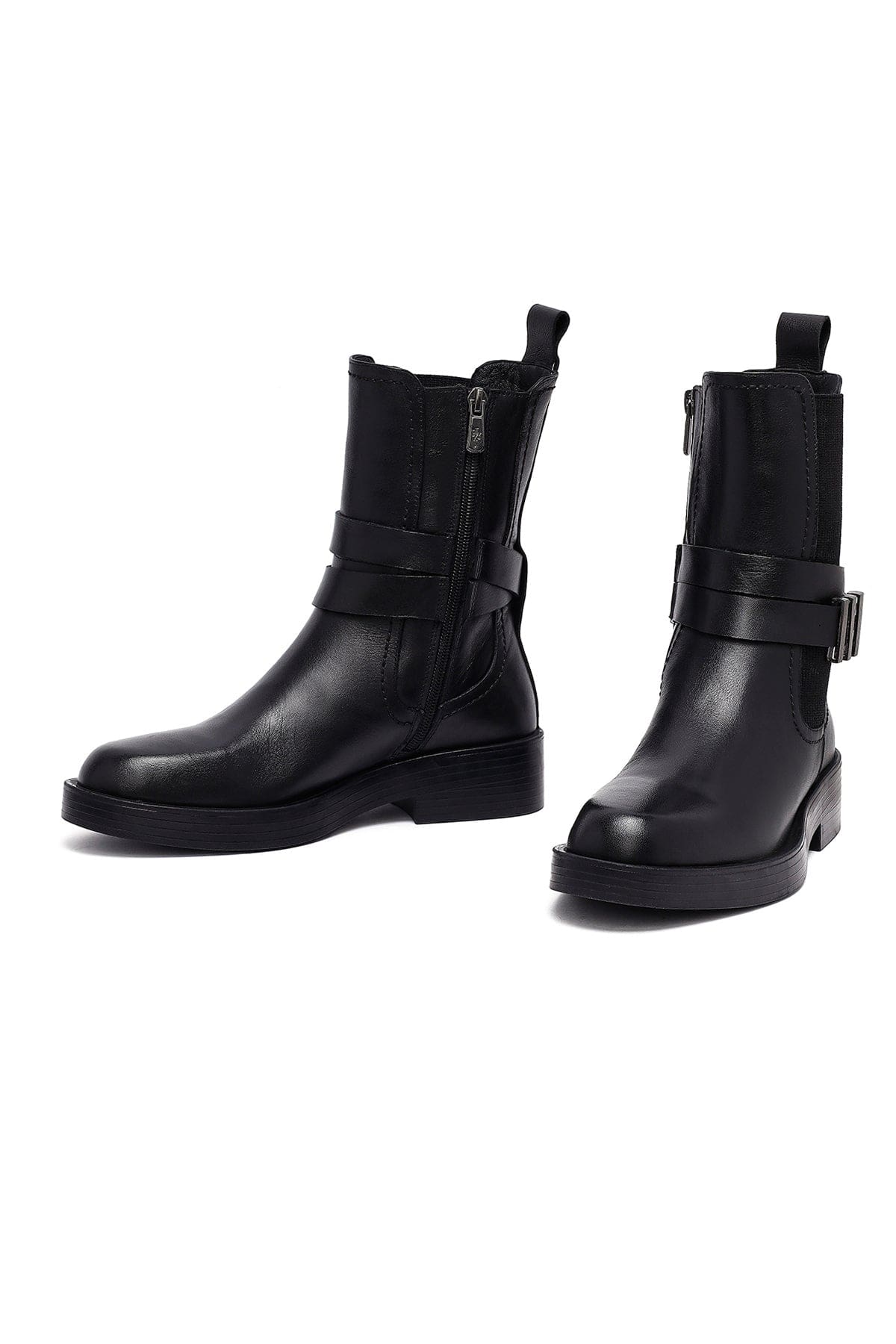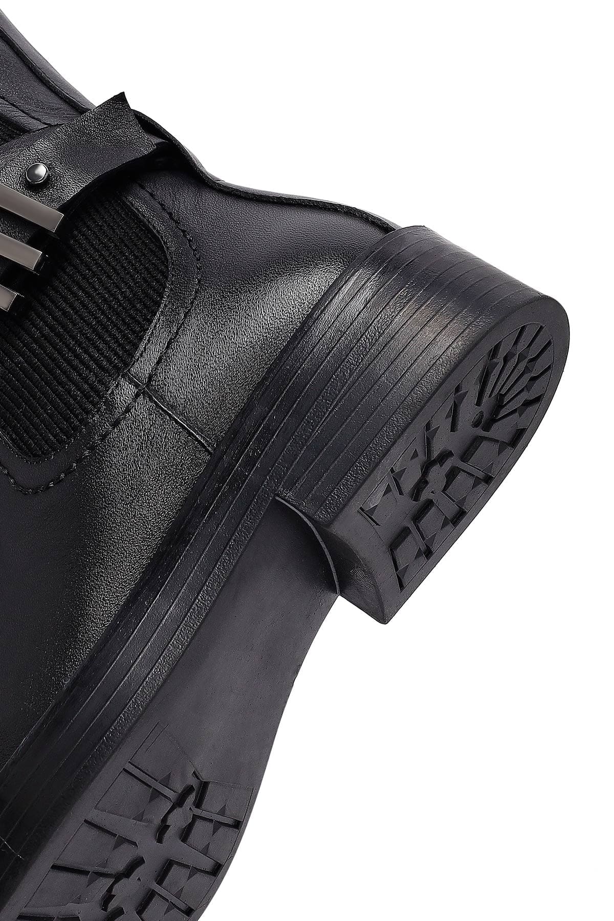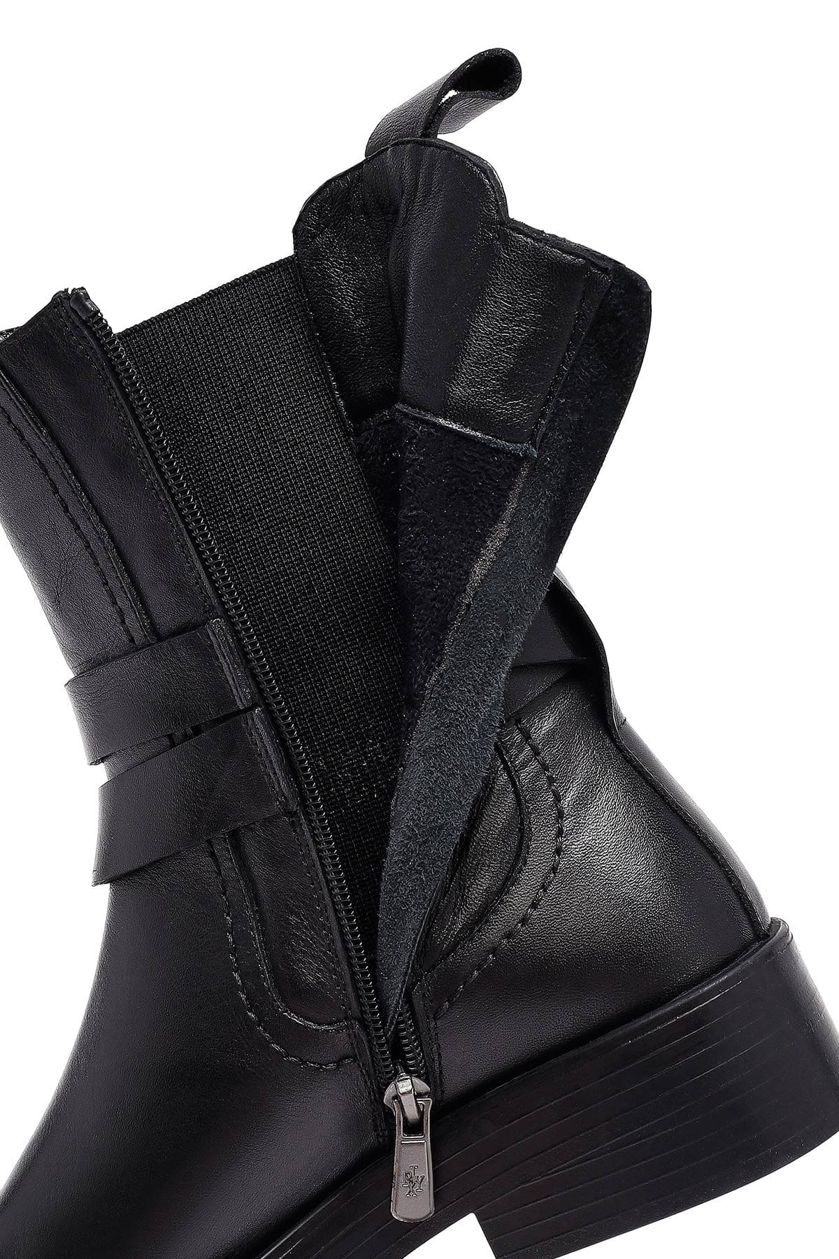 Kadın Siyah Fermuarlı Deri Bot