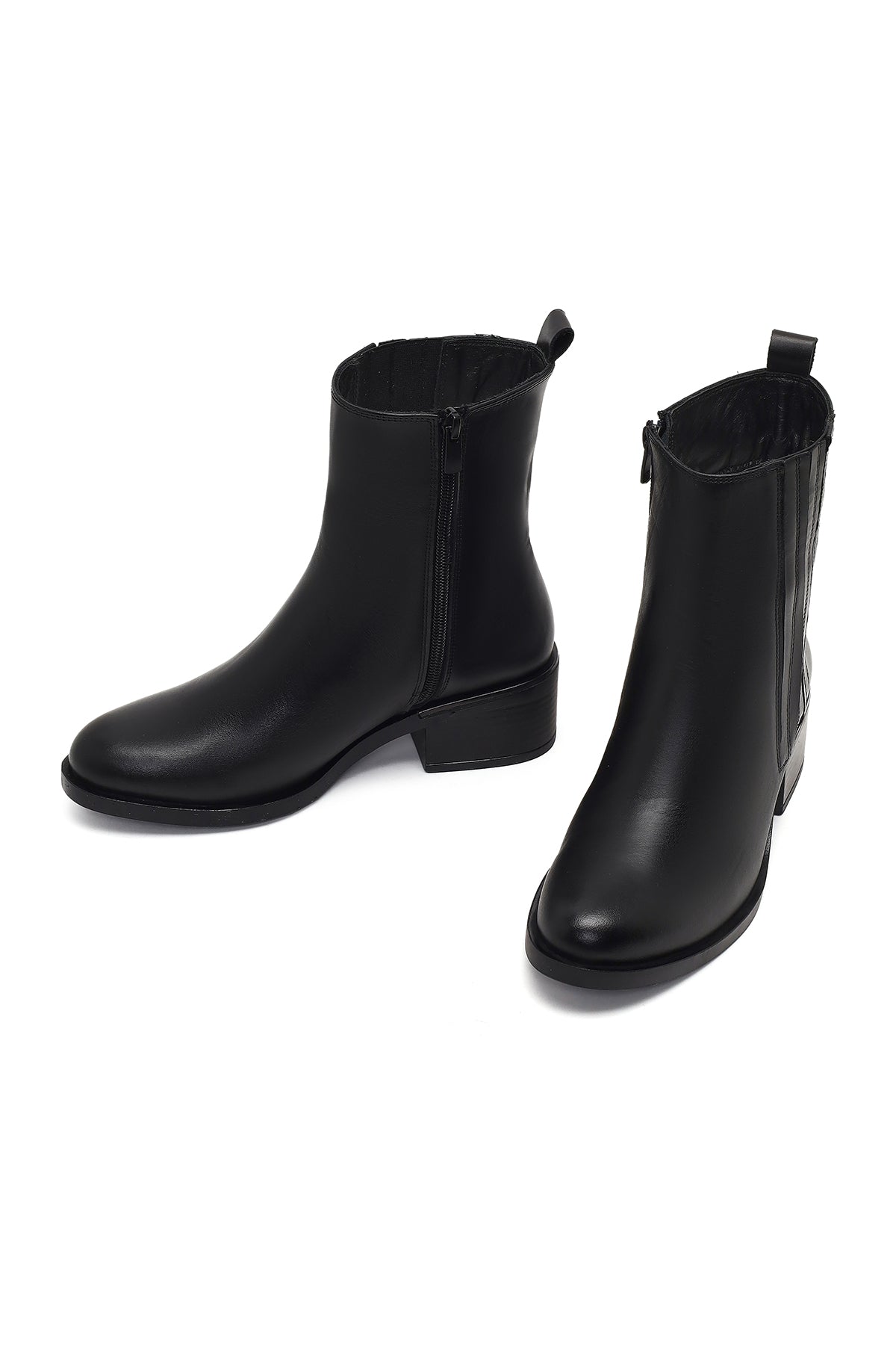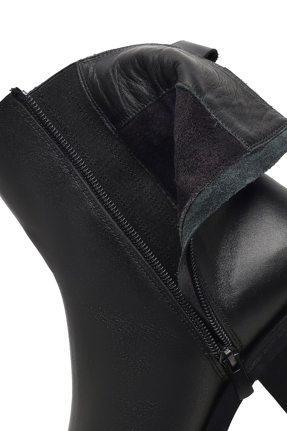 Kadın Siyah Fermuarlı Deri Bot