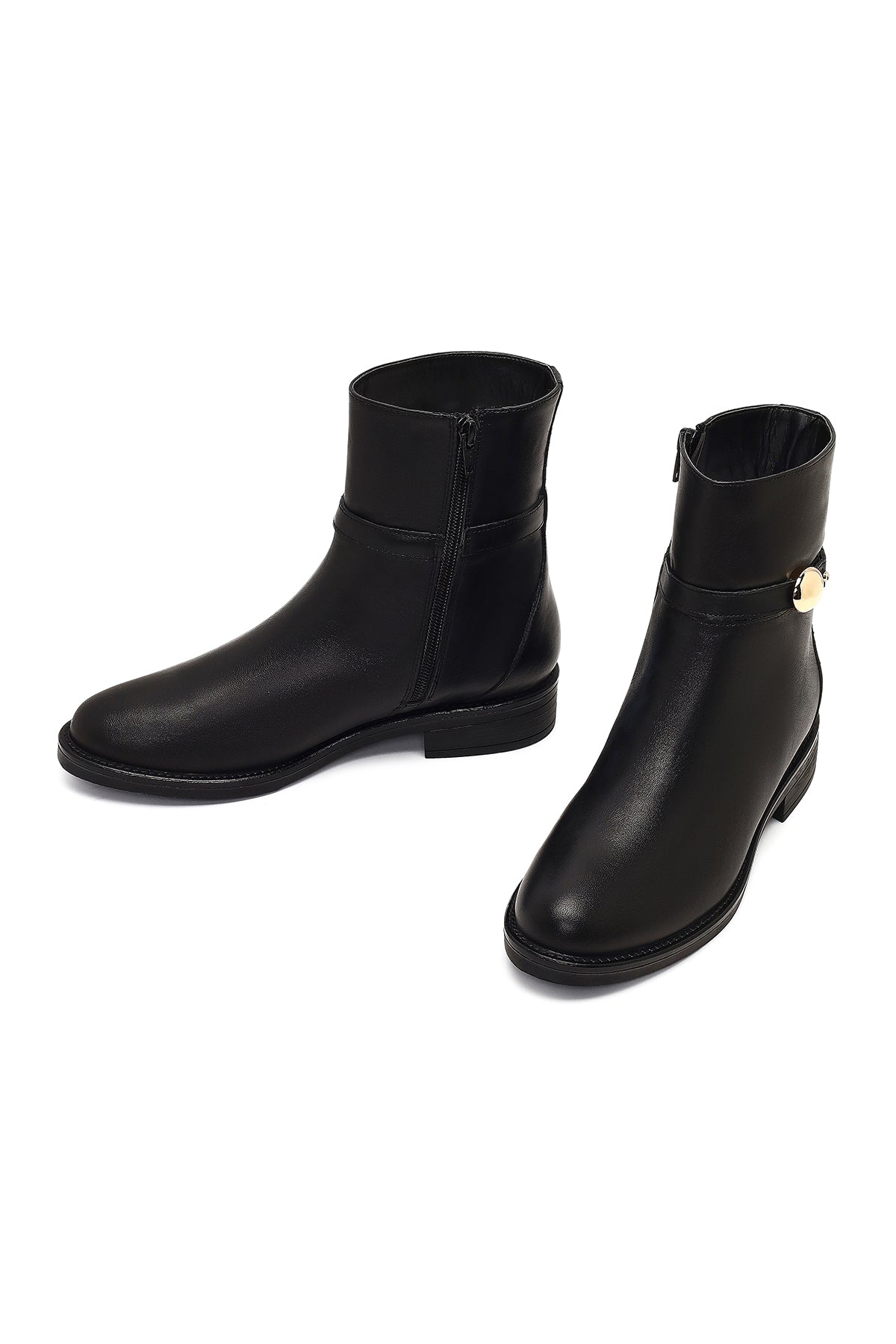 Kadın Siyah Fermuarlı Deri Bot