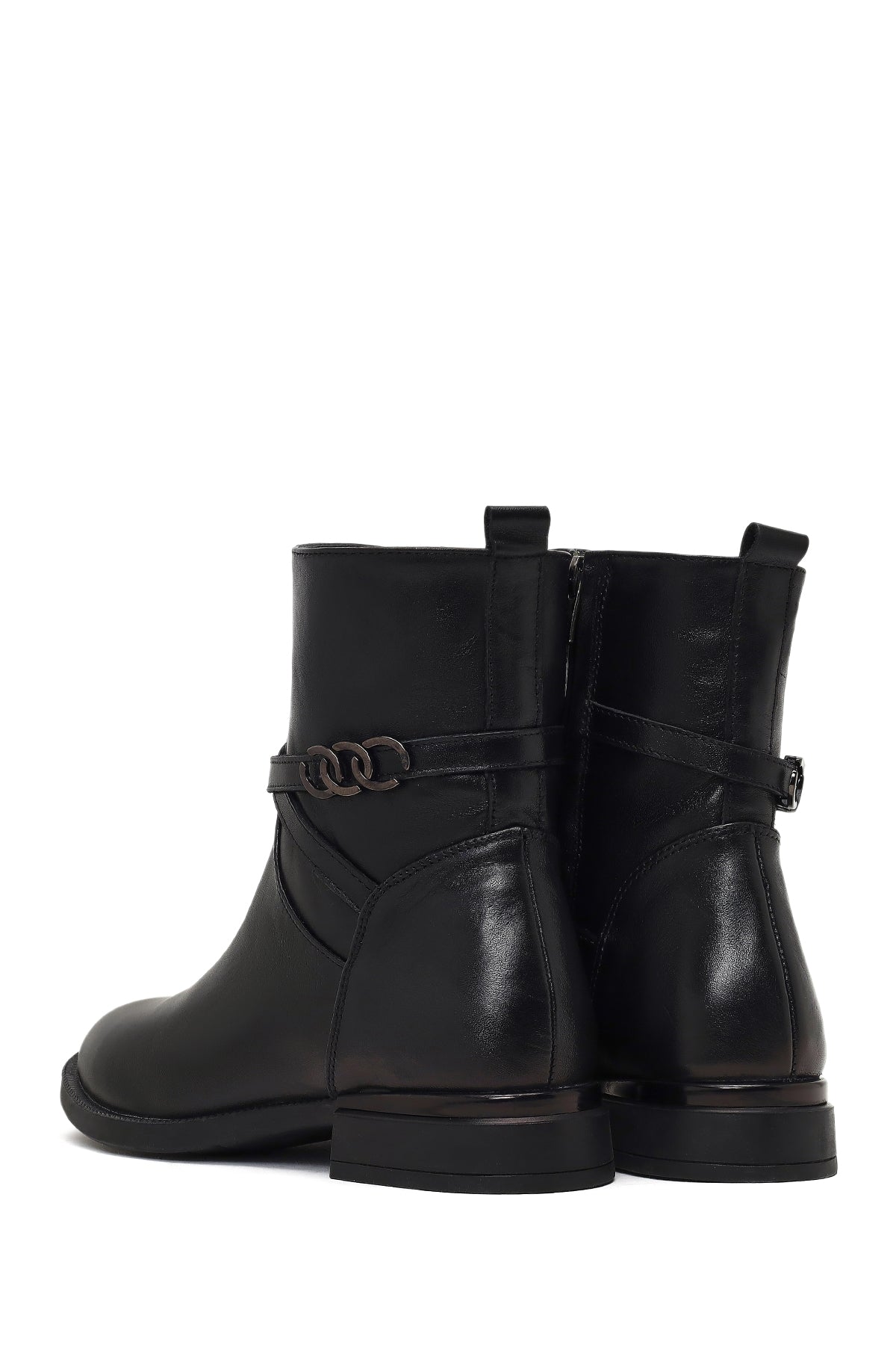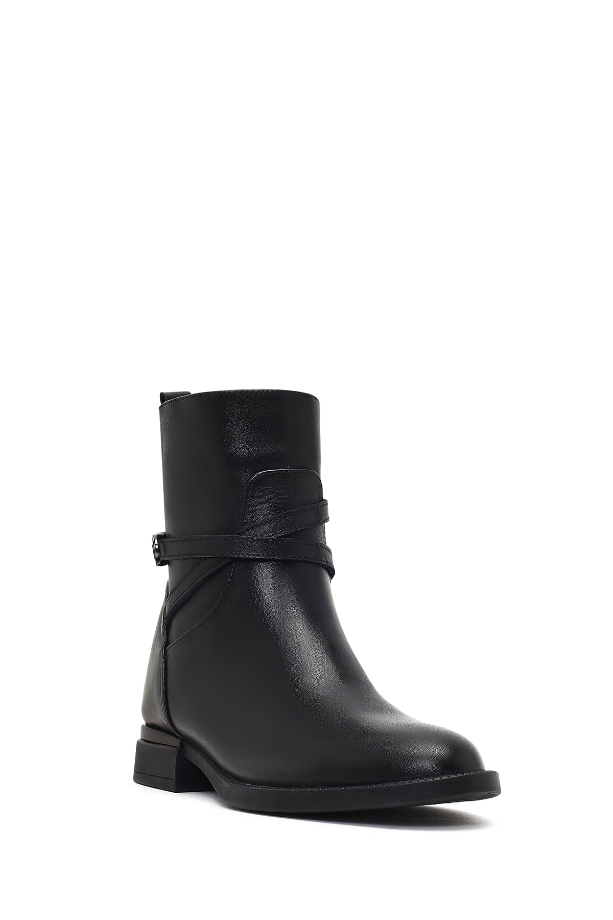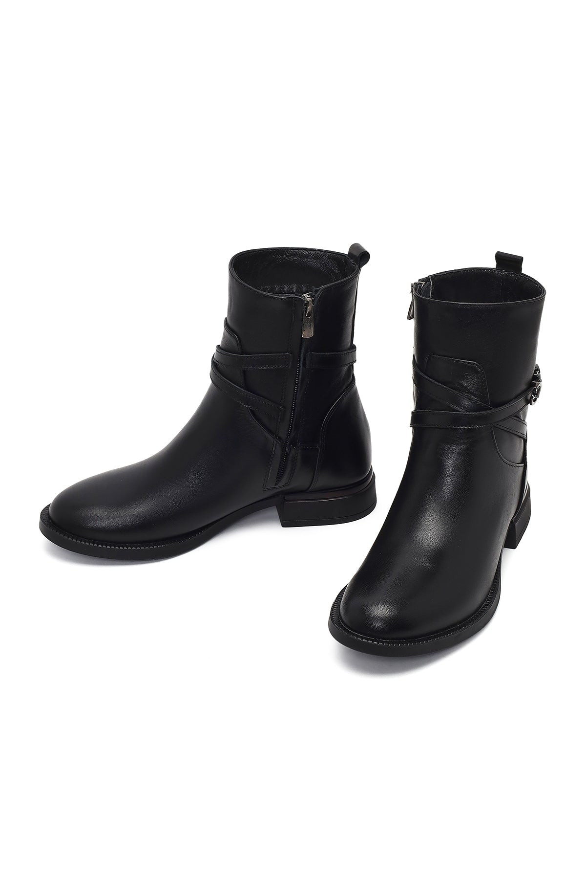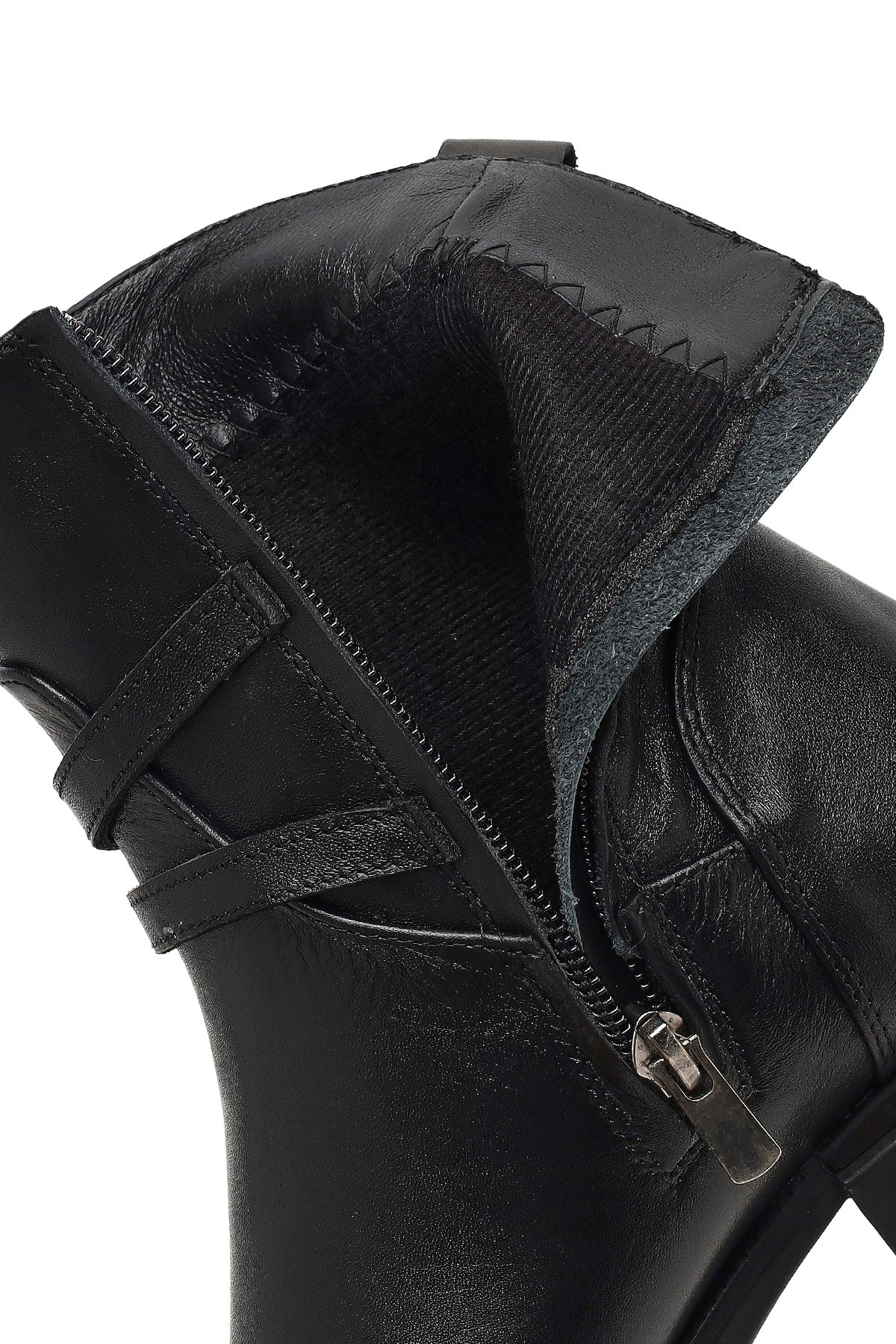 Kadın Siyah Fermuarlı Tokalı Deri Bot