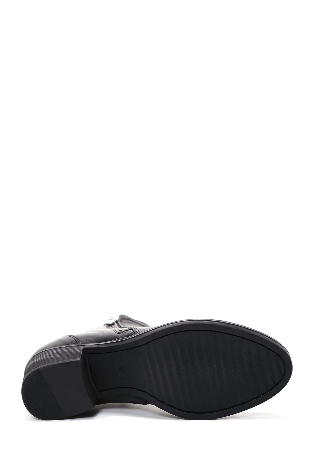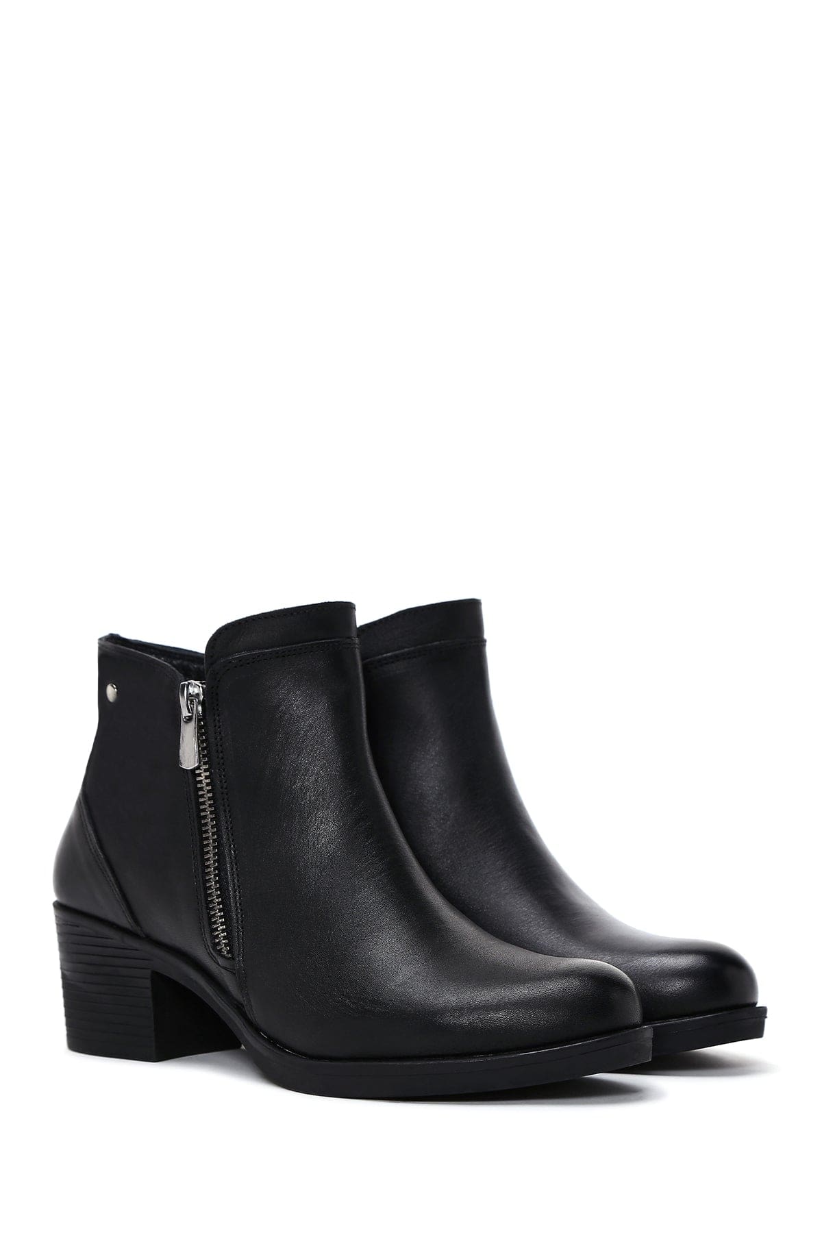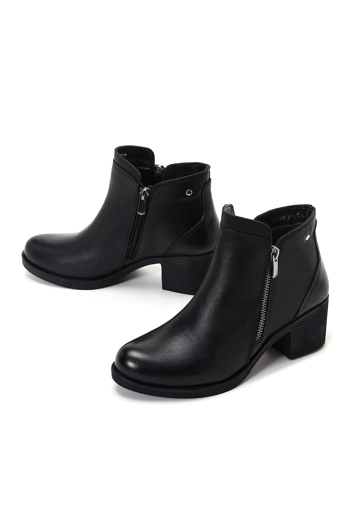 Kadın Siyah Fermuarlı Topuklu Deri Bot