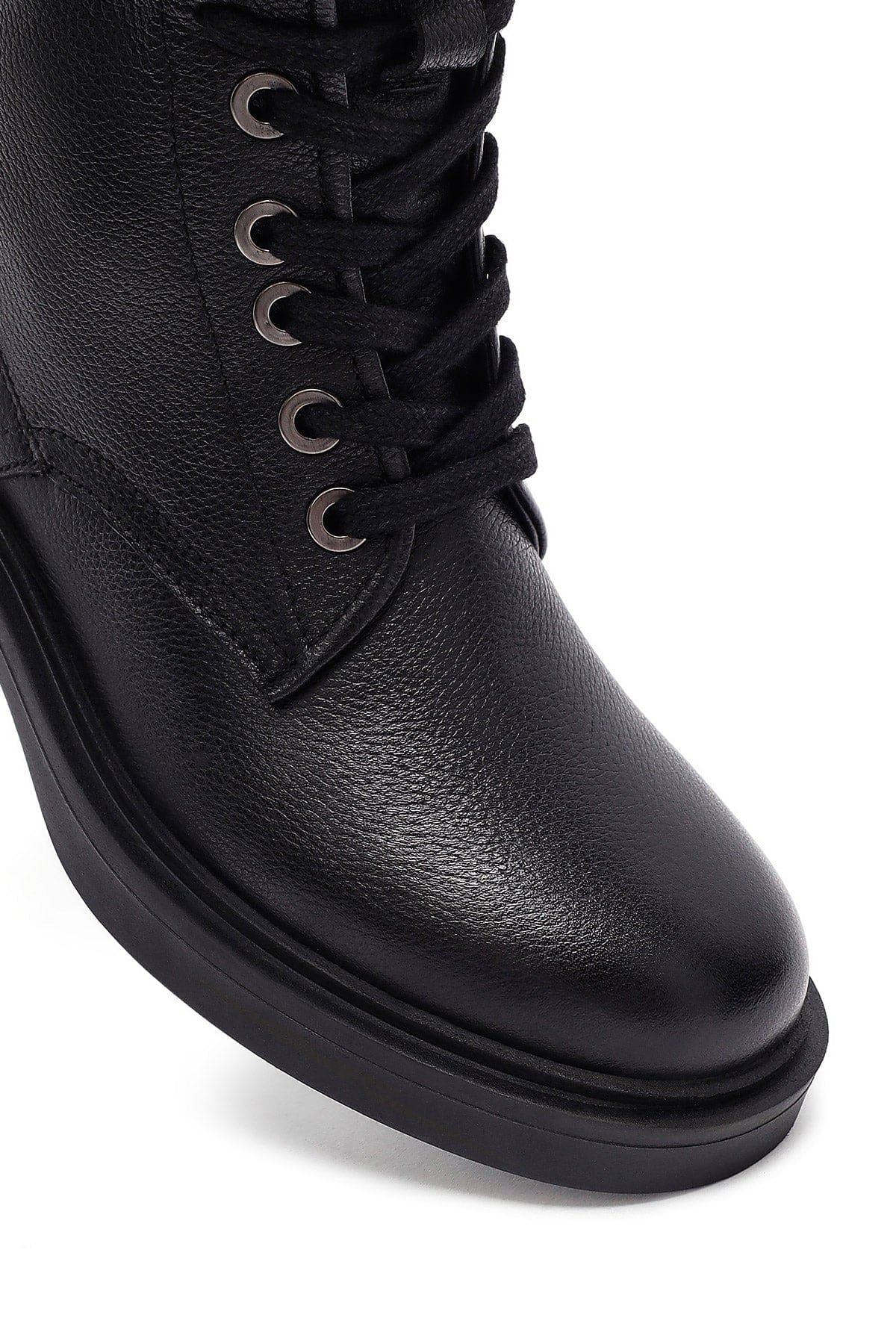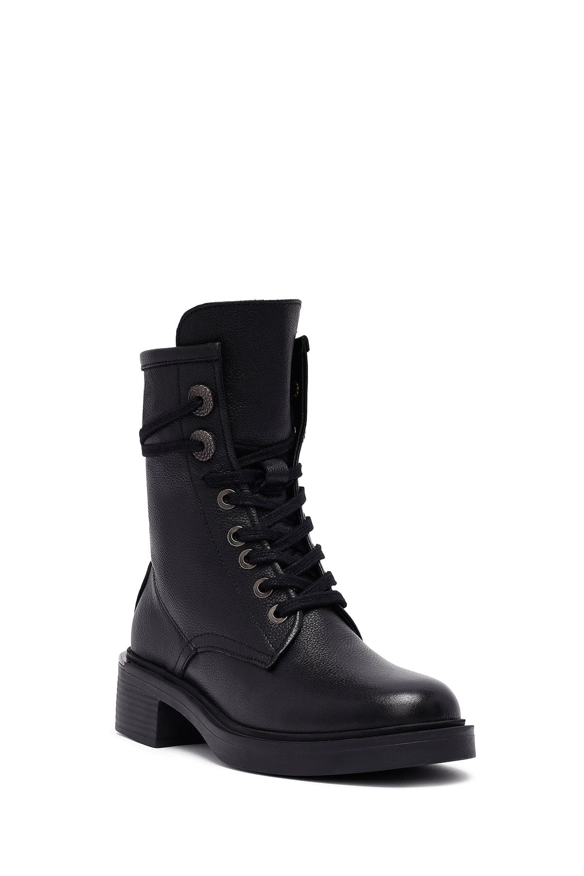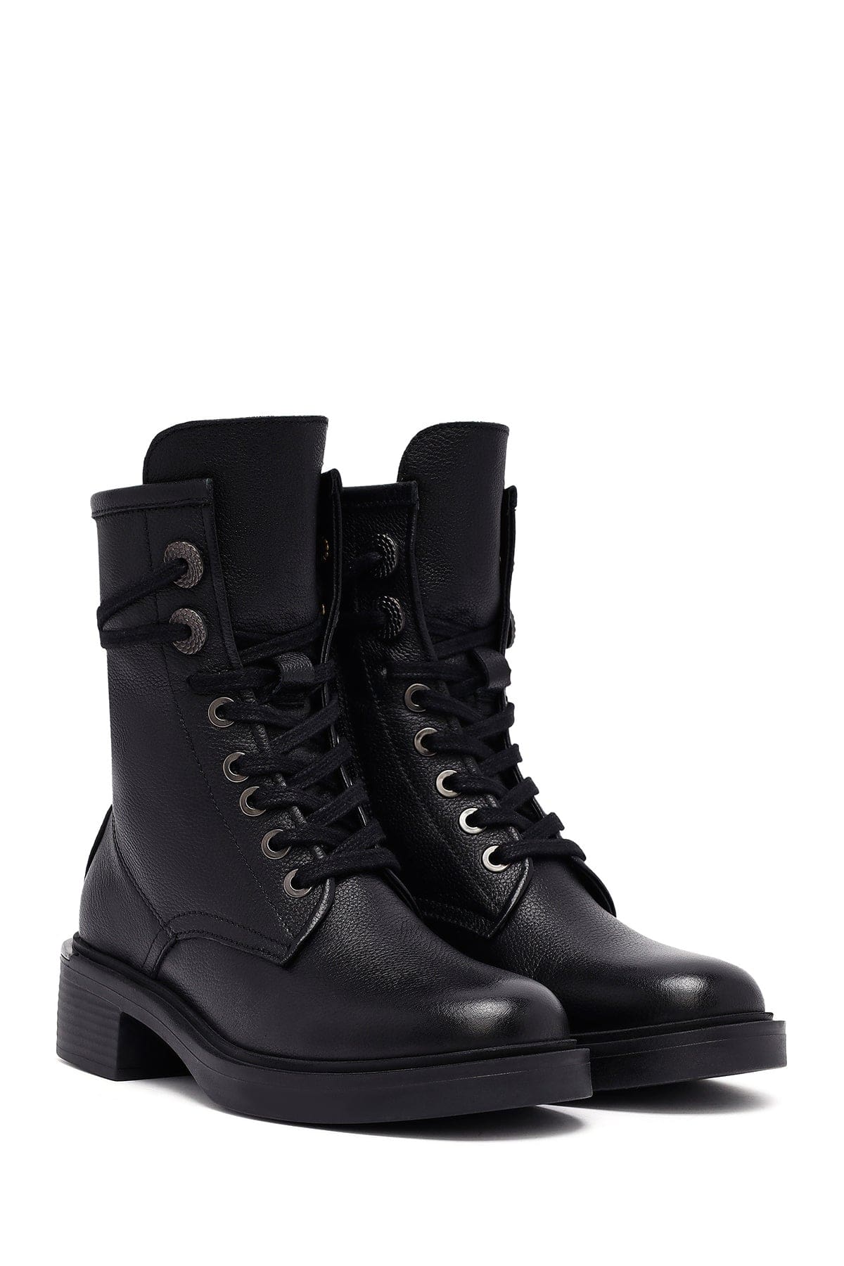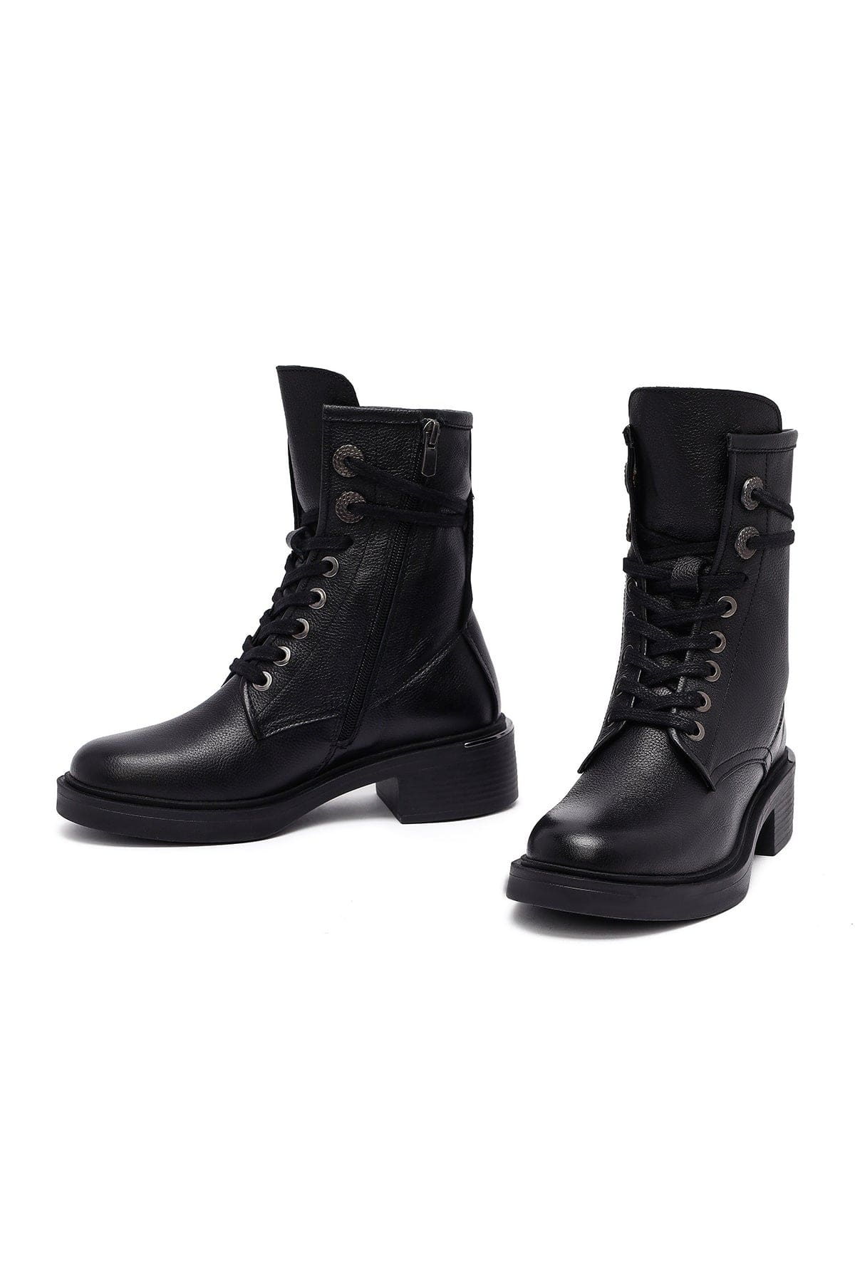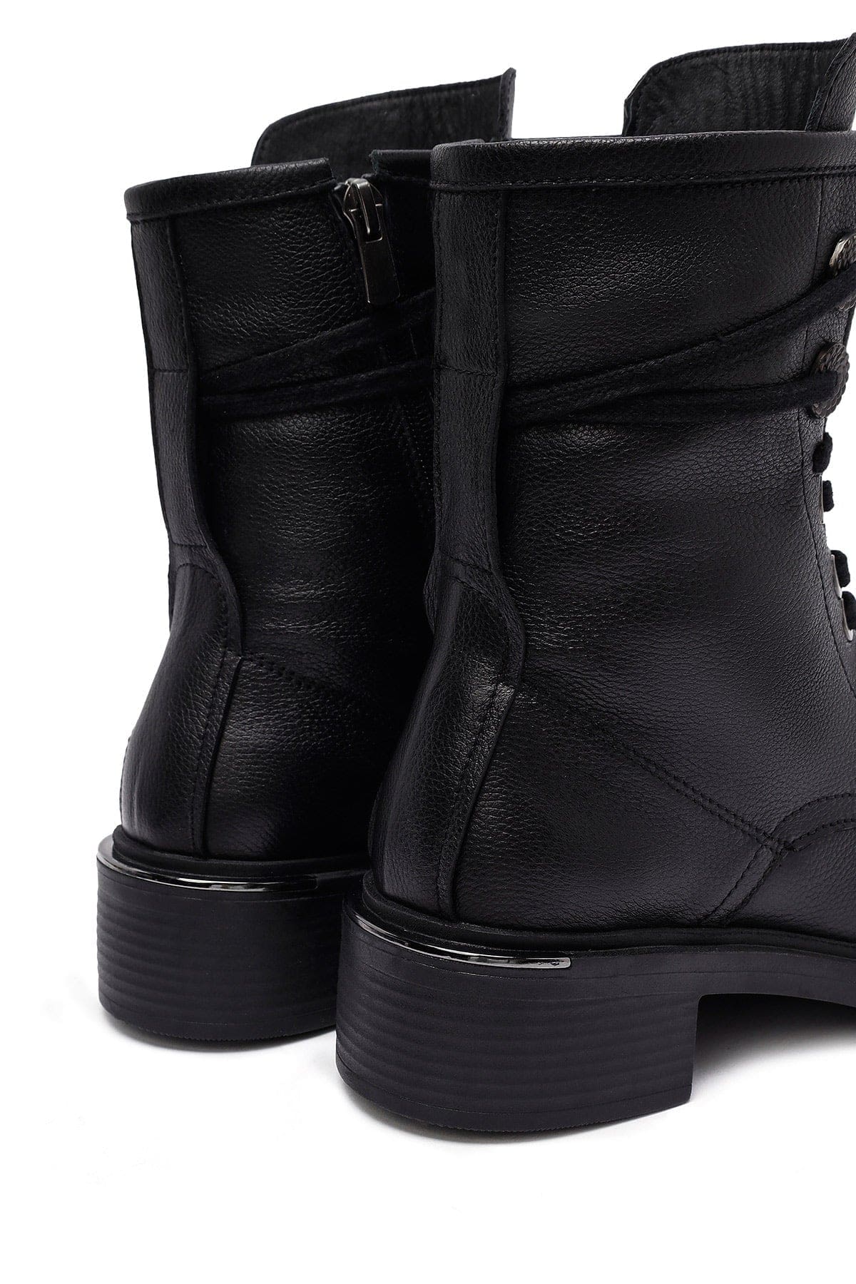 Kadın Siyah Fermuarlı Bağcıklı Deri Postal Bot
