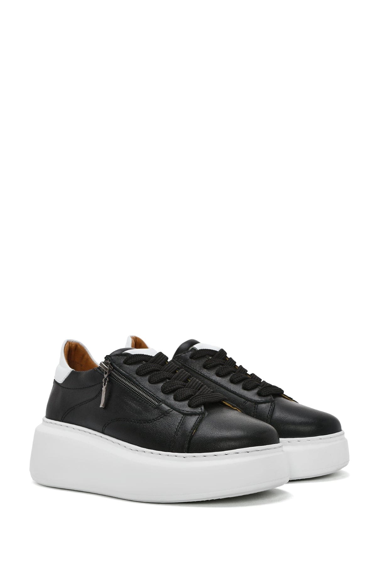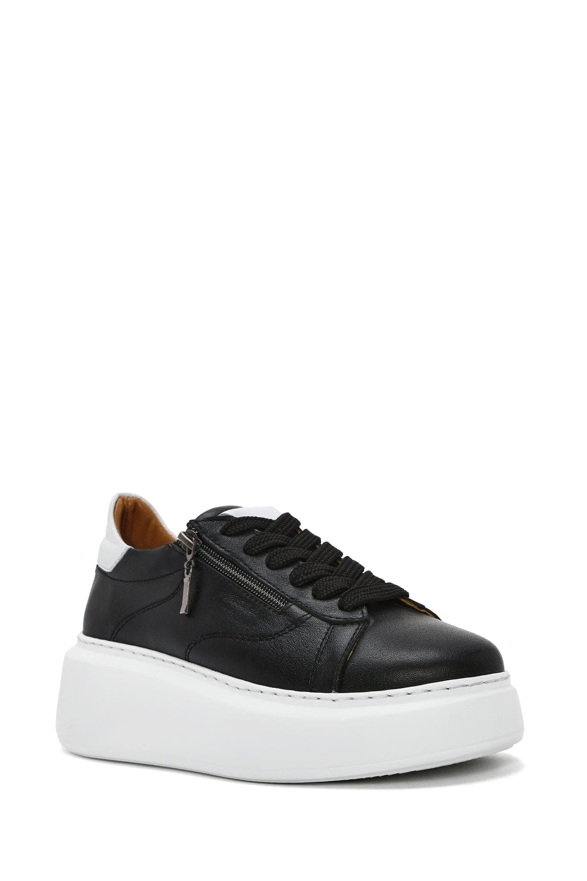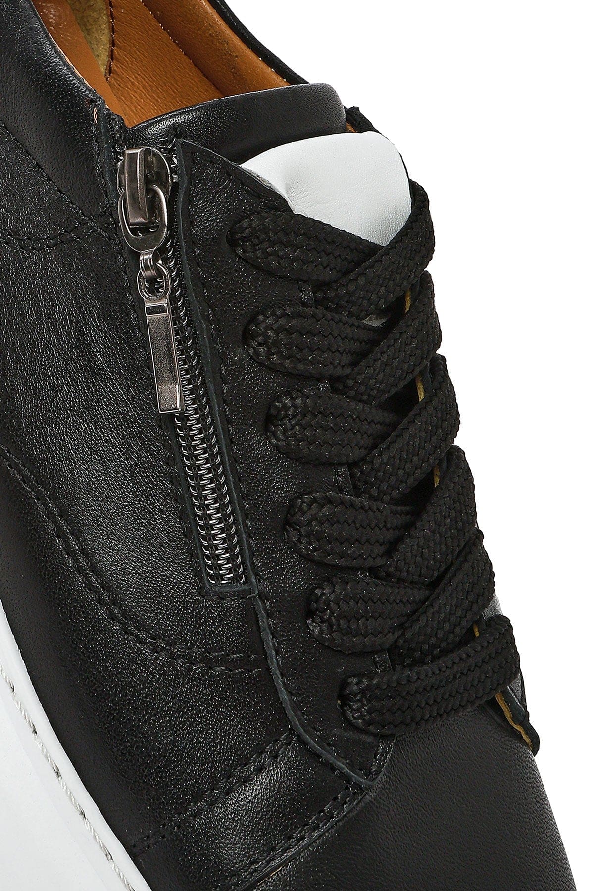 Kadın Siyah Fermuarlı Bağcıklı Kalın Tabanlı Deri Sneaker