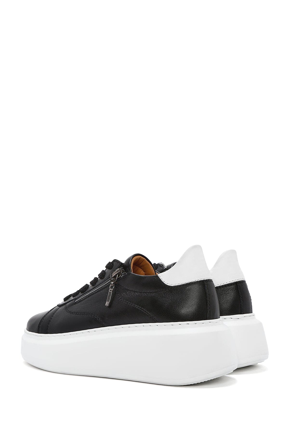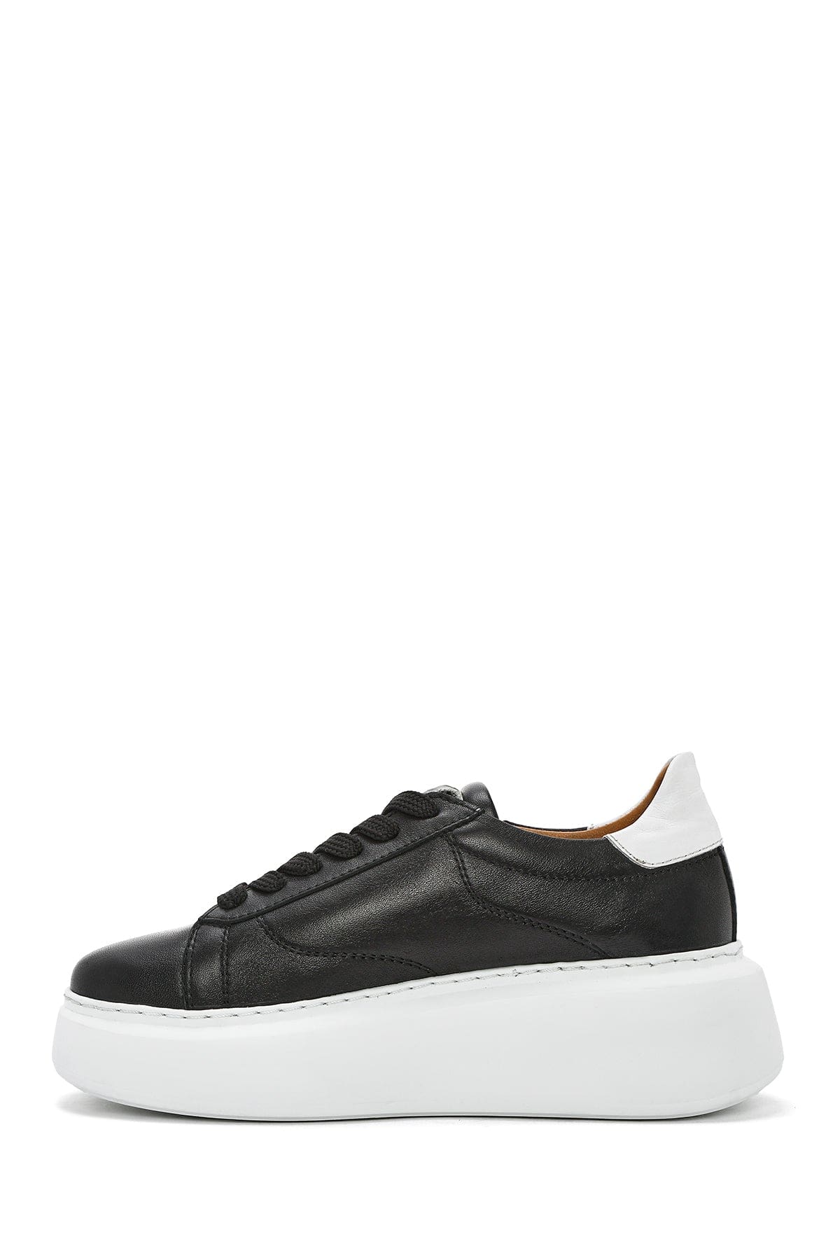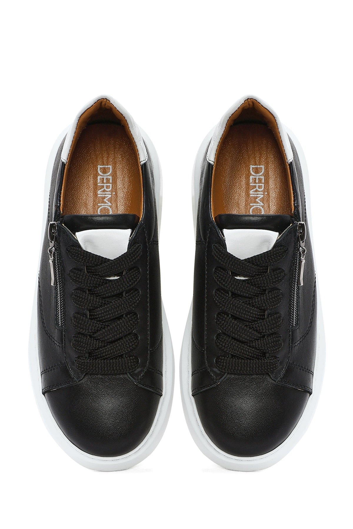Kadın Siyah Fermuarlı Bağcıklı Kalın Tabanlı Deri Sneaker
