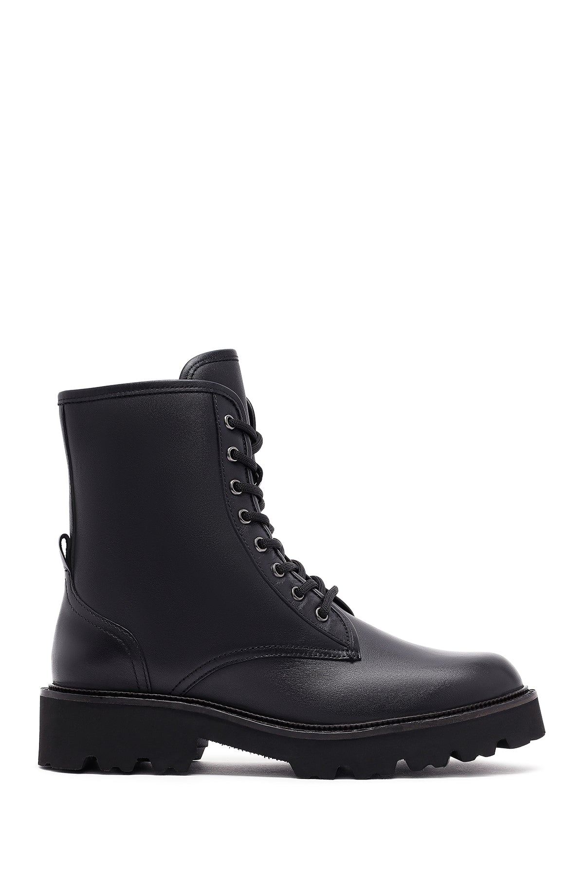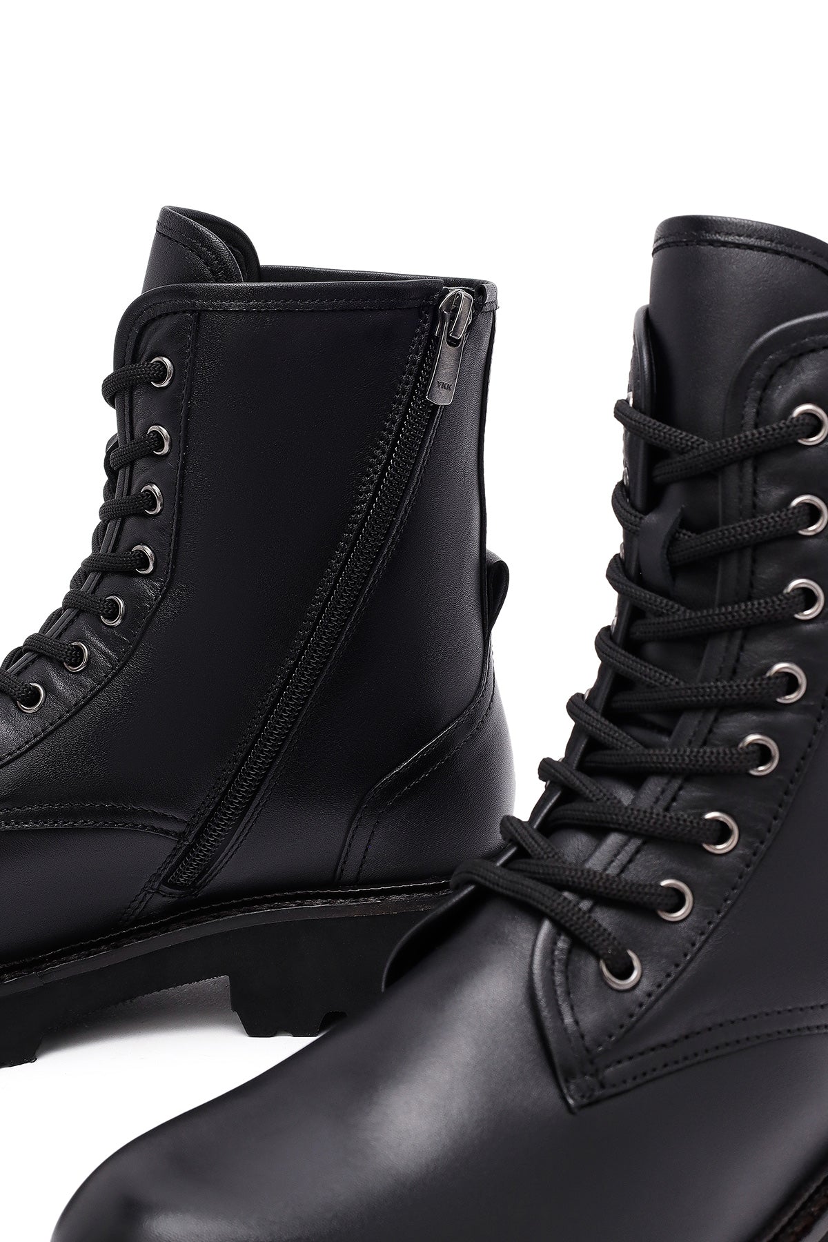 Kadın Siyah Fermuarlı Deri Postal Bot
