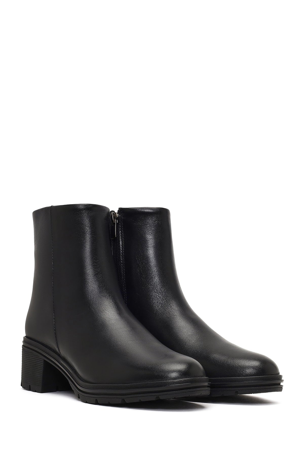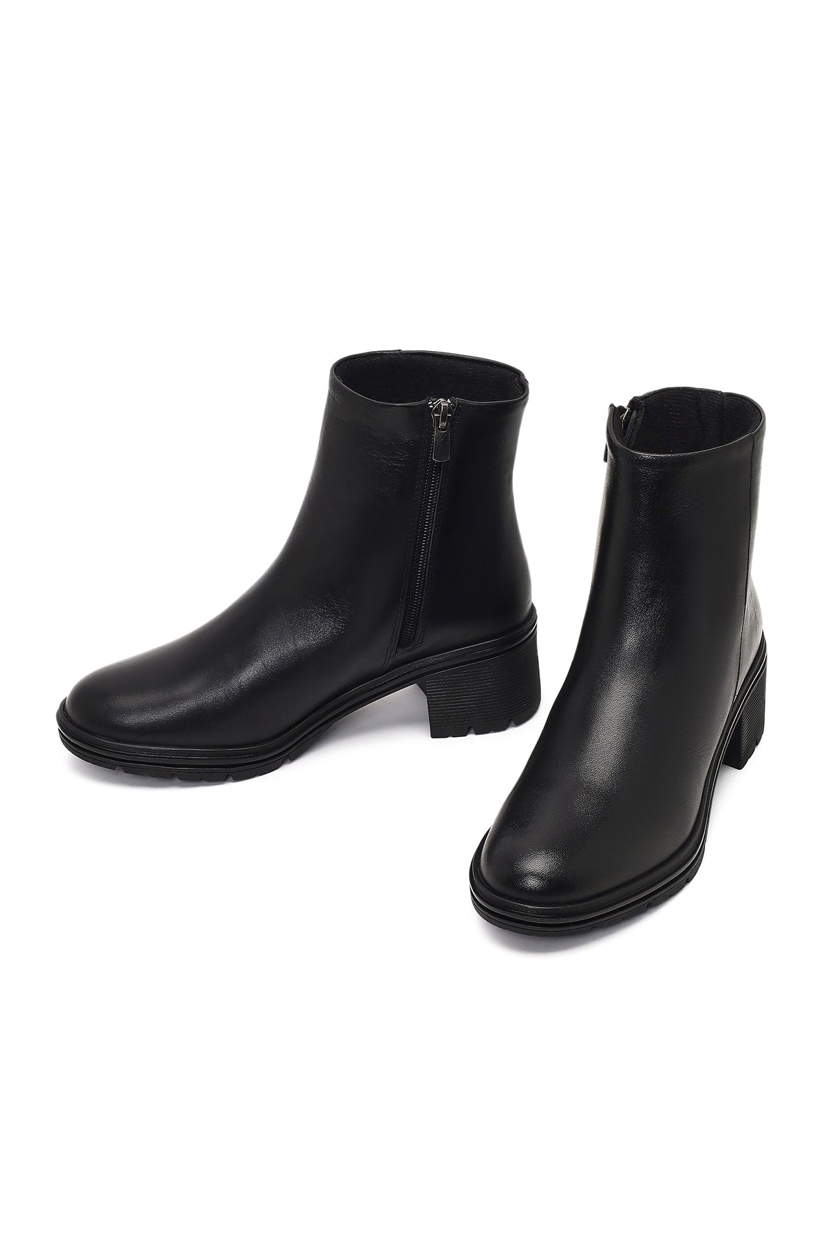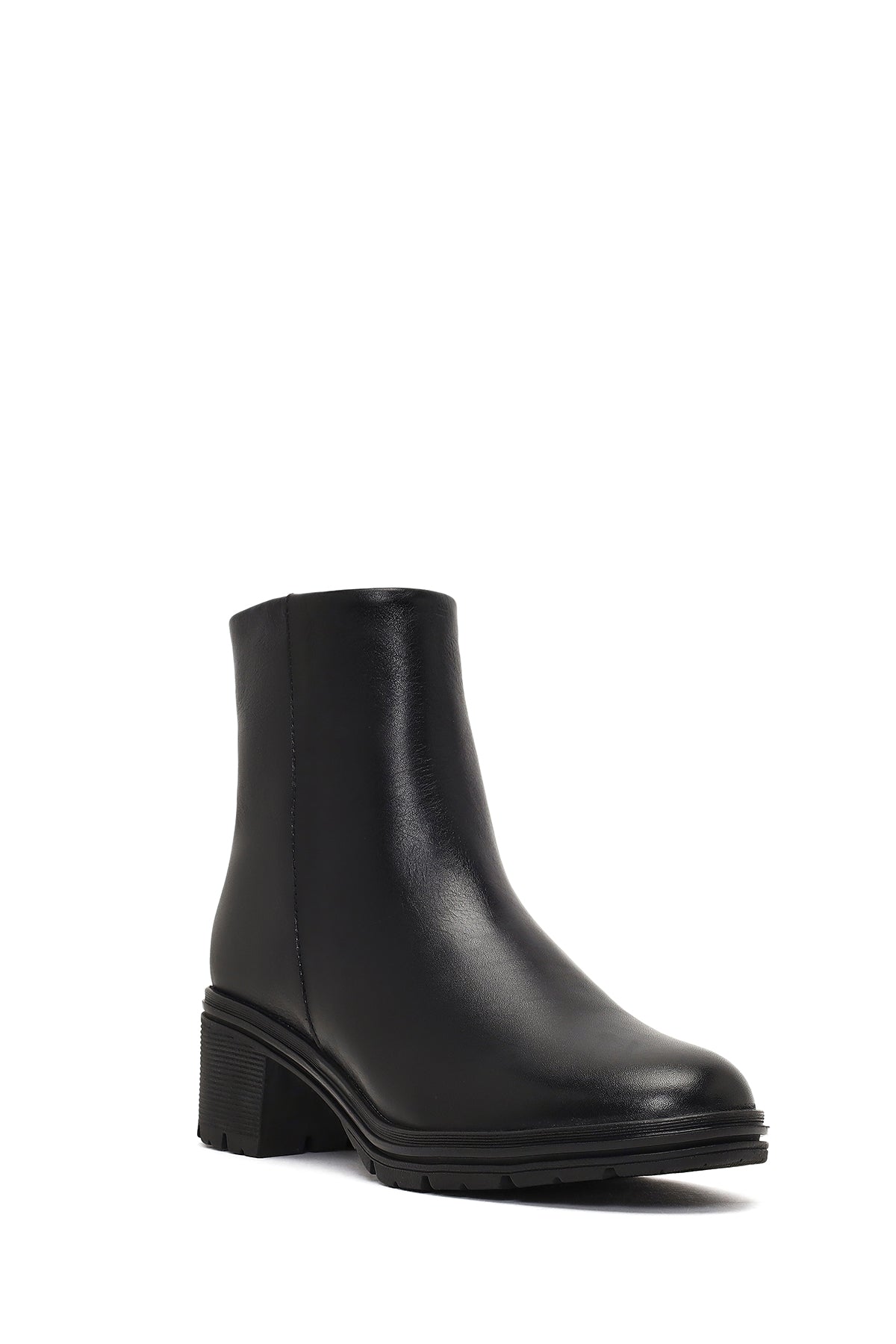 Kadın Siyah Fermuarlı Kısa Kalın Topuklu Deri Bot