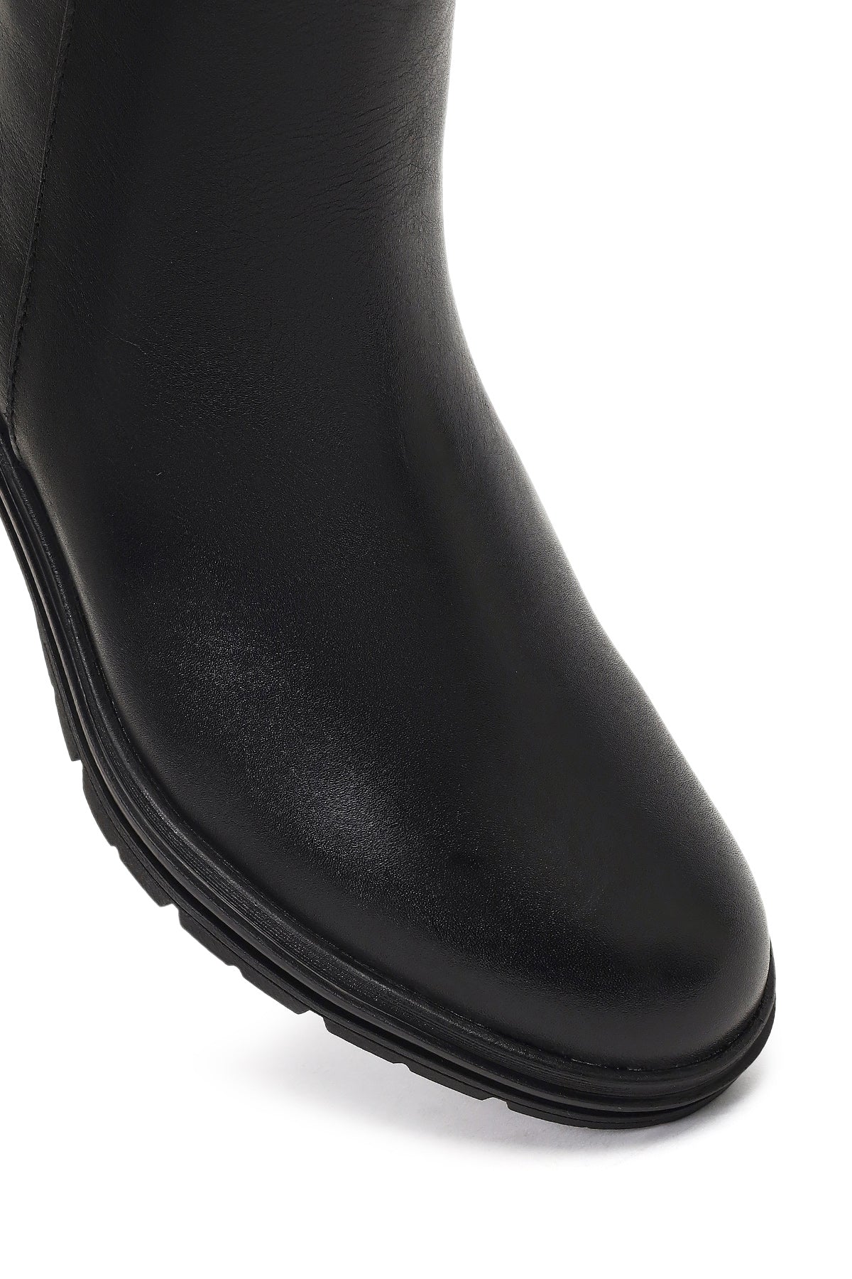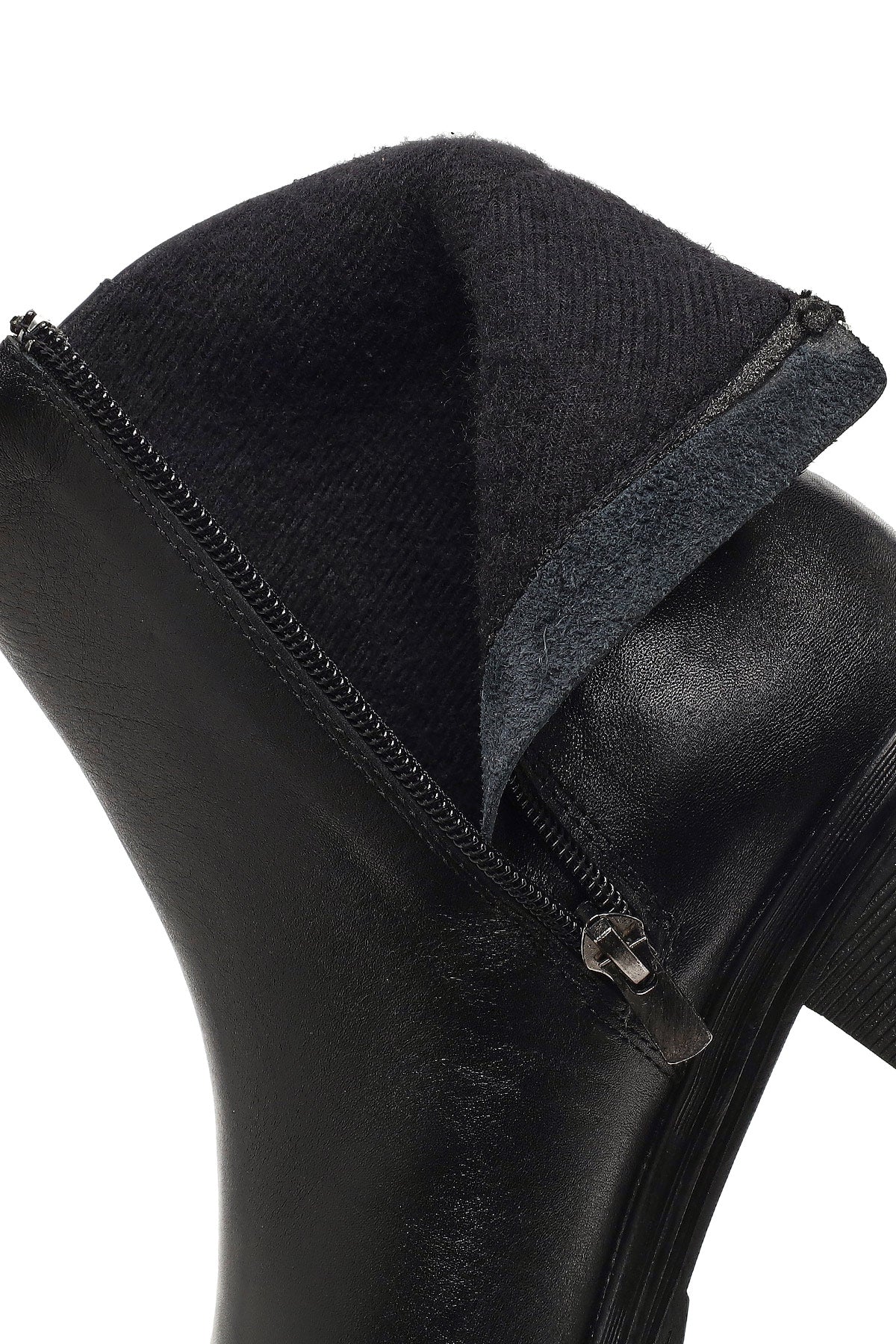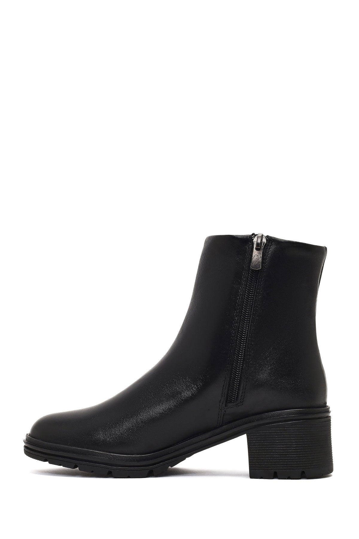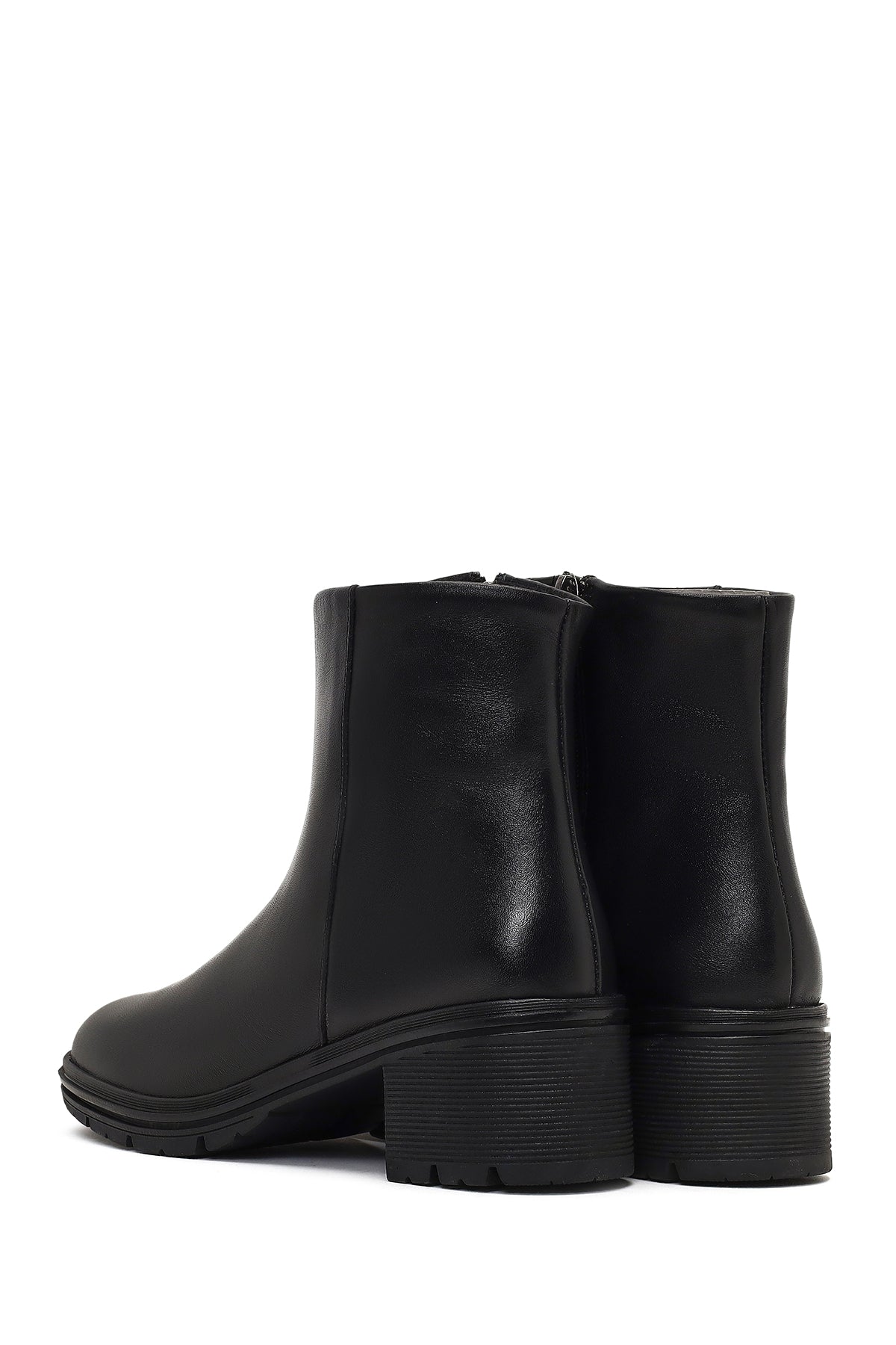 Kadın Siyah Fermuarlı Kısa Kalın Topuklu Deri Bot