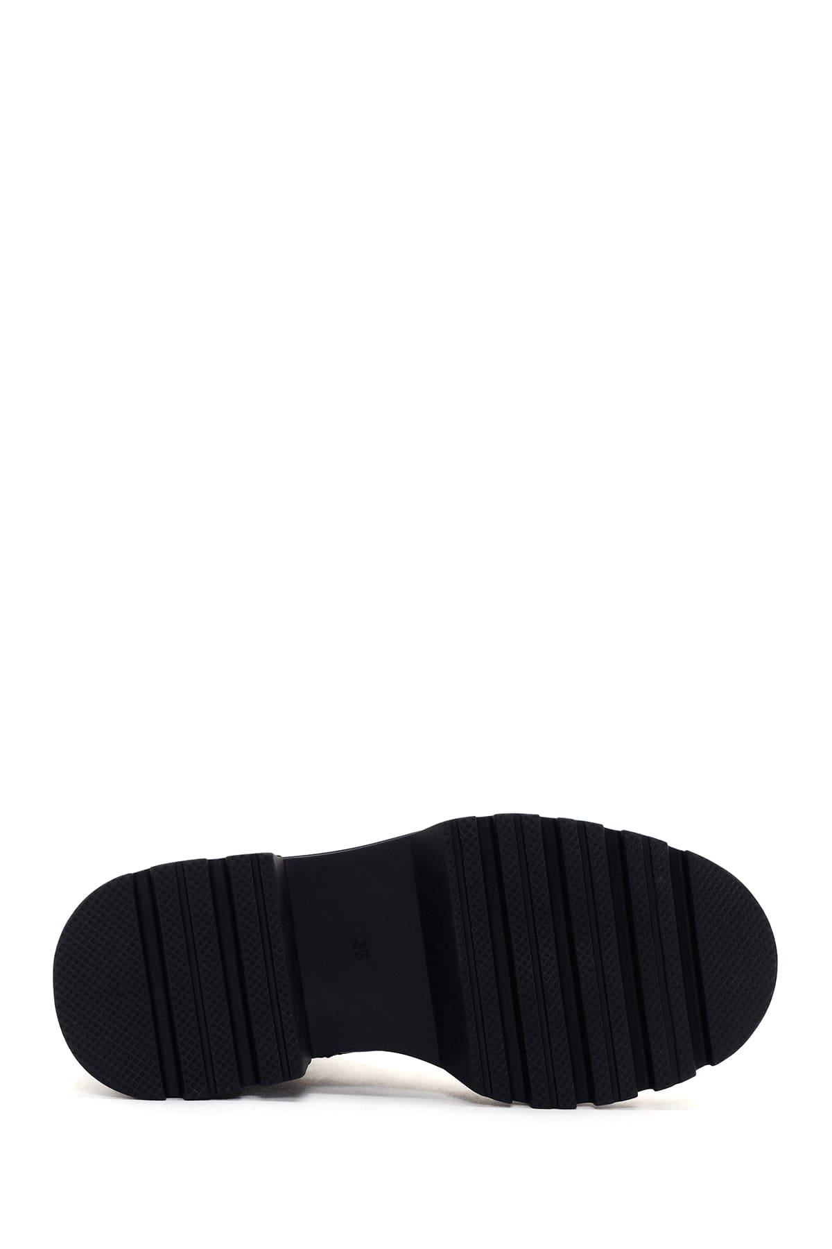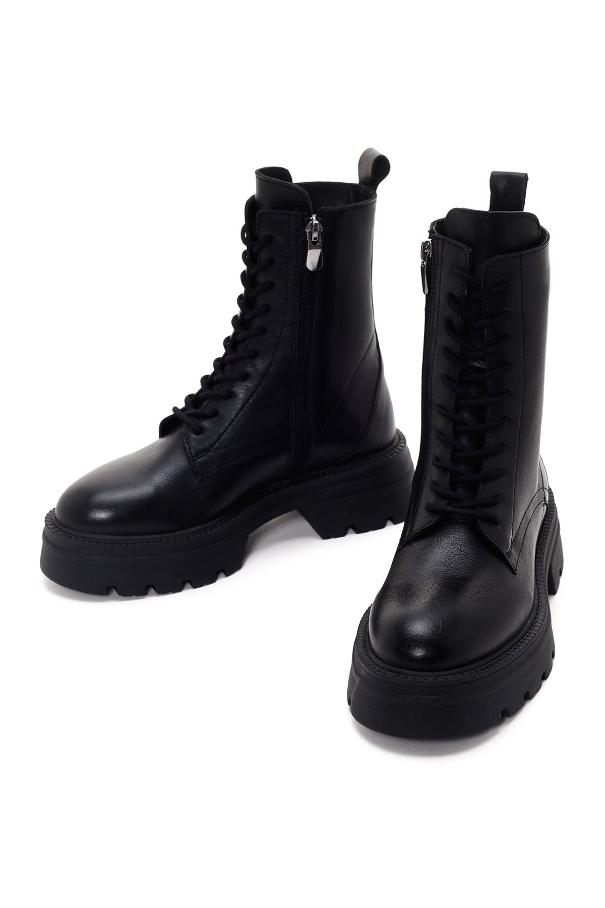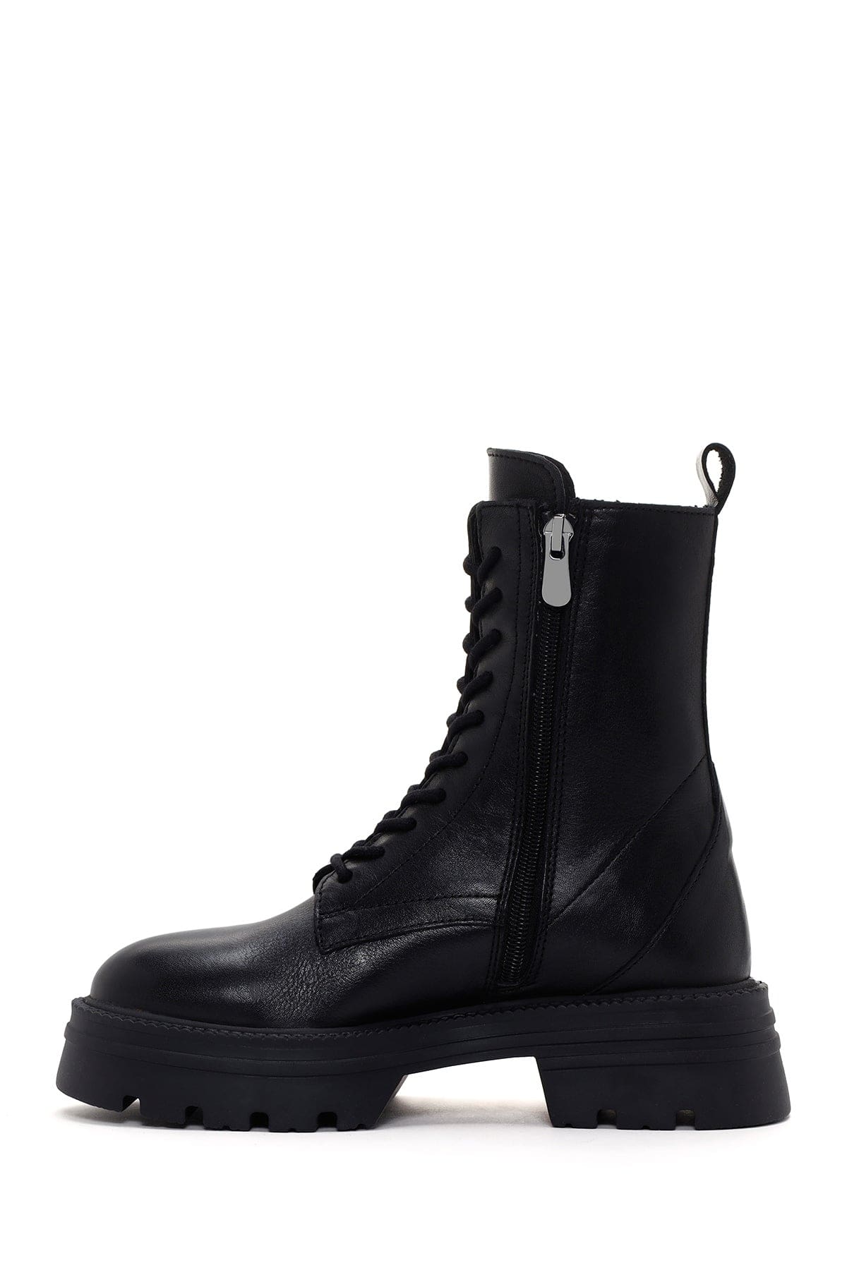 Kadın Siyah Fermuarlı Kalın Tabanlı Deri Postal Bot