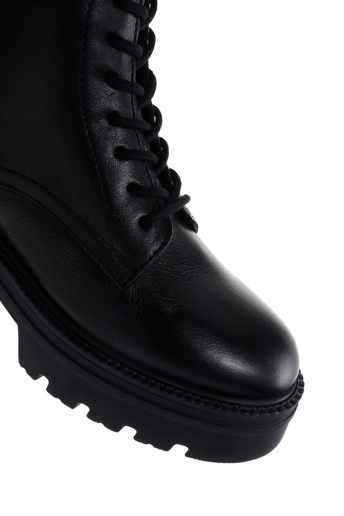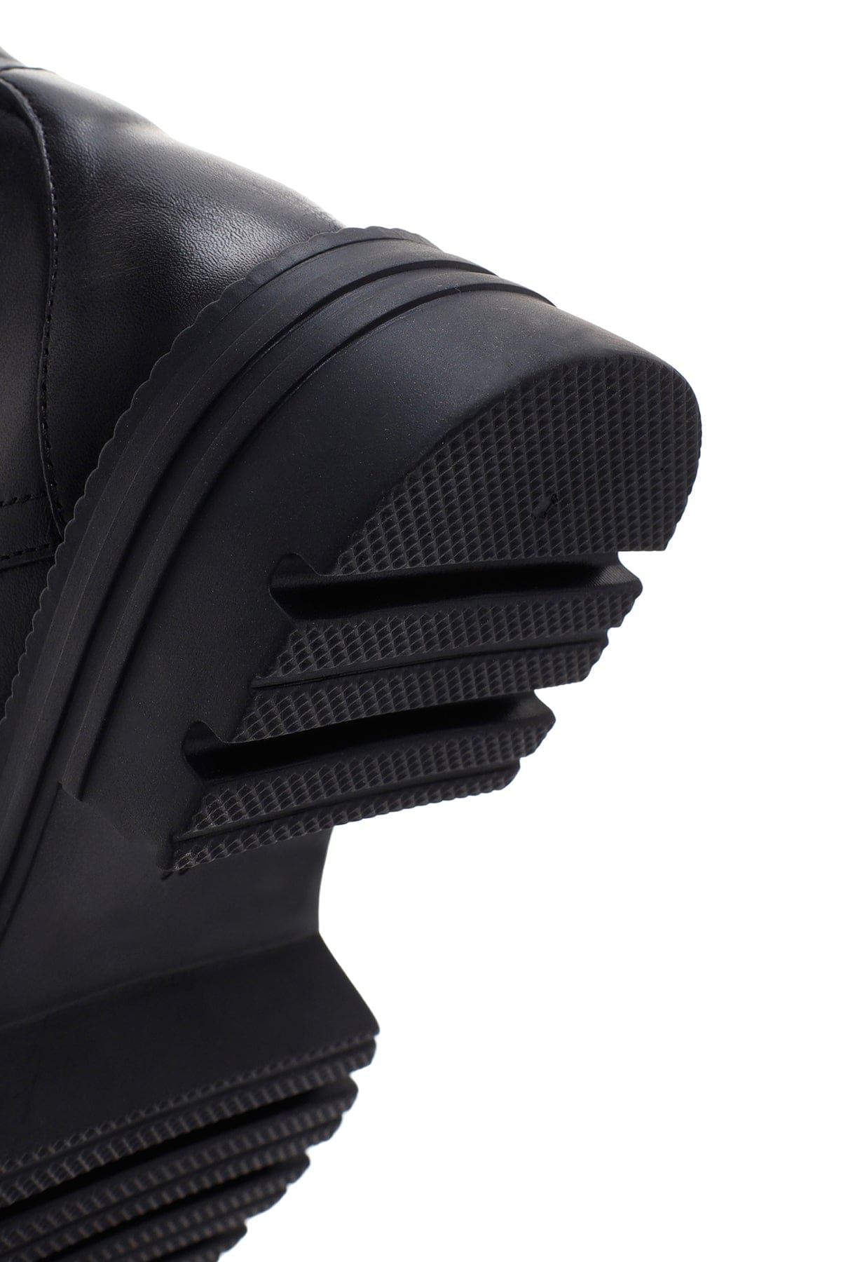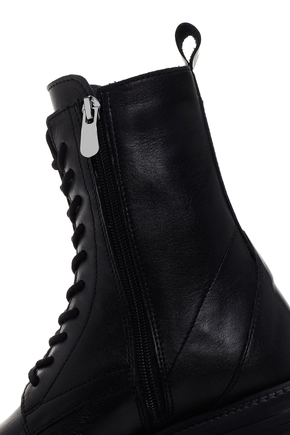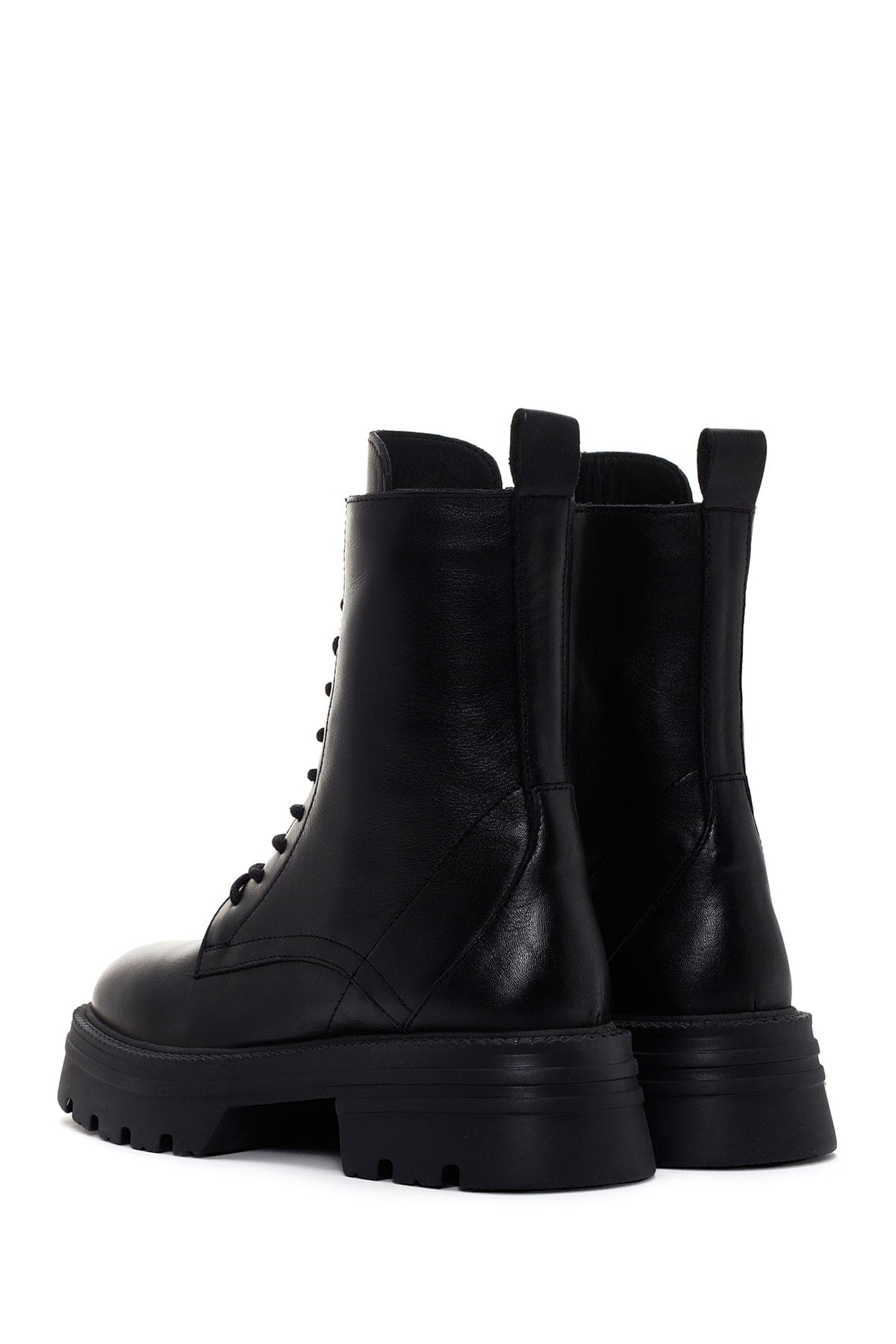 Kadın Siyah Fermuarlı Kalın Tabanlı Deri Postal Bot