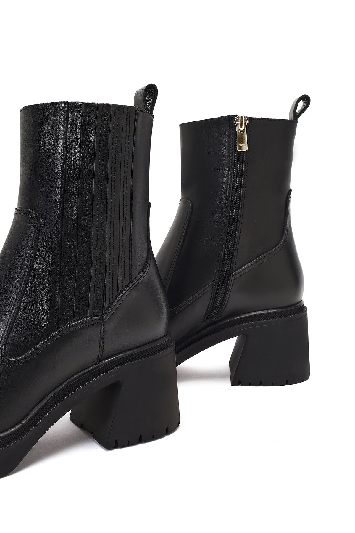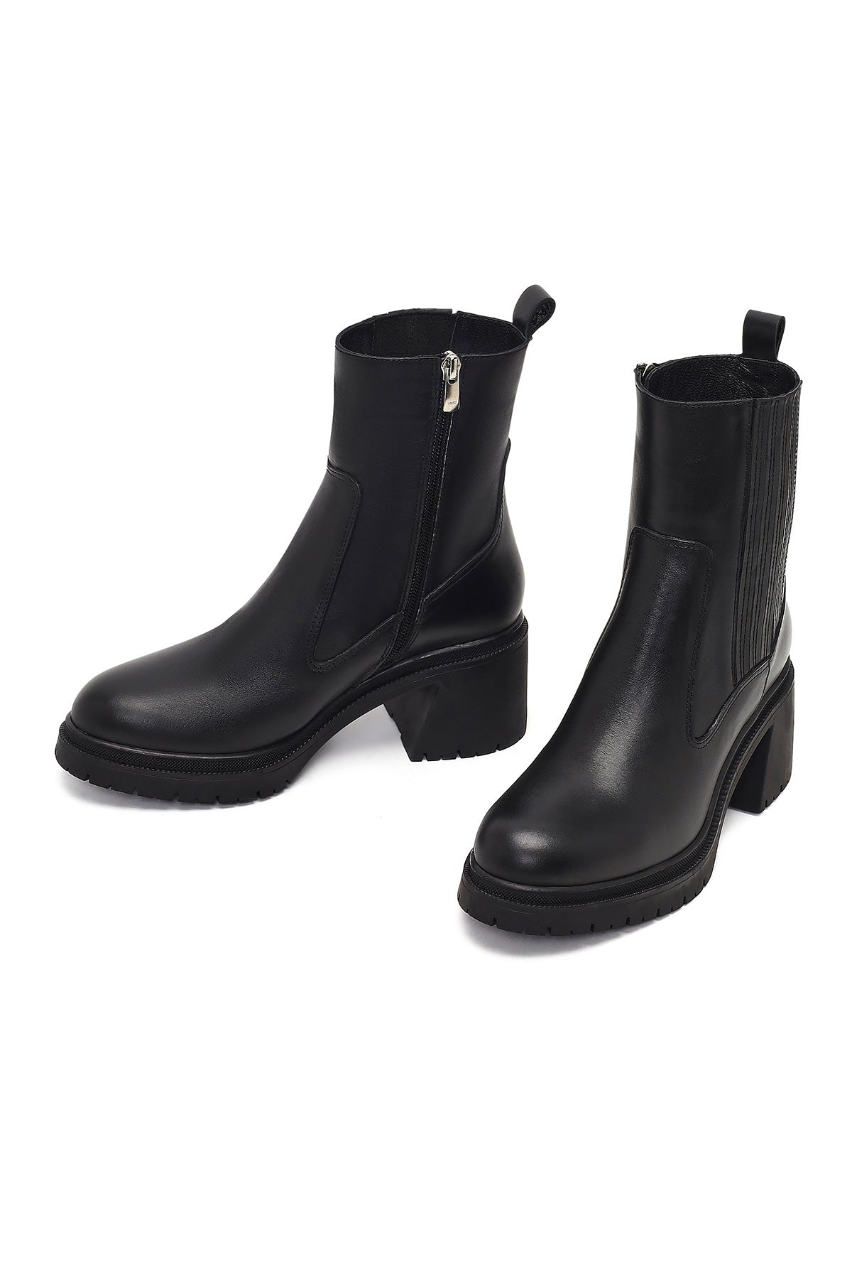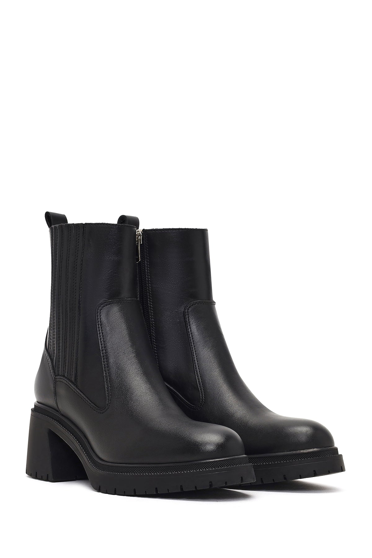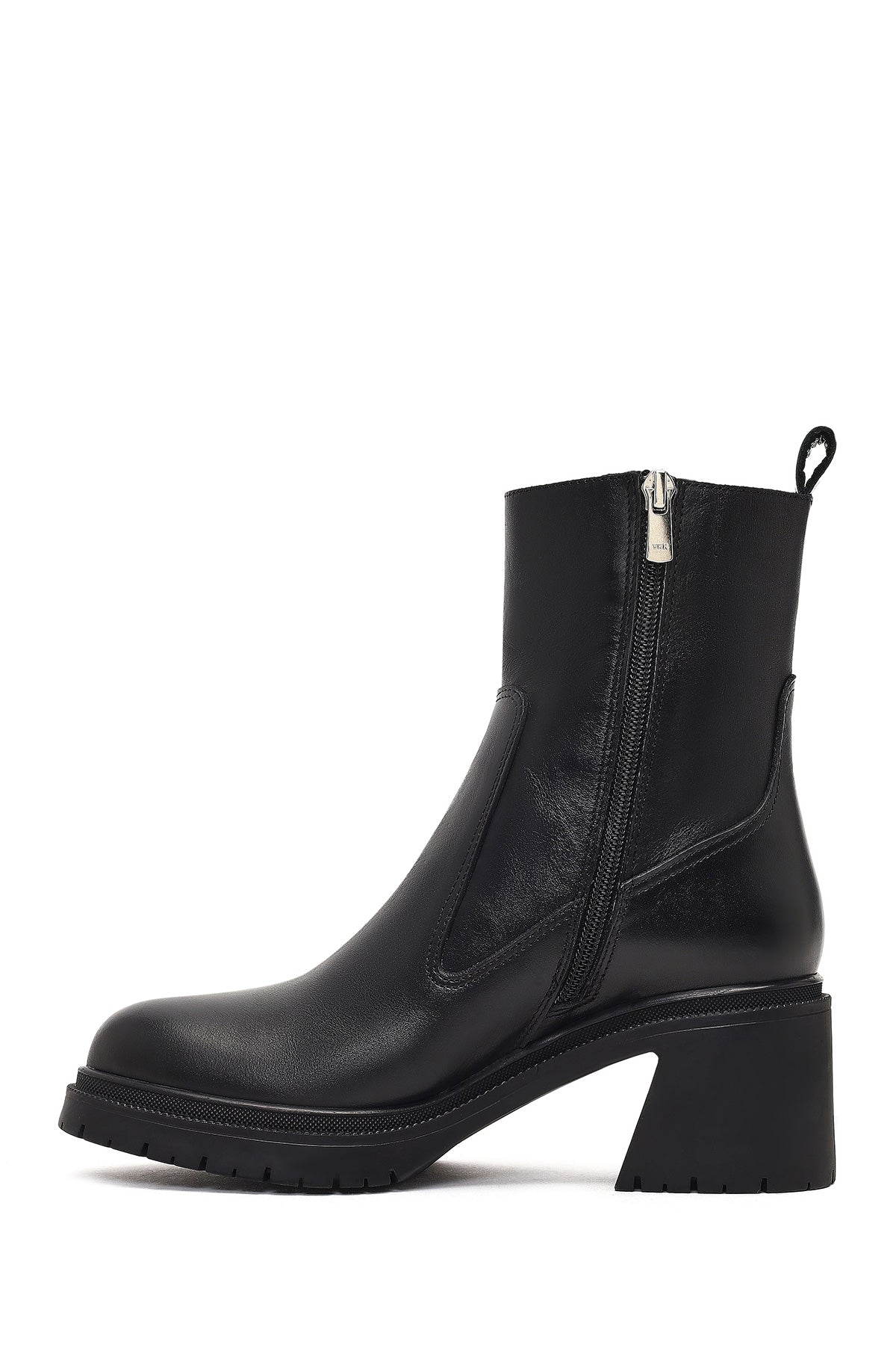 Kadın Siyah Fermuarlı Kalın Topuklu Deri Bot