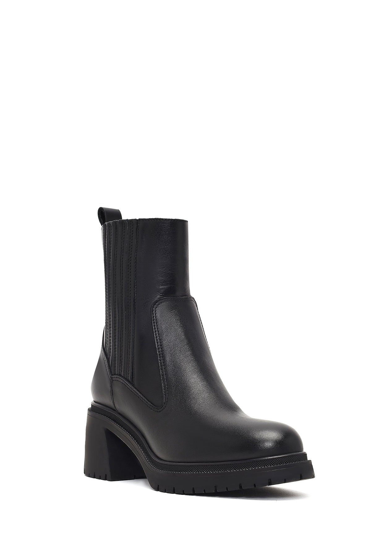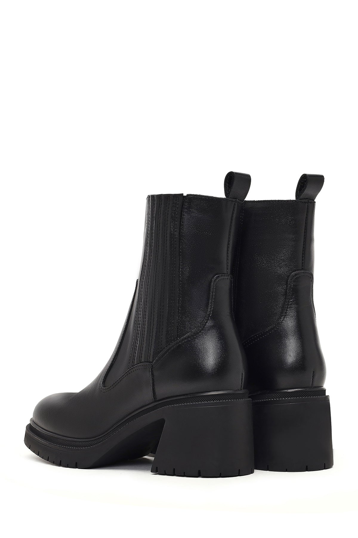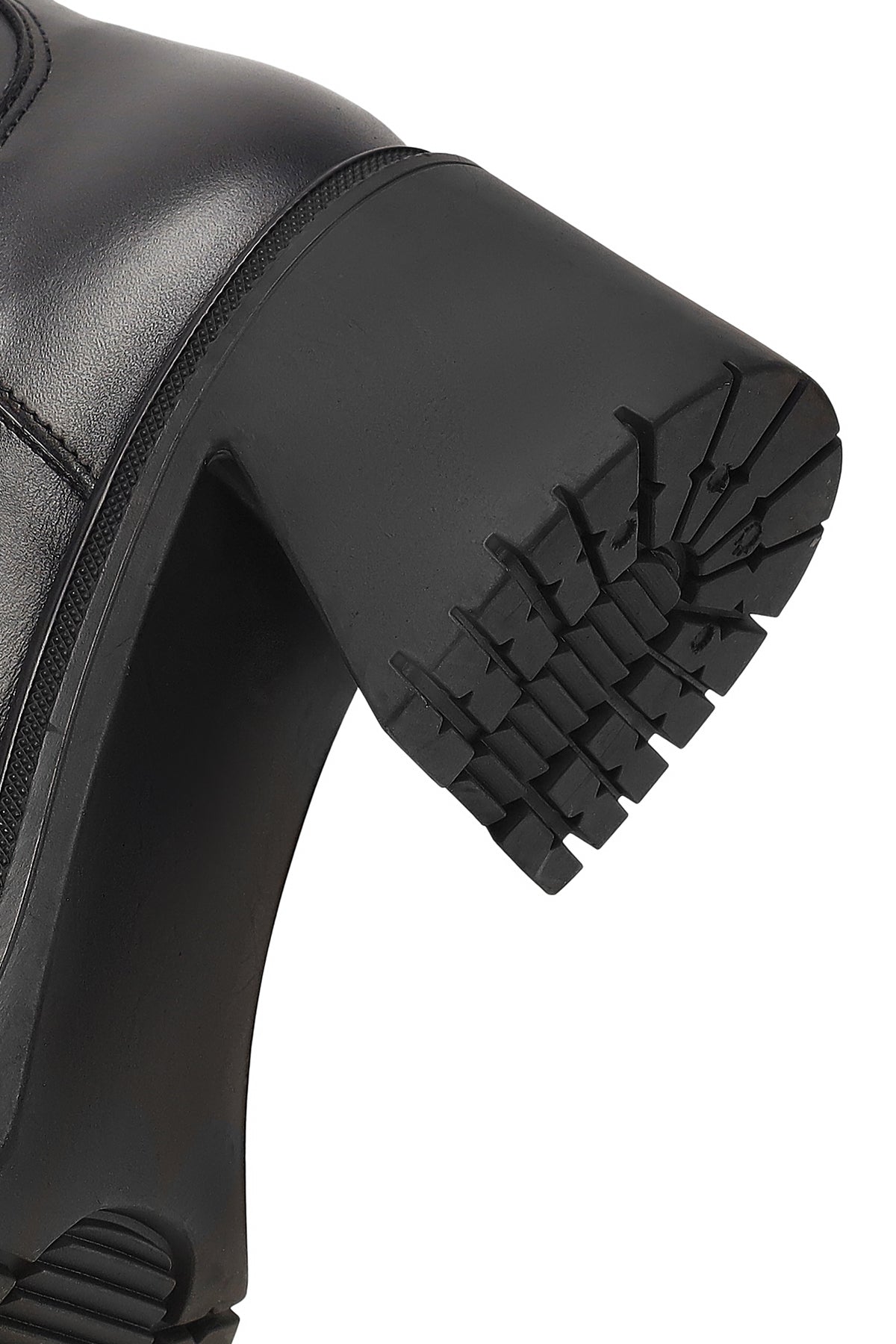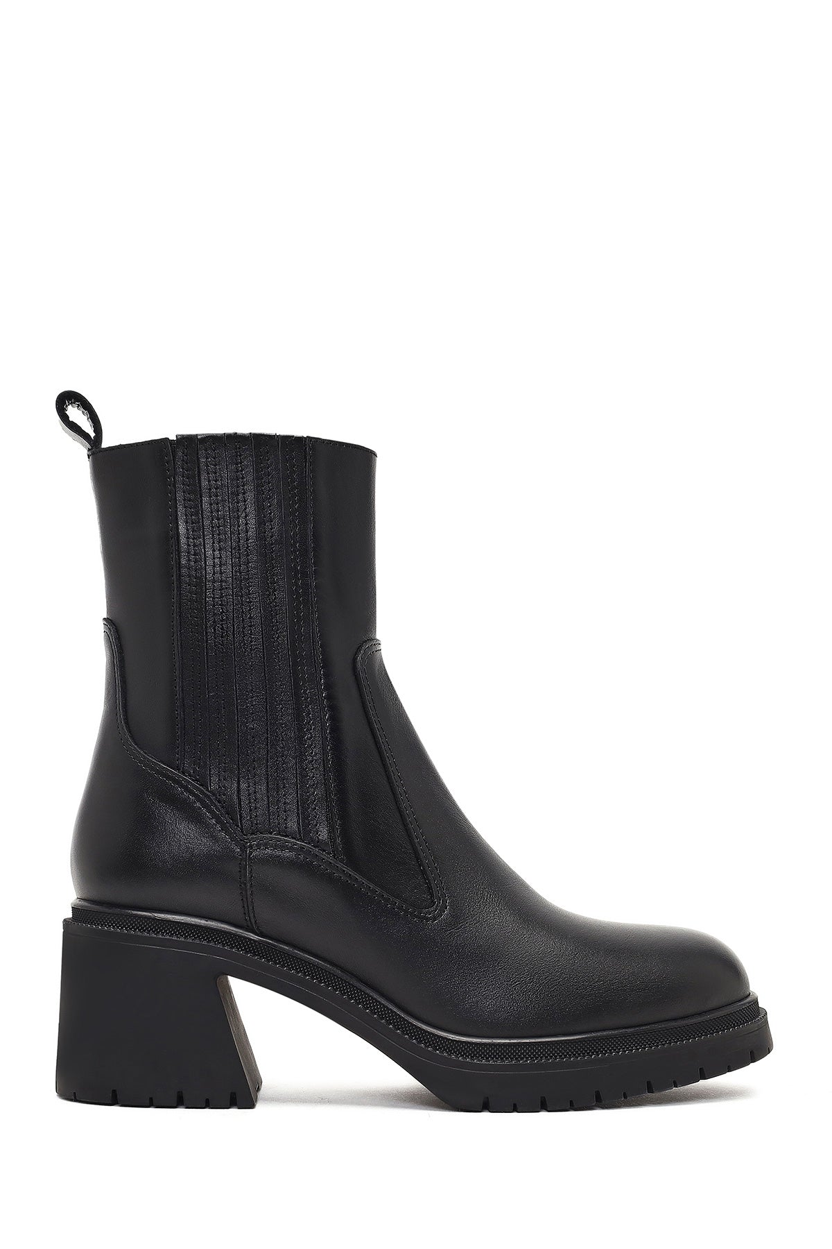 Kadın Siyah Fermuarlı Kalın Topuklu Deri Bot