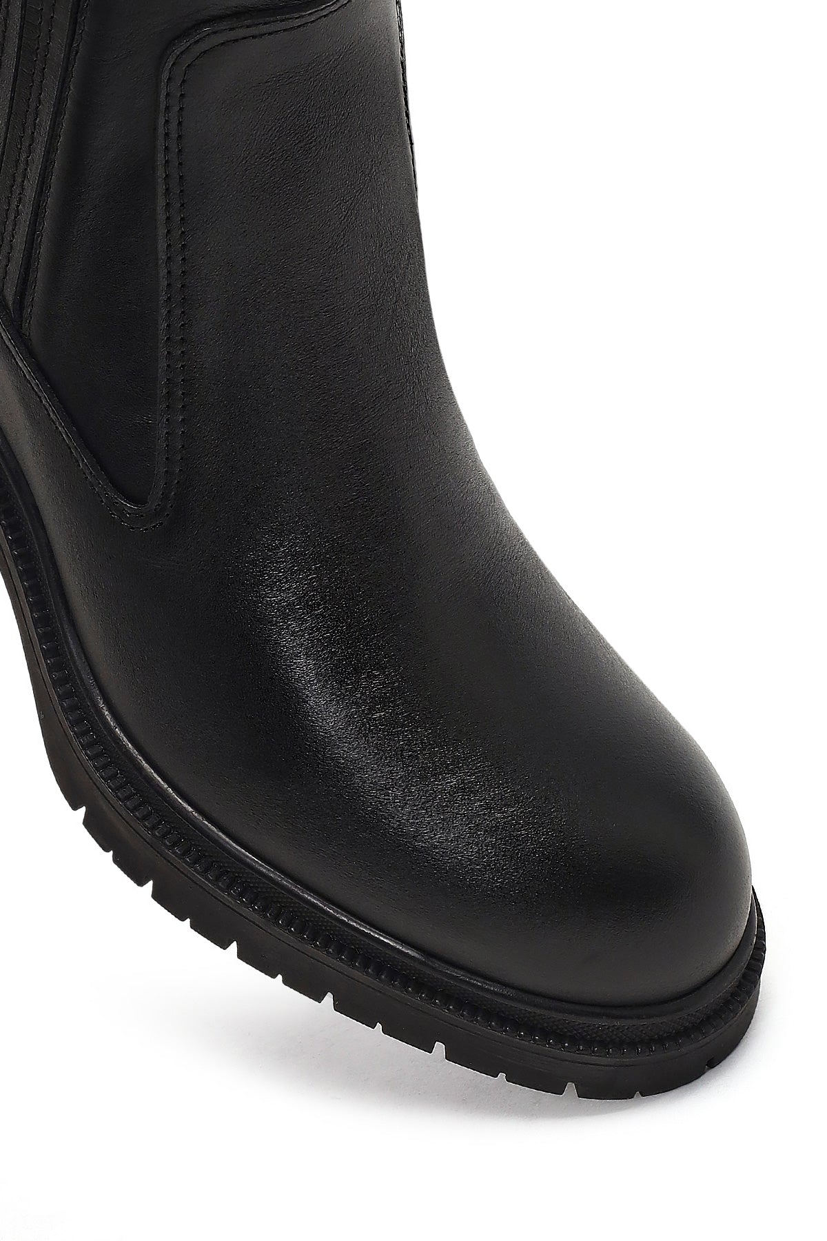بوت چرمی زنانه مشکی زیپدار پاشنه ضخیم دریمد