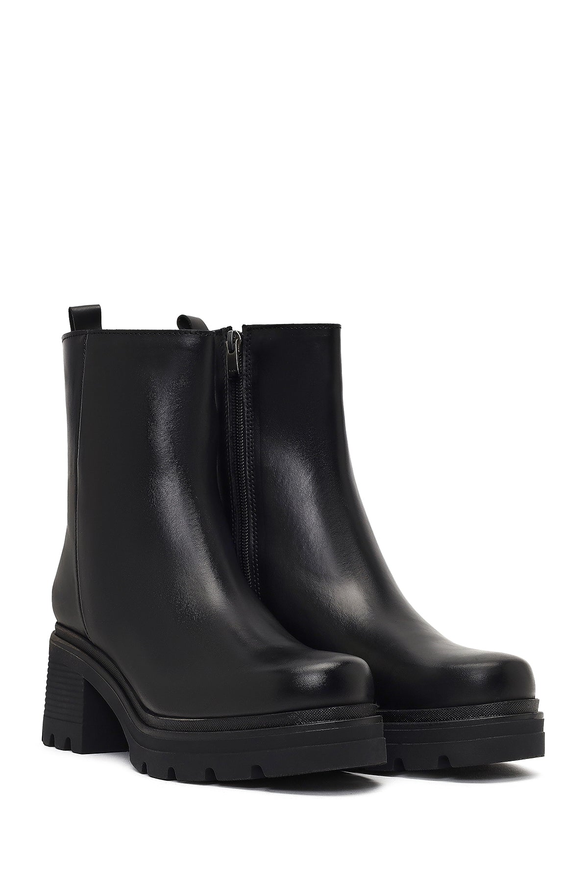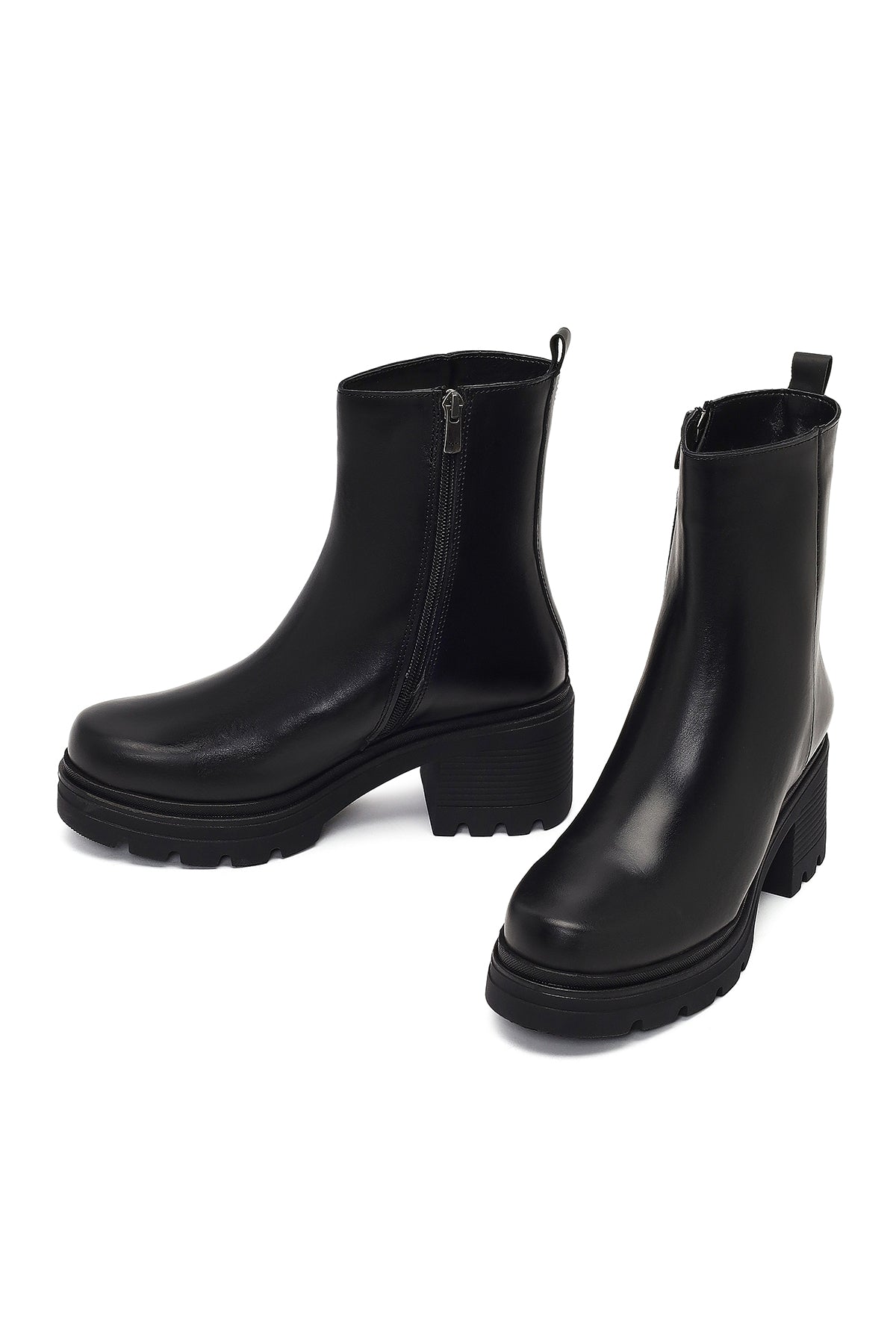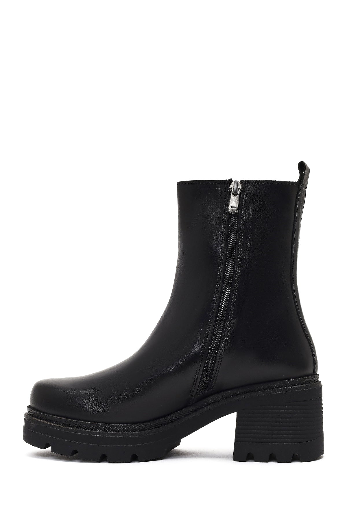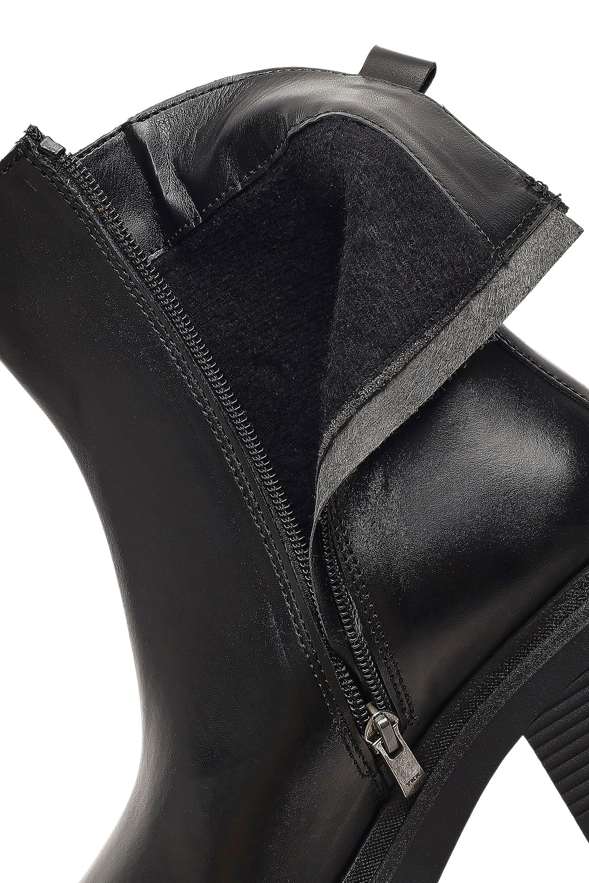 Kadın Siyah Fermuarlı Kalın Topuklu Deri Bot