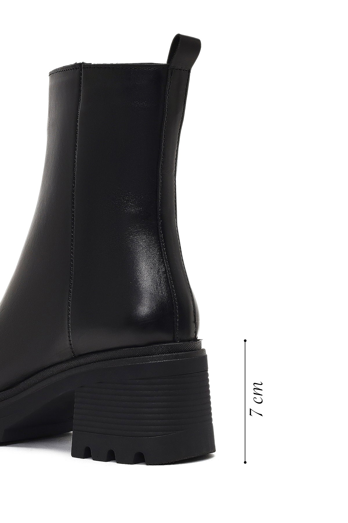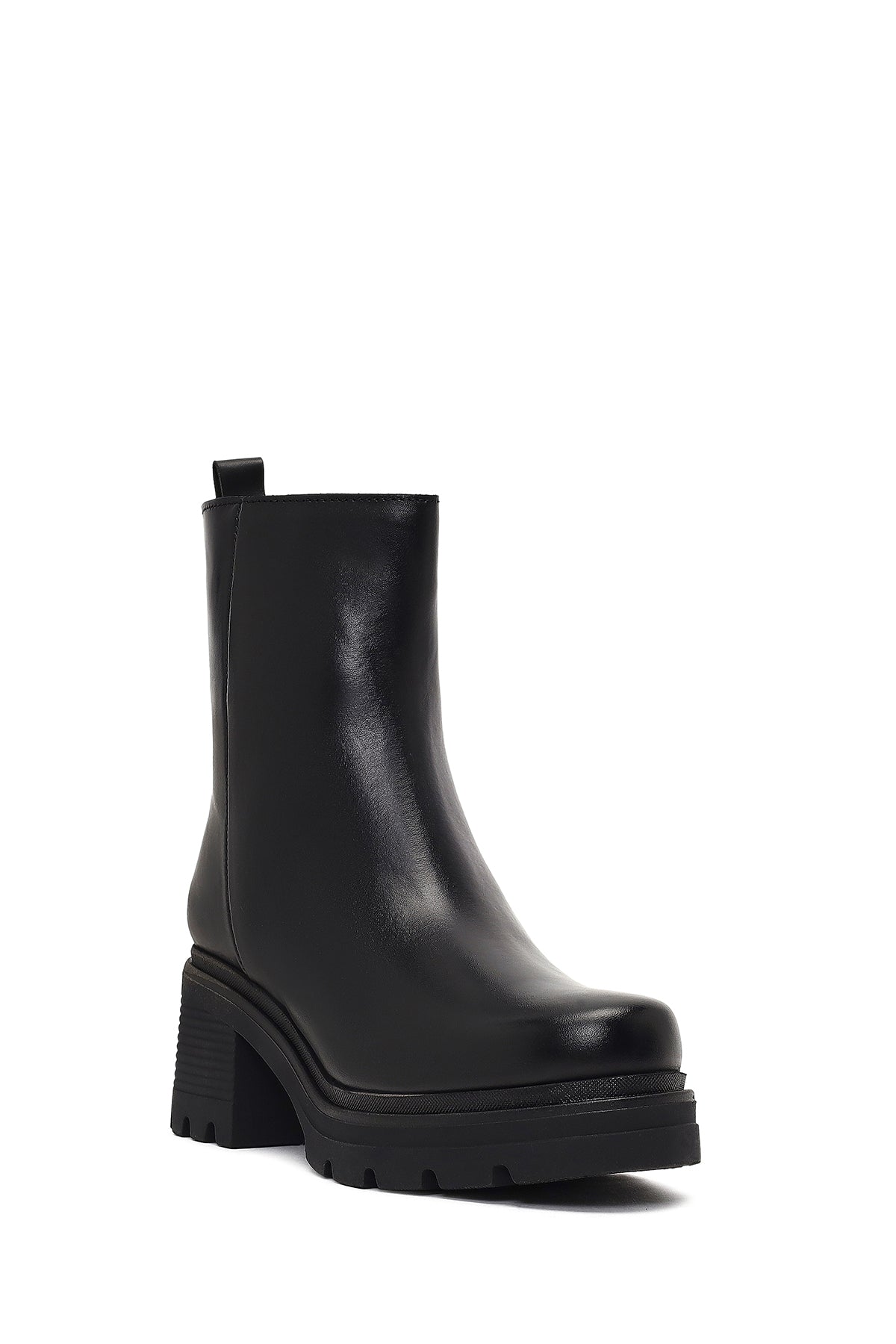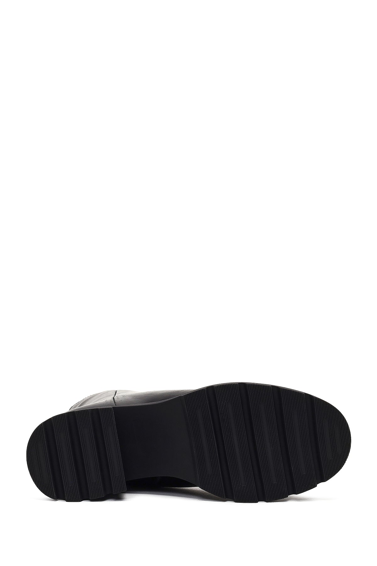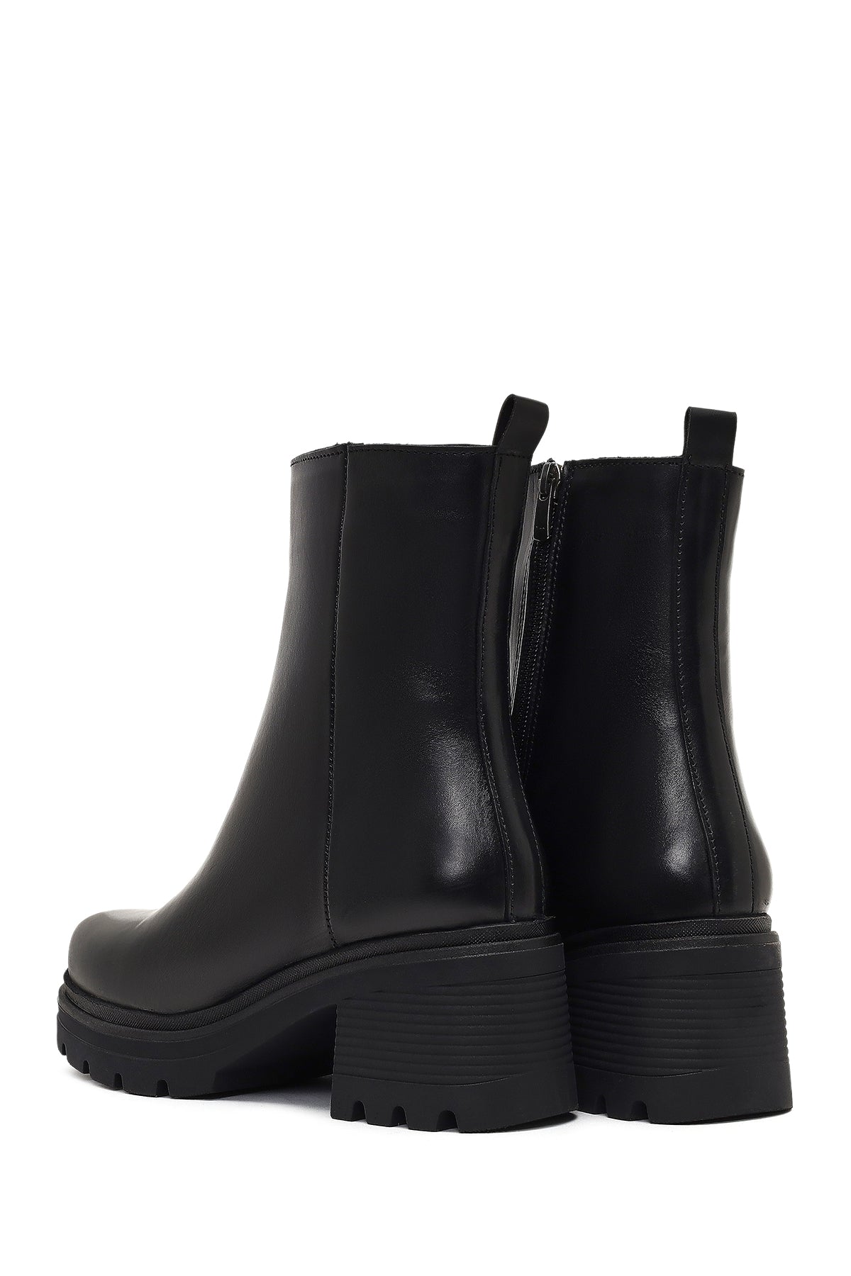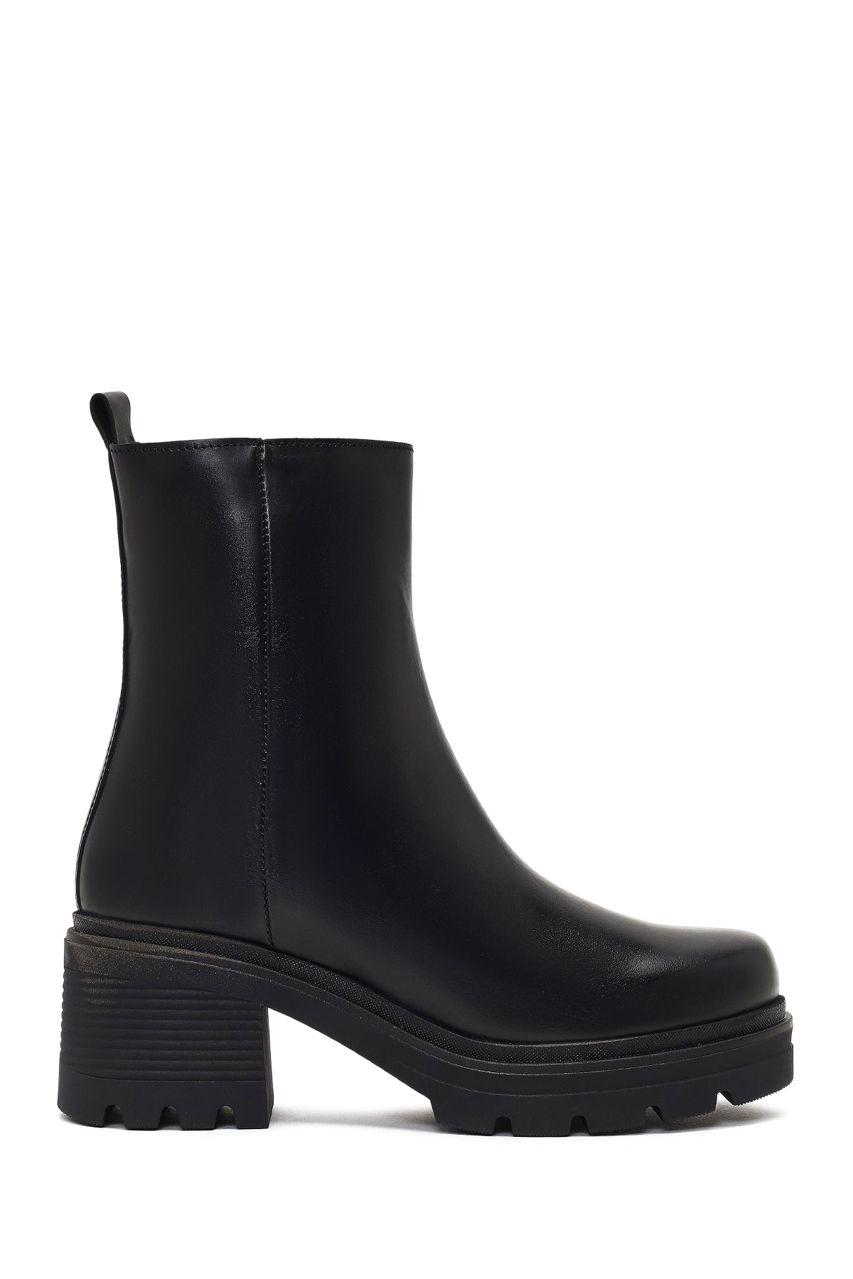 Kadın Siyah Fermuarlı Kalın Topuklu Deri Bot