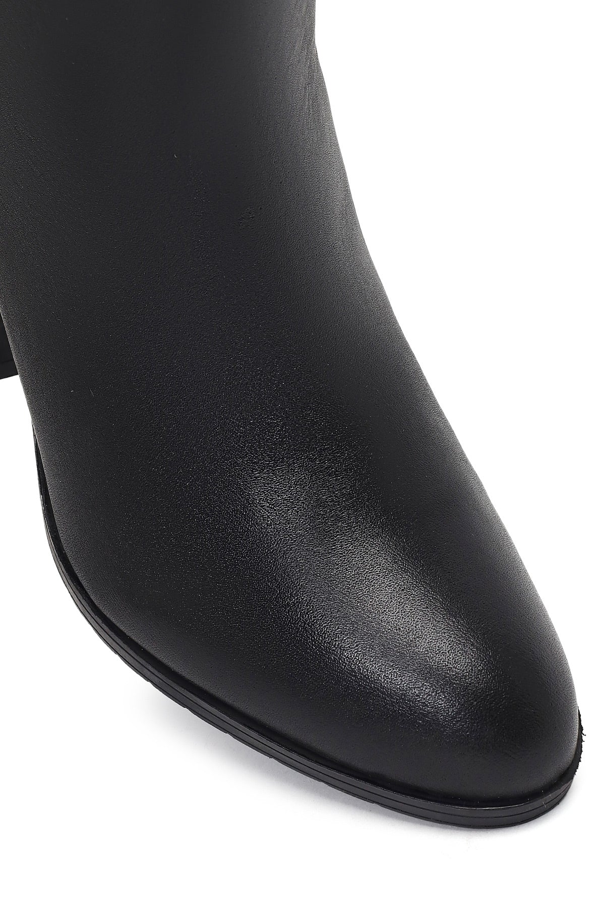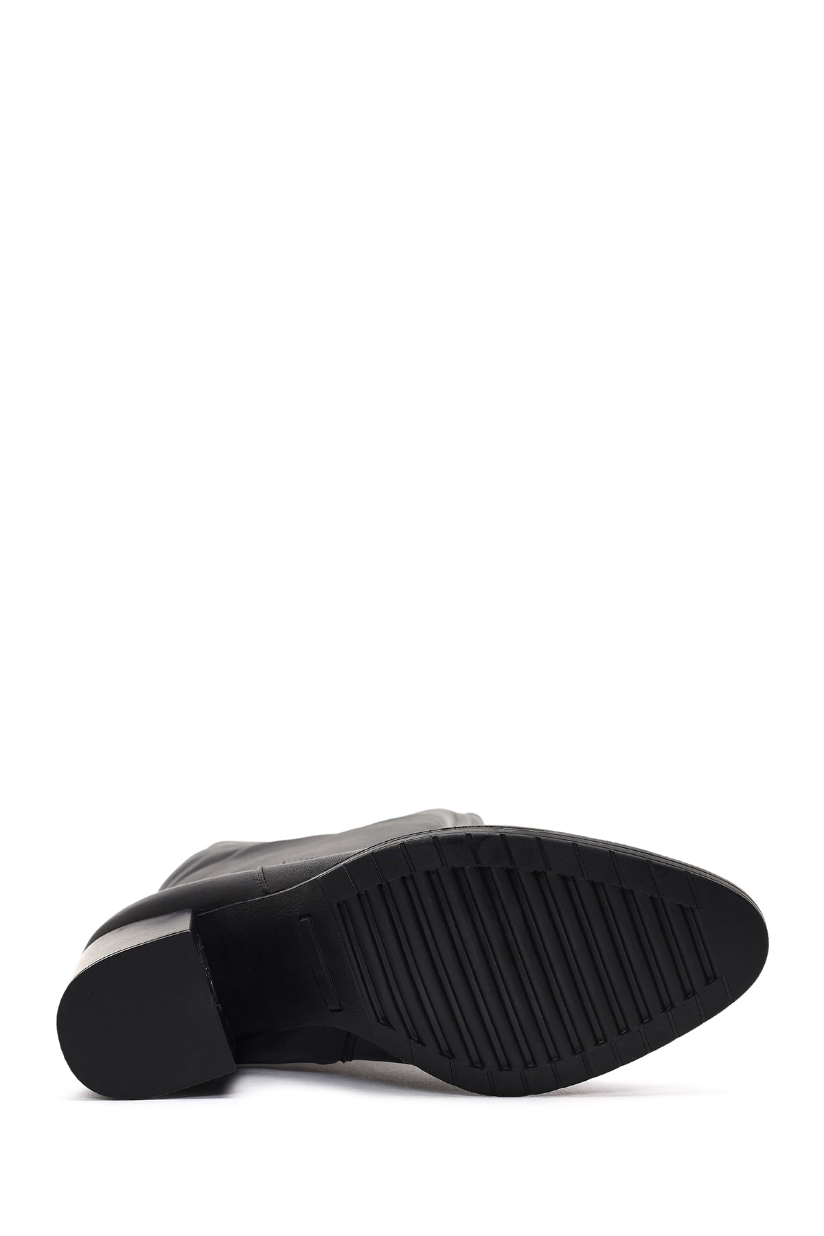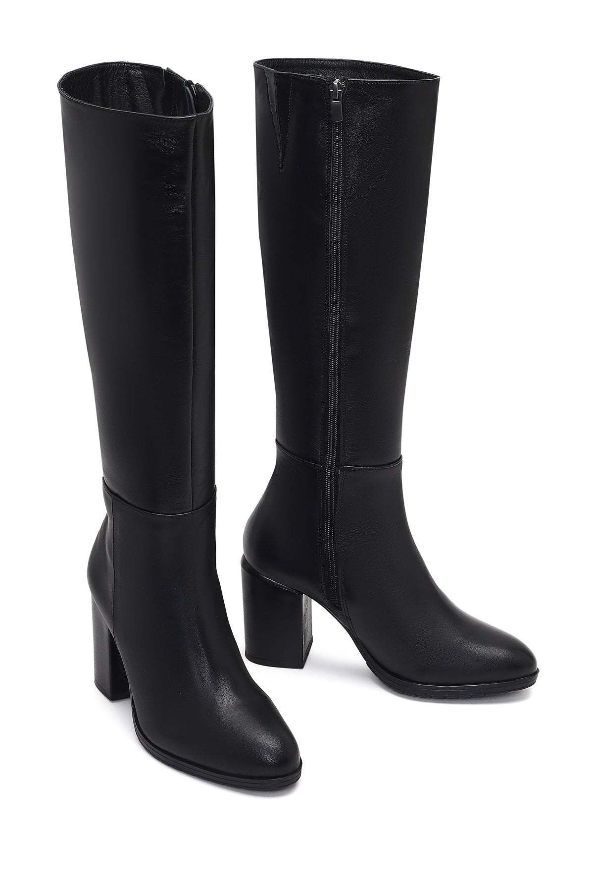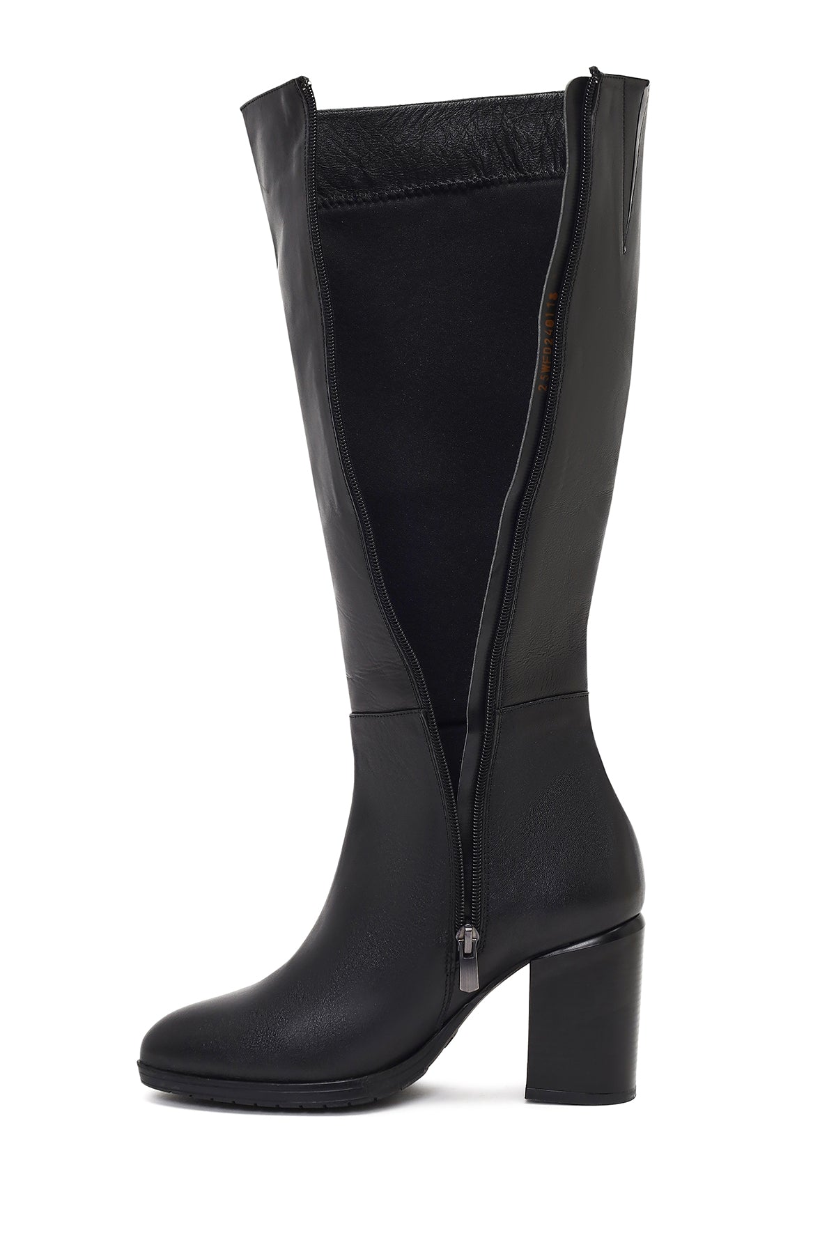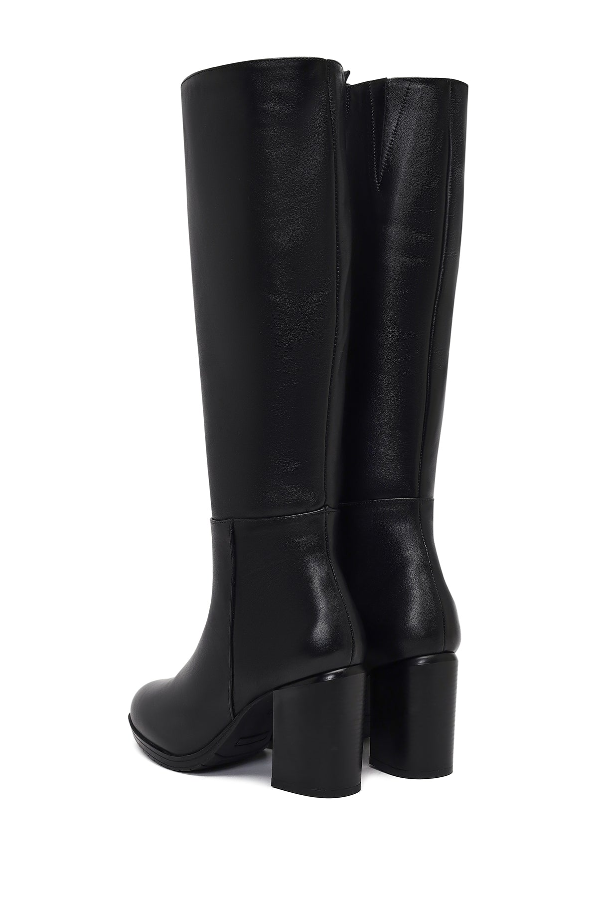 Kadın Siyah Fermuarlı Kalın Topuklu Deri Çizme