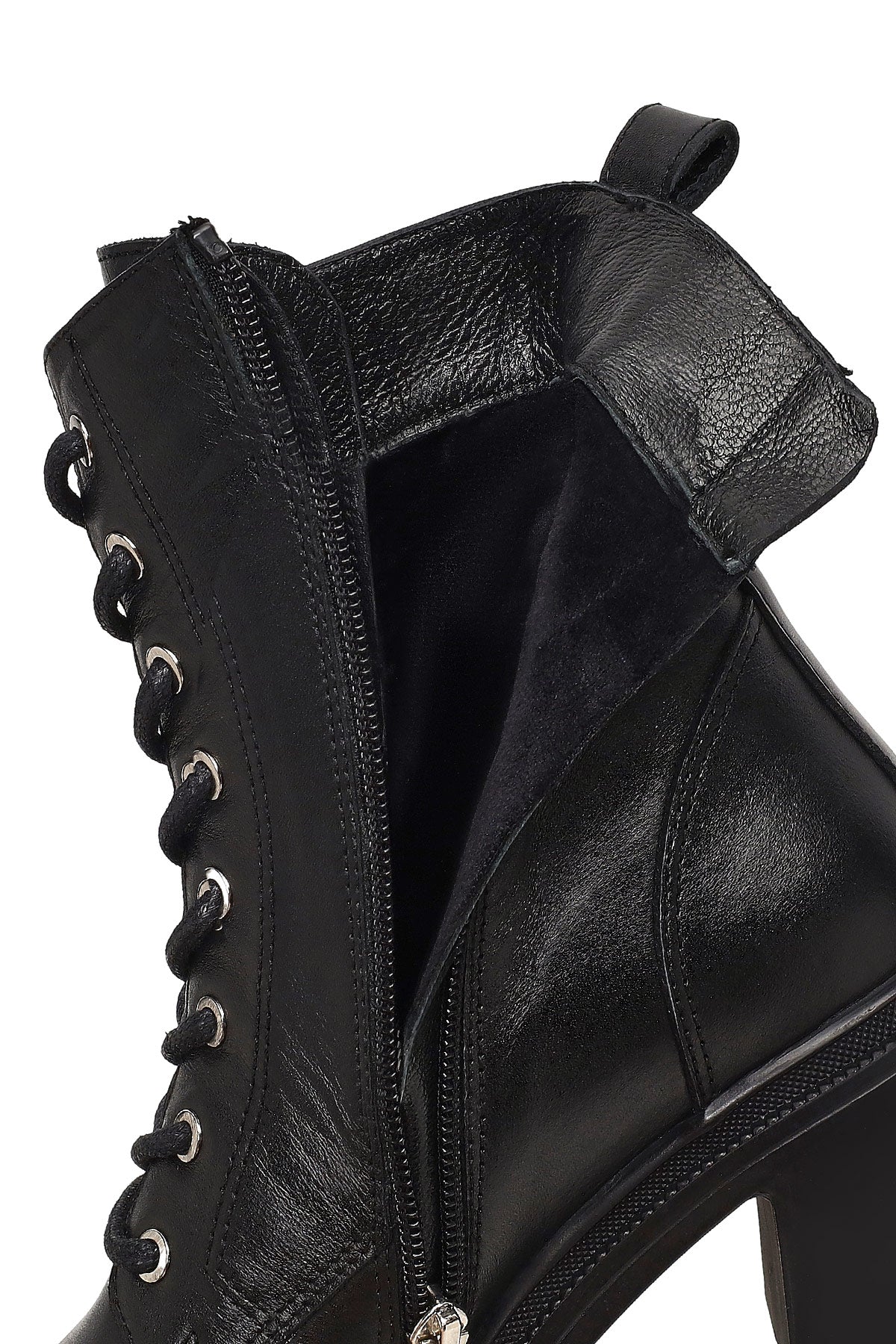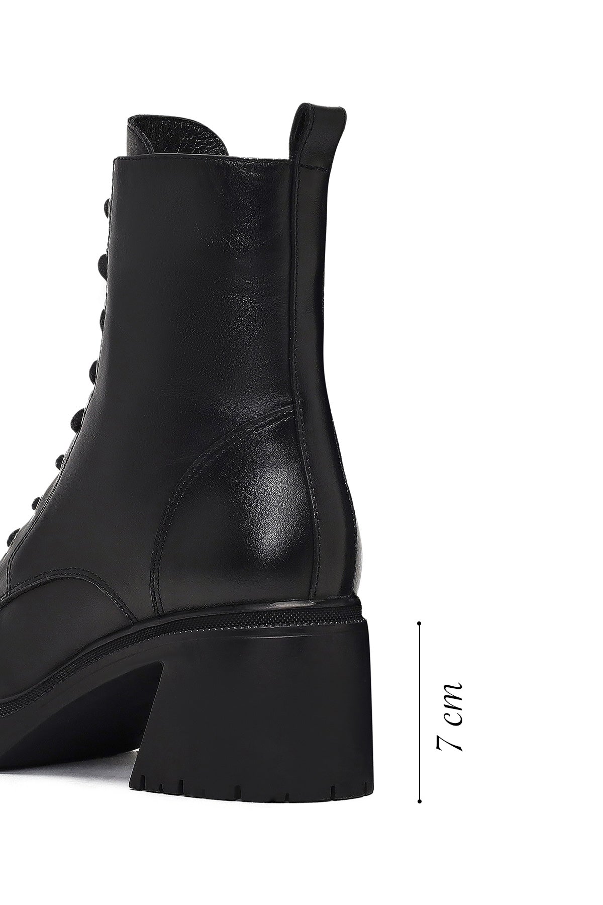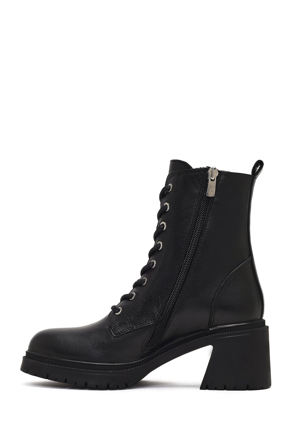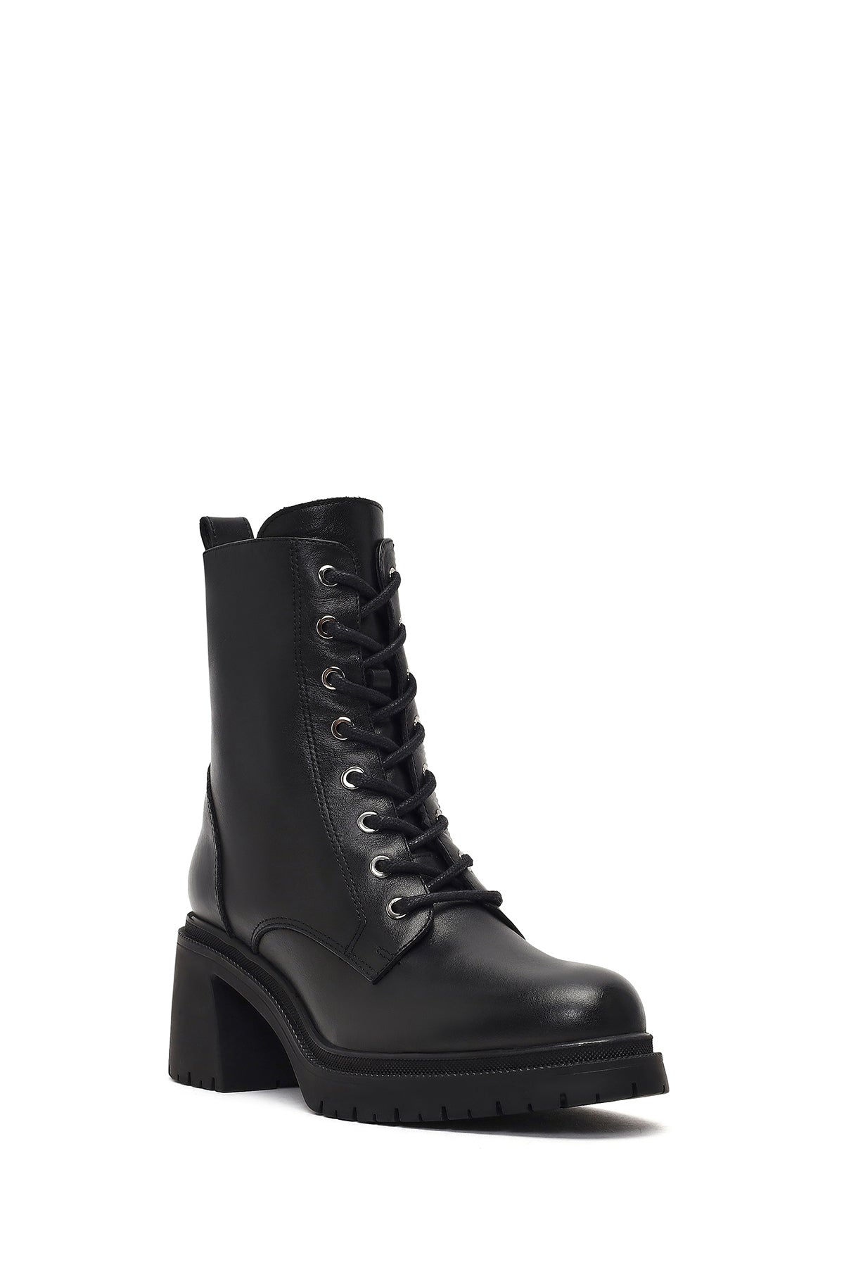 Kadın Siyah Fermuarlı Kalın Topuklu Deri Postal Bot