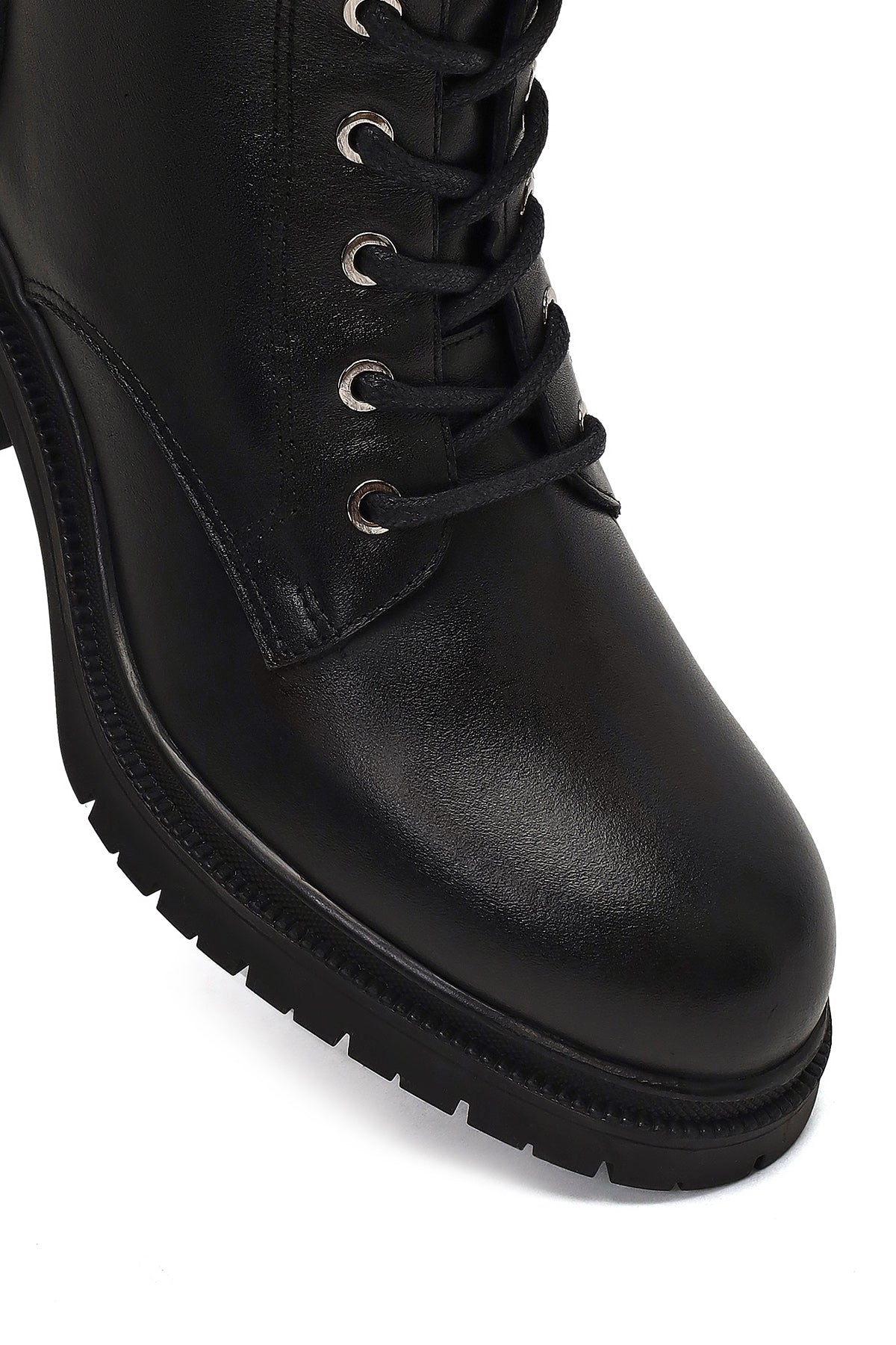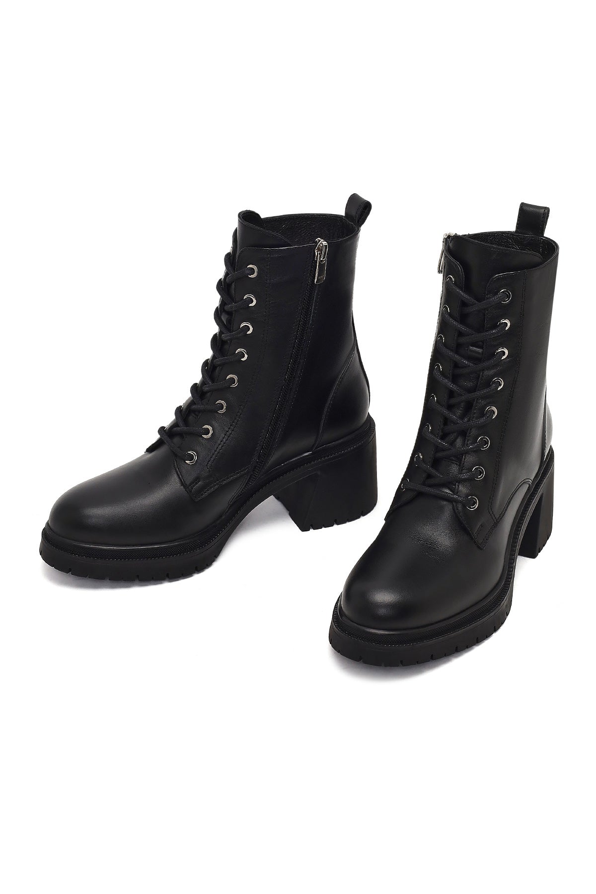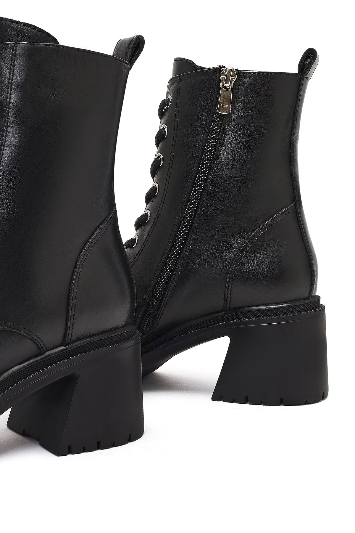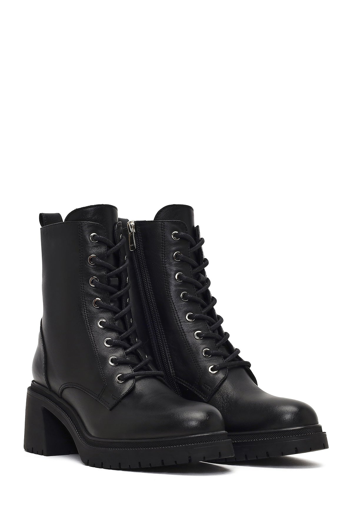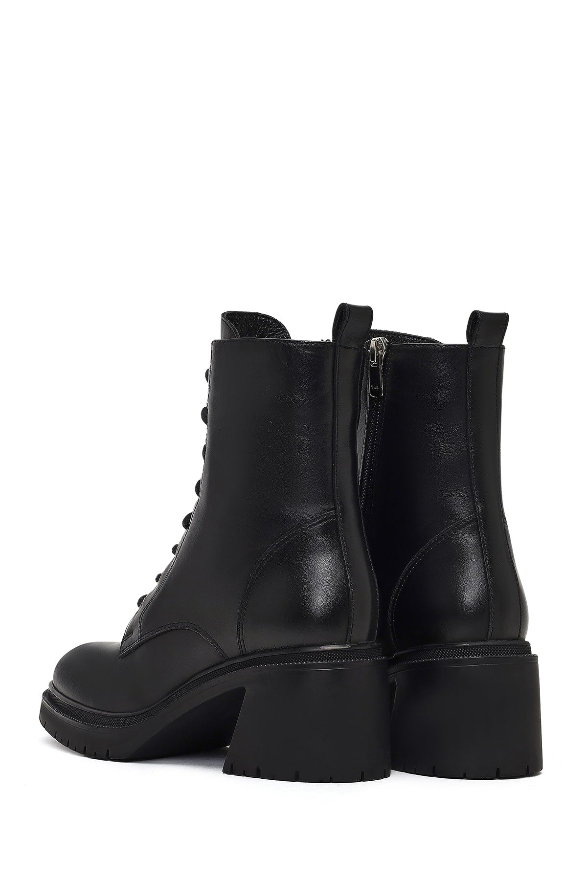 Kadın Siyah Fermuarlı Kalın Topuklu Deri Postal Bot