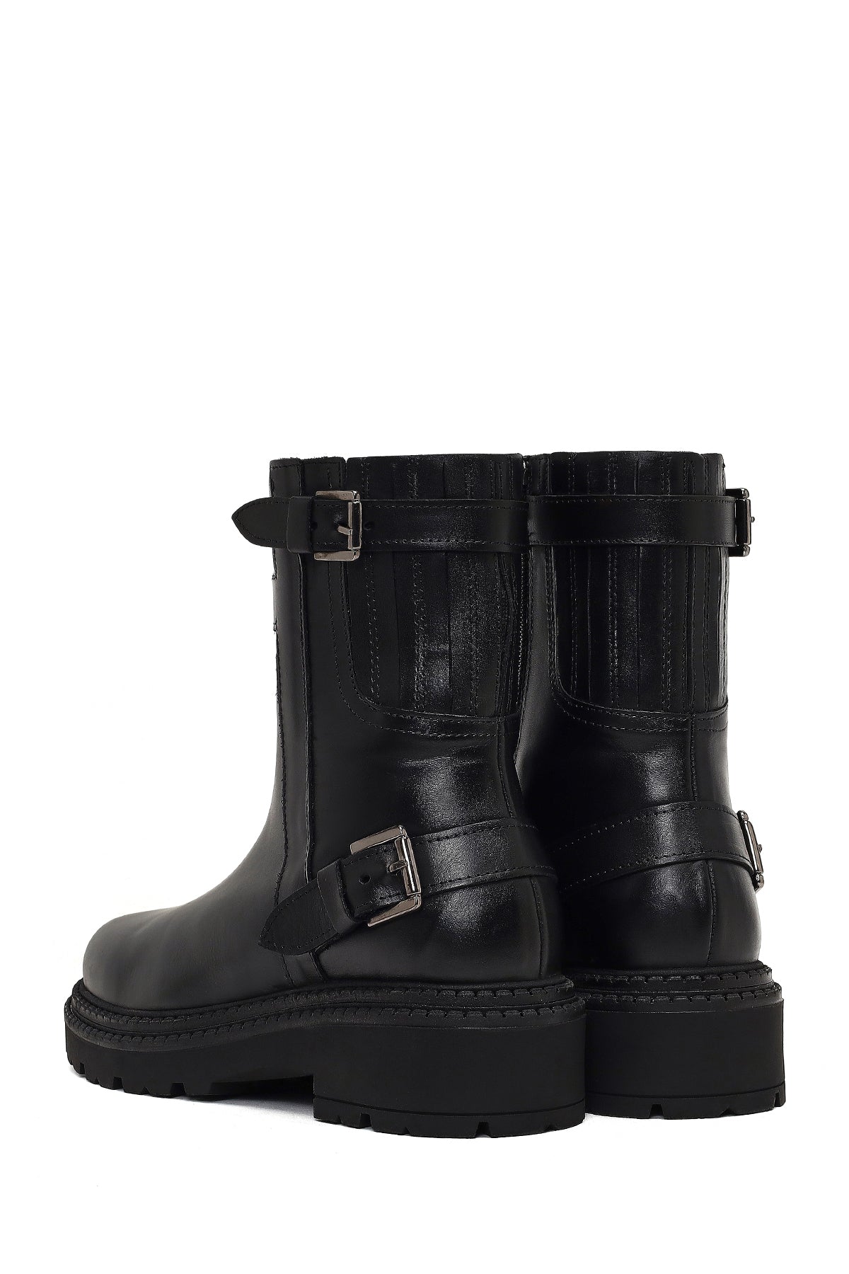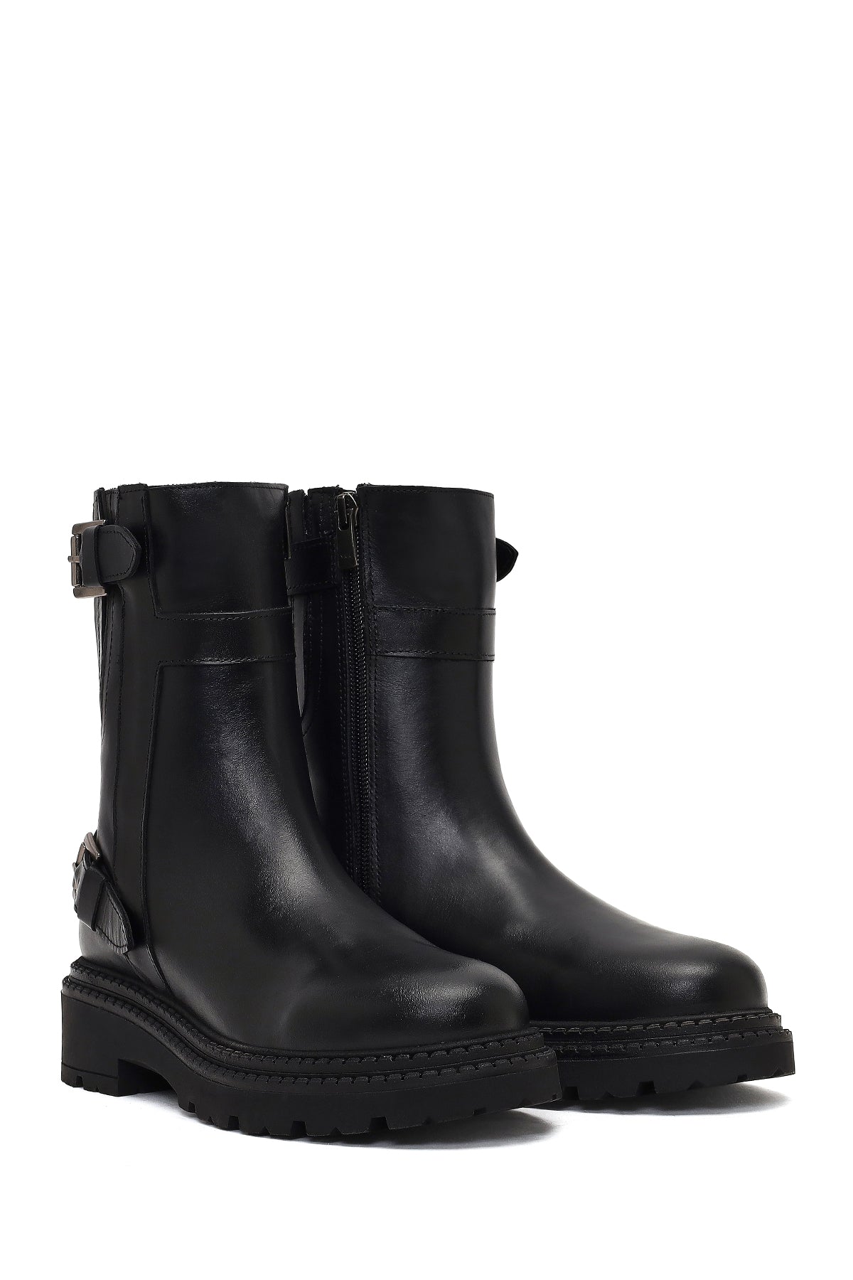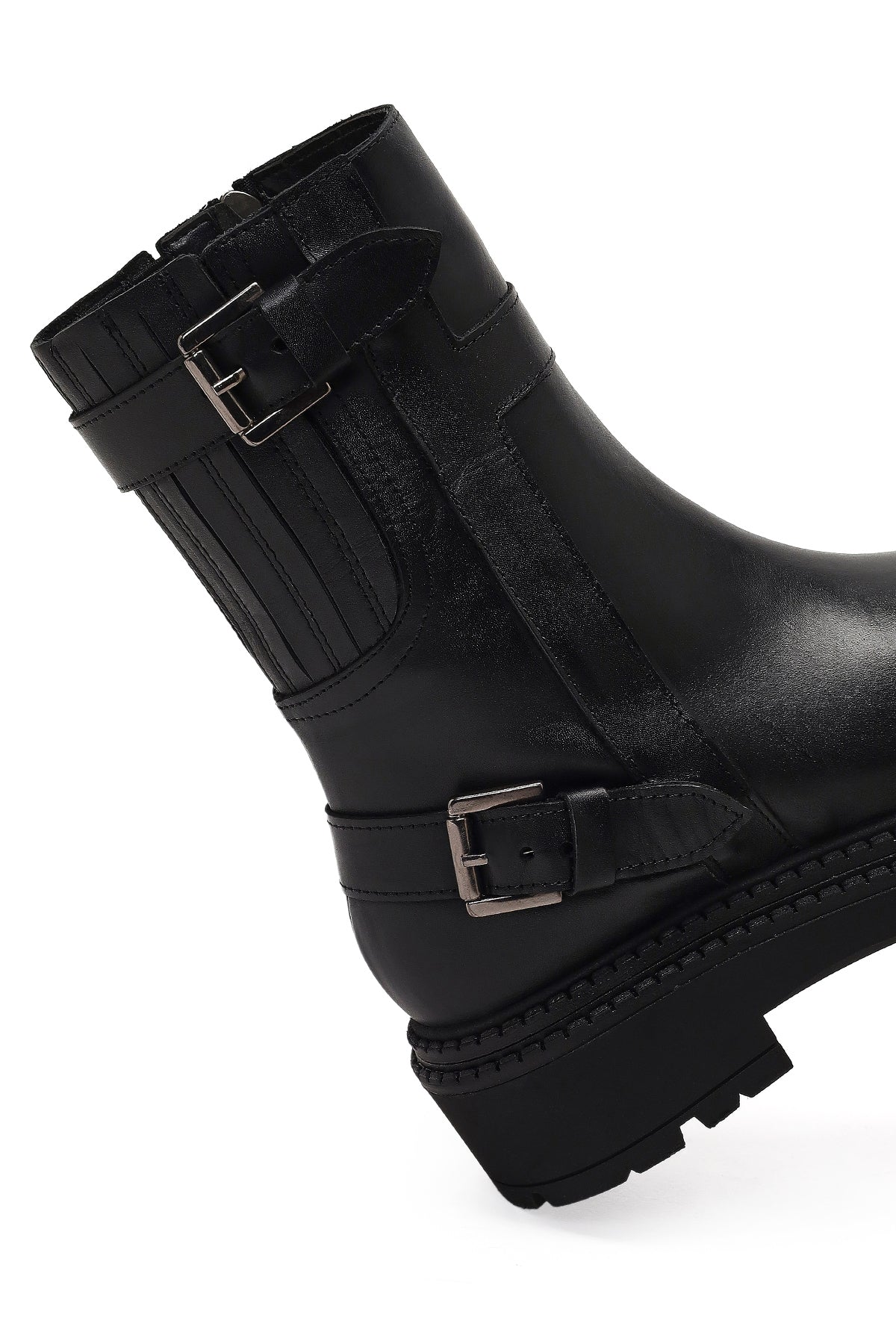 Kadın Siyah Fermuarlı Kalın Tabanlı Deri Bot