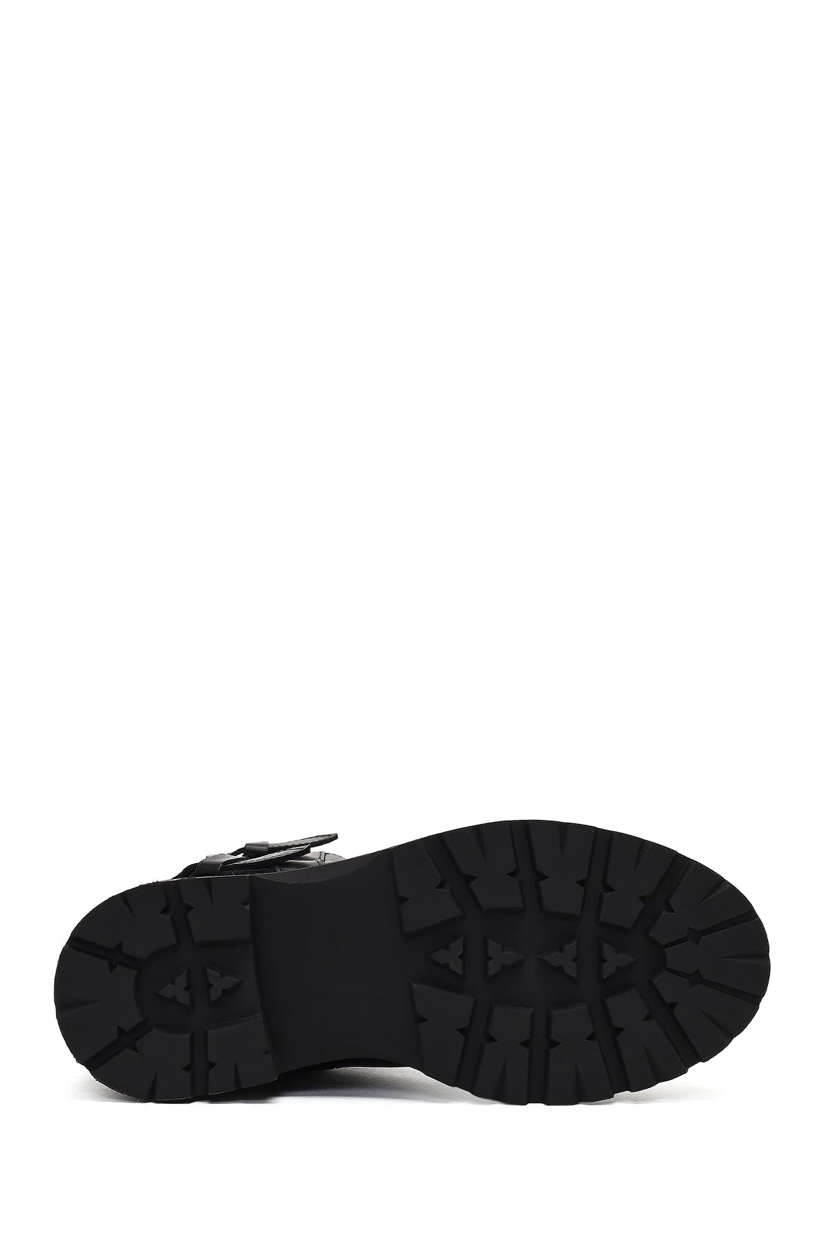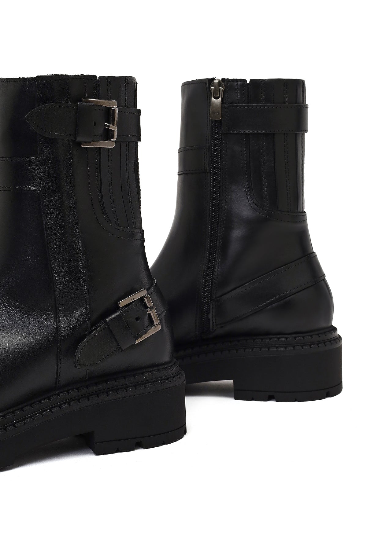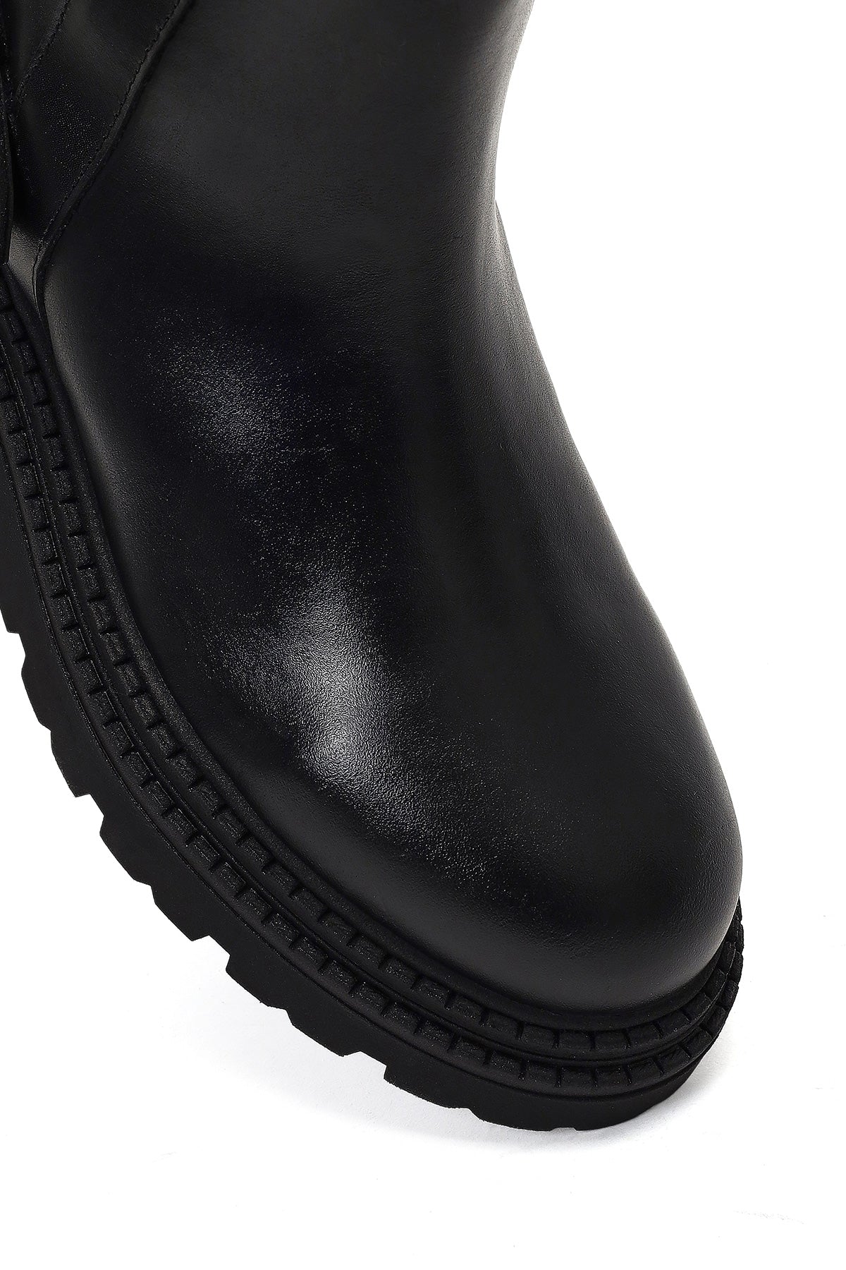 Kadın Siyah Fermuarlı Kalın Tabanlı Deri Bot