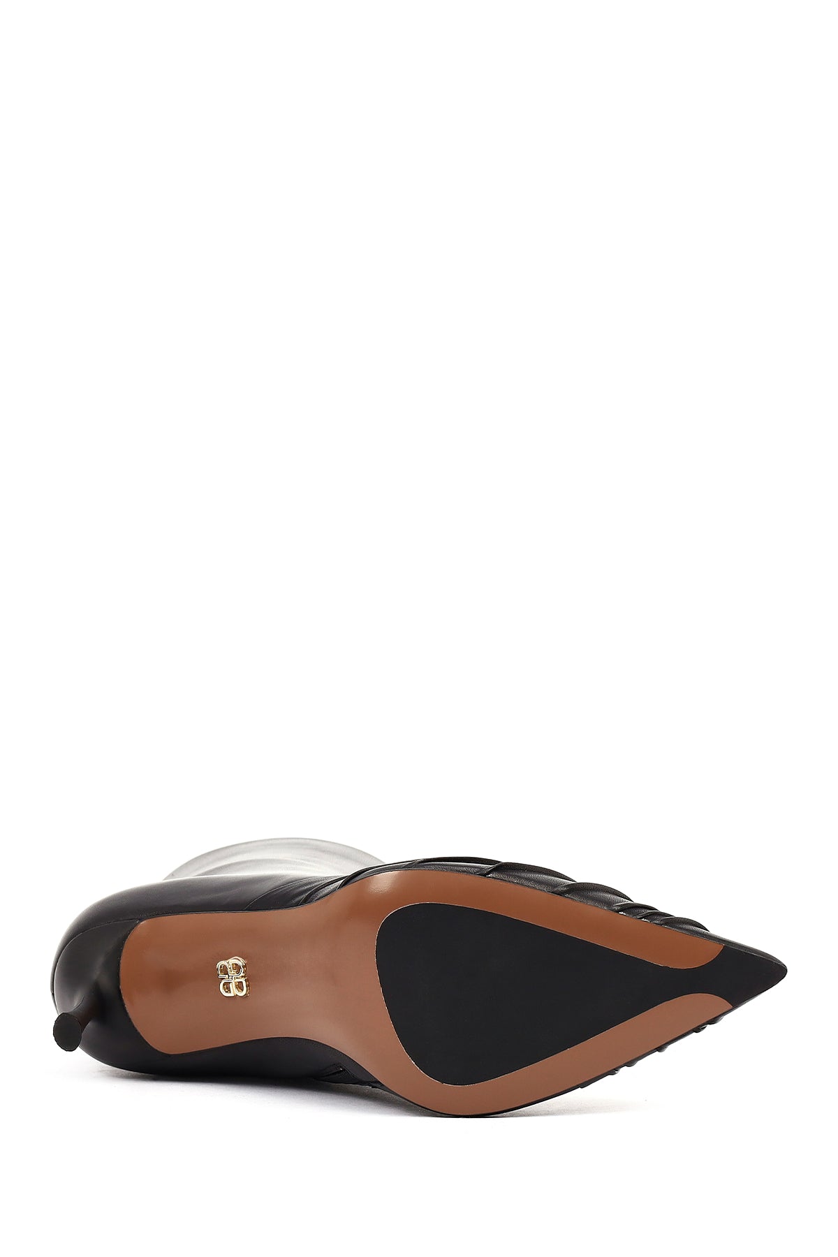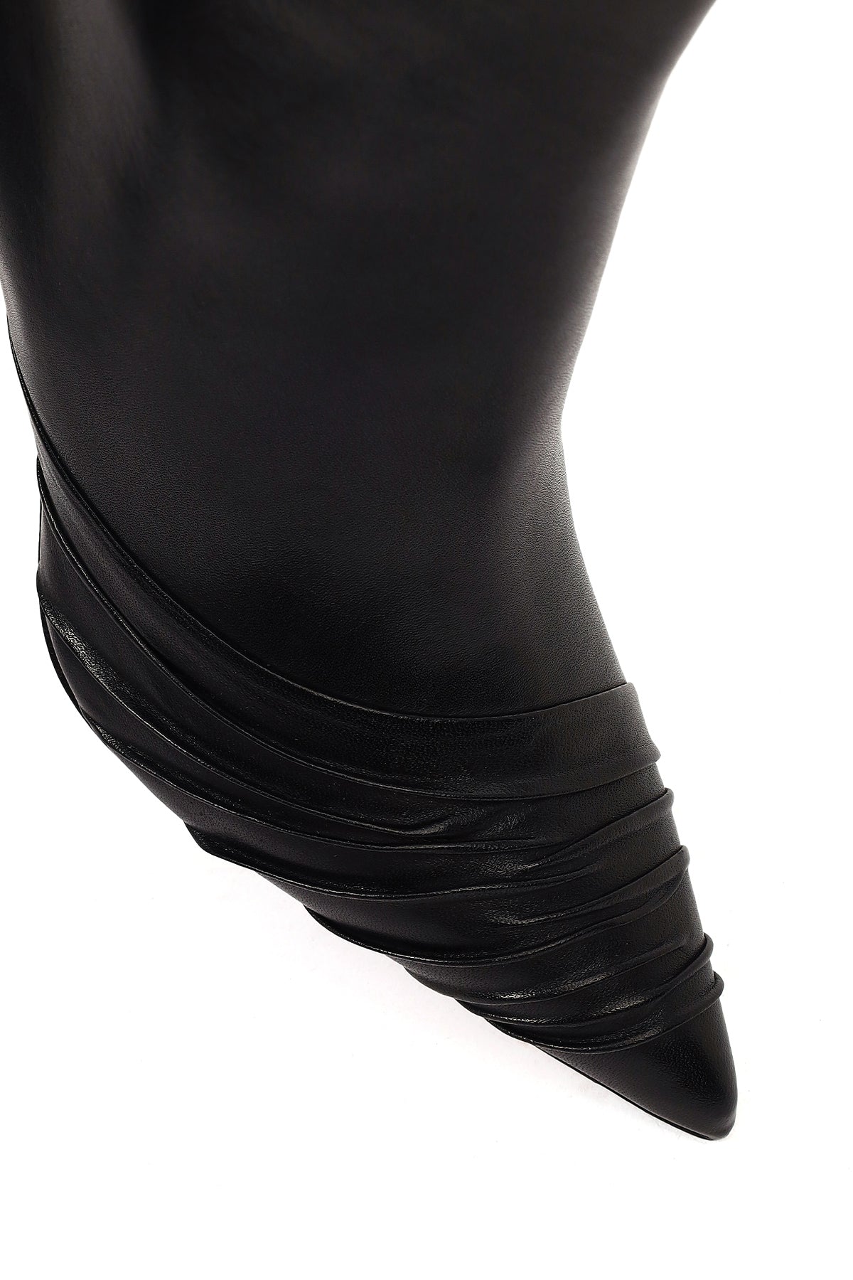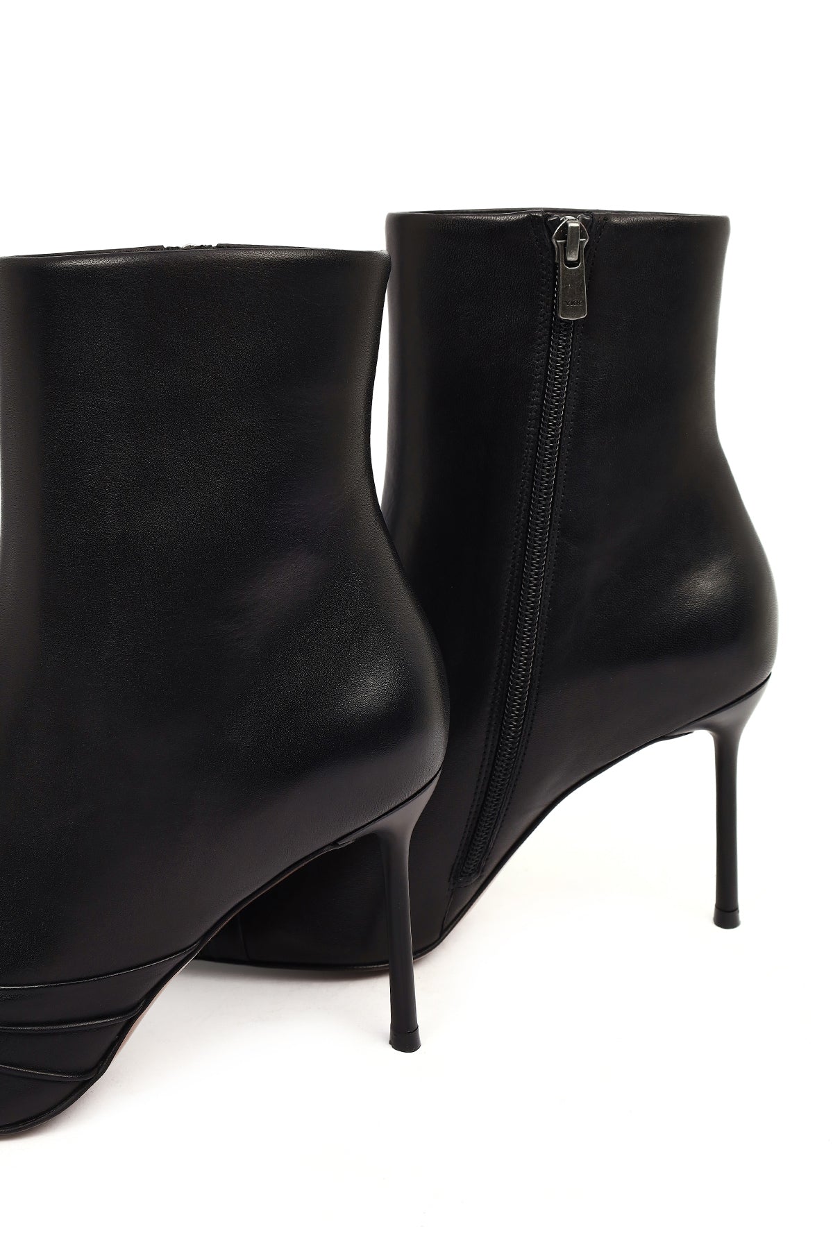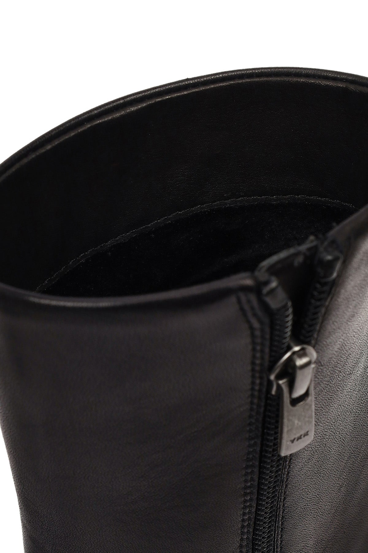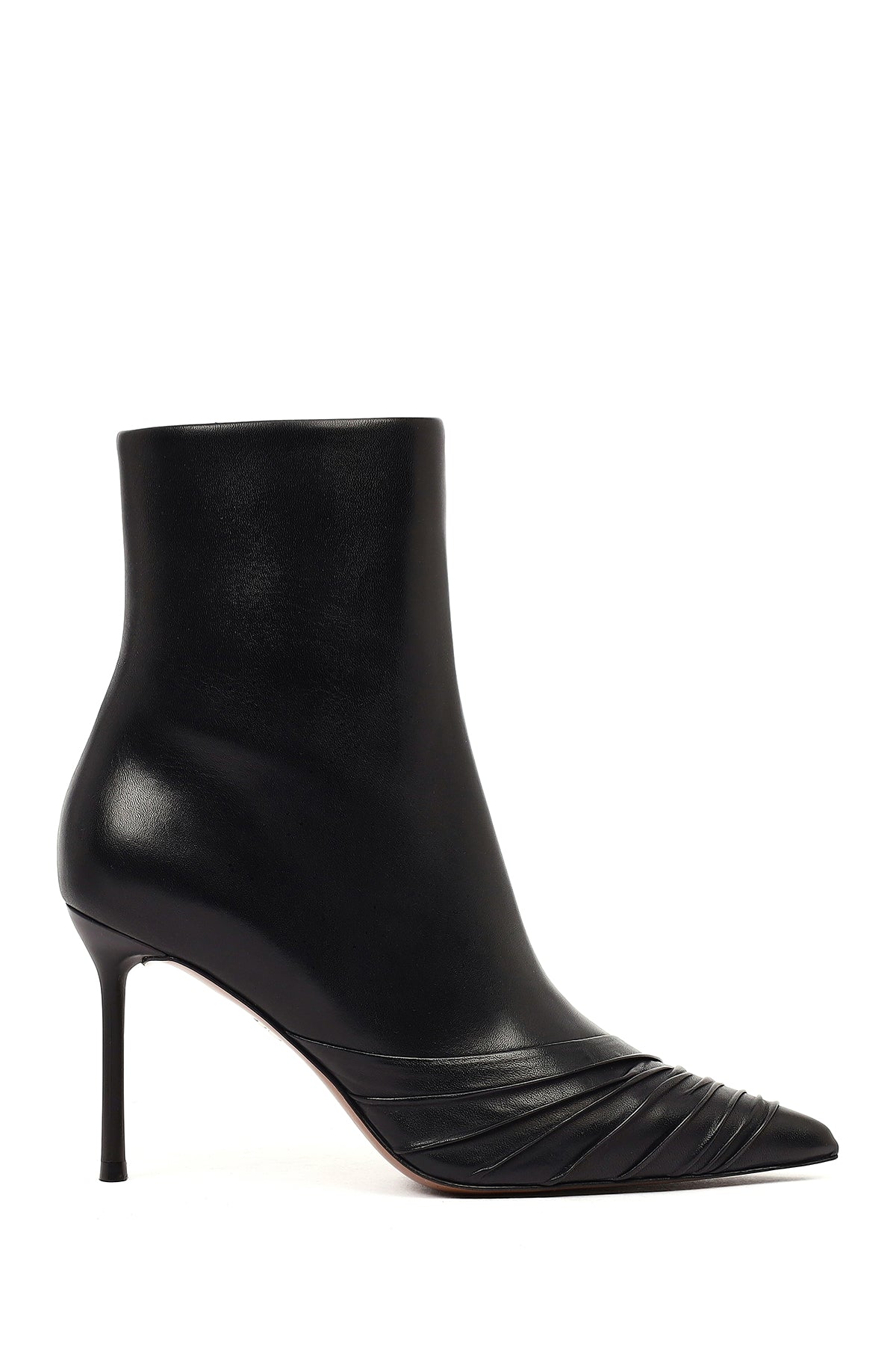 Kadın Siyah Fermuarlı İnce Topuklu Deri Bot