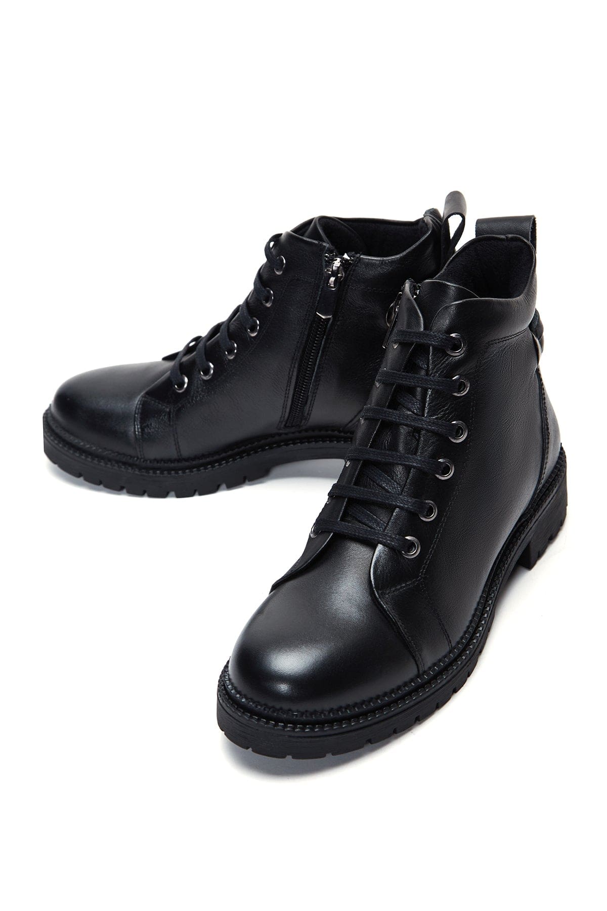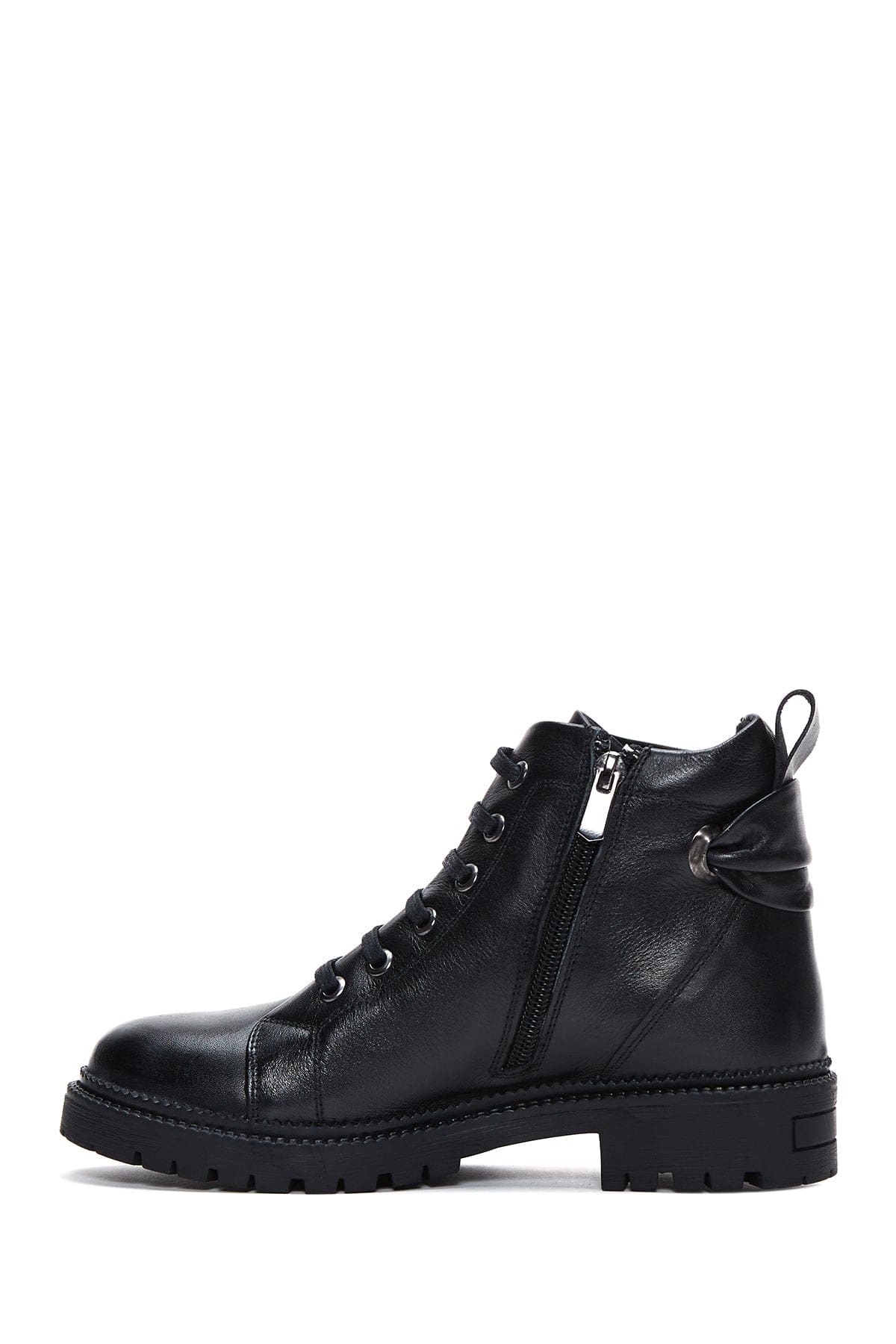Kadın Siyah Fermuarlı Deri Bot