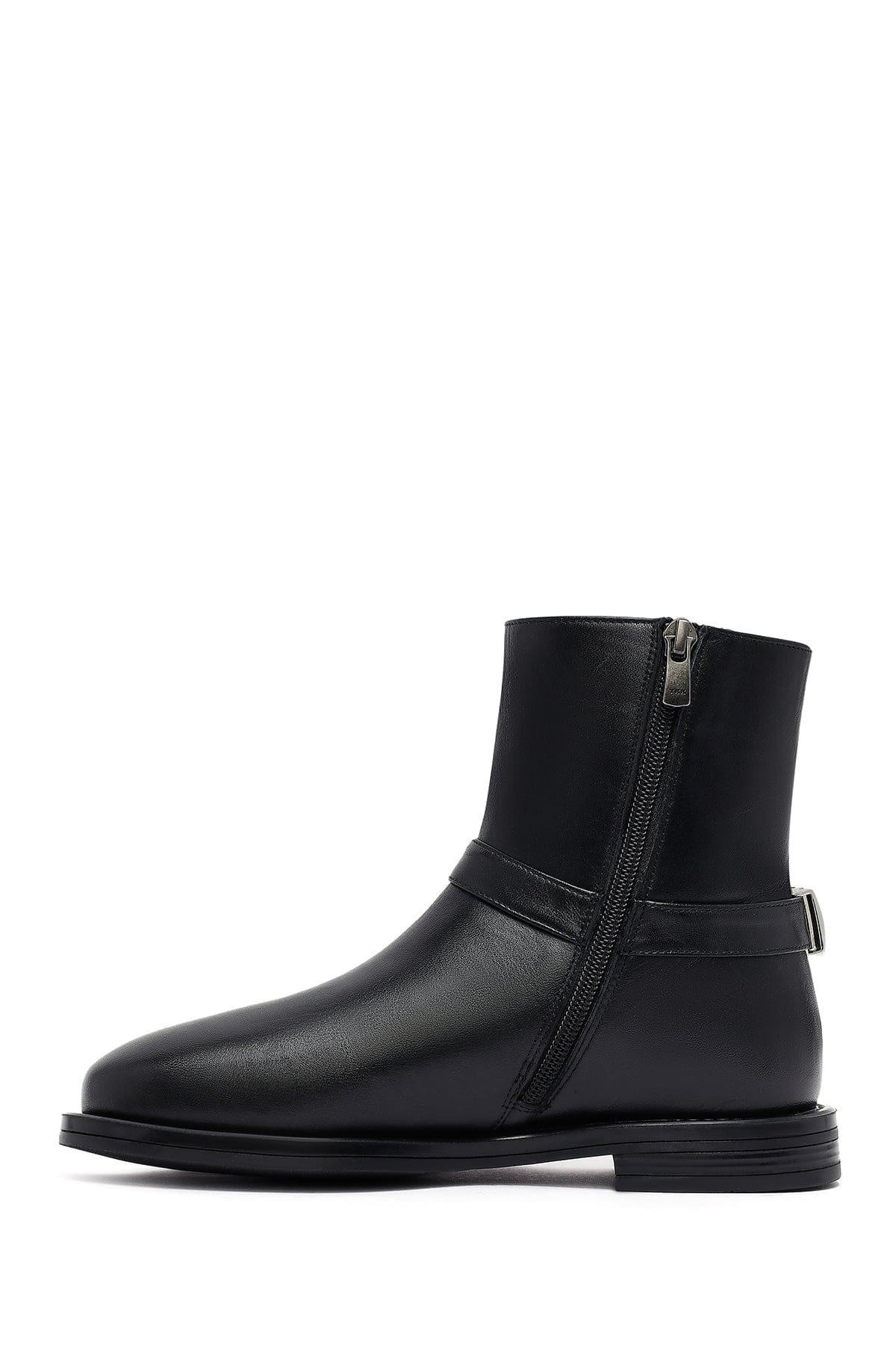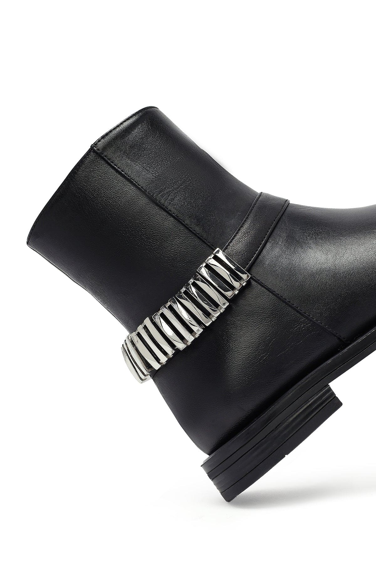 Kadın Siyah Fermuarlı Metal Detaylı Deri Bot