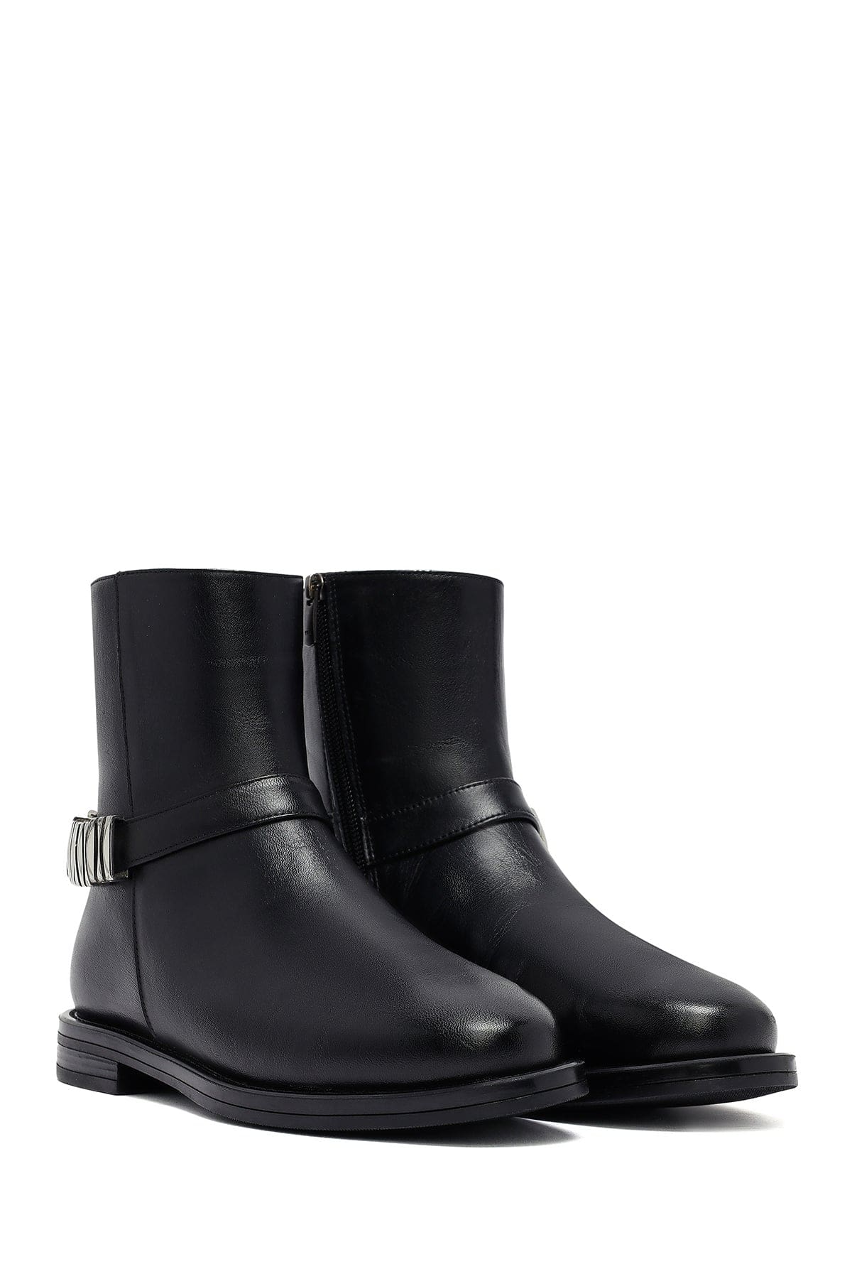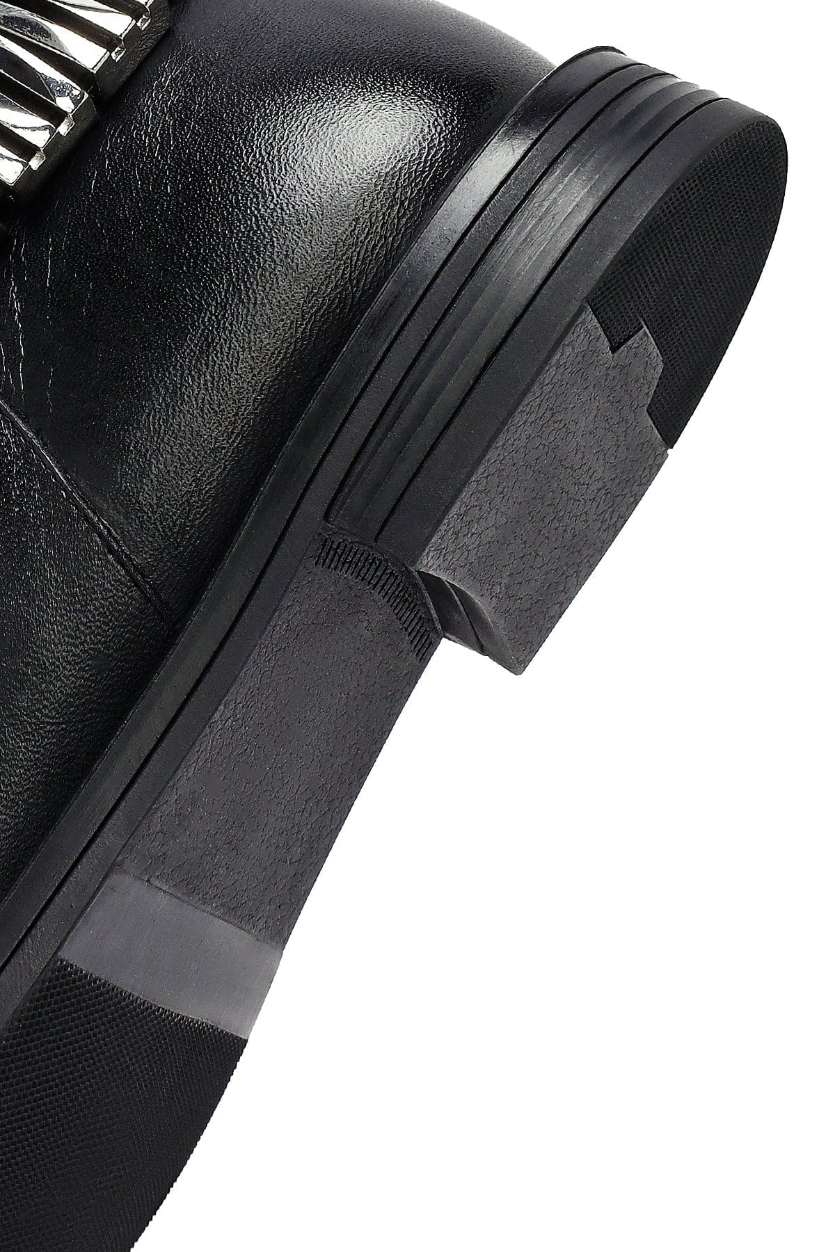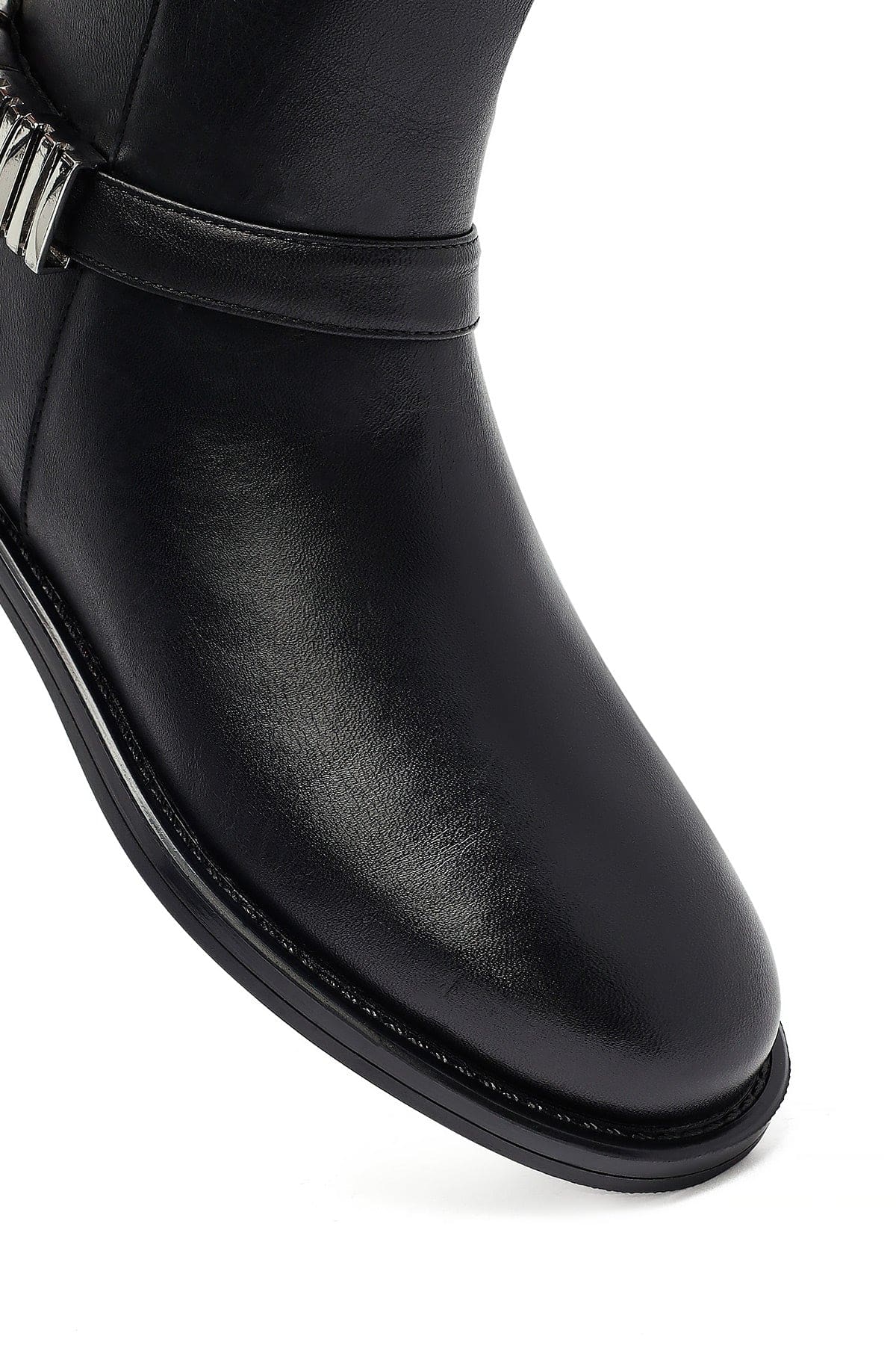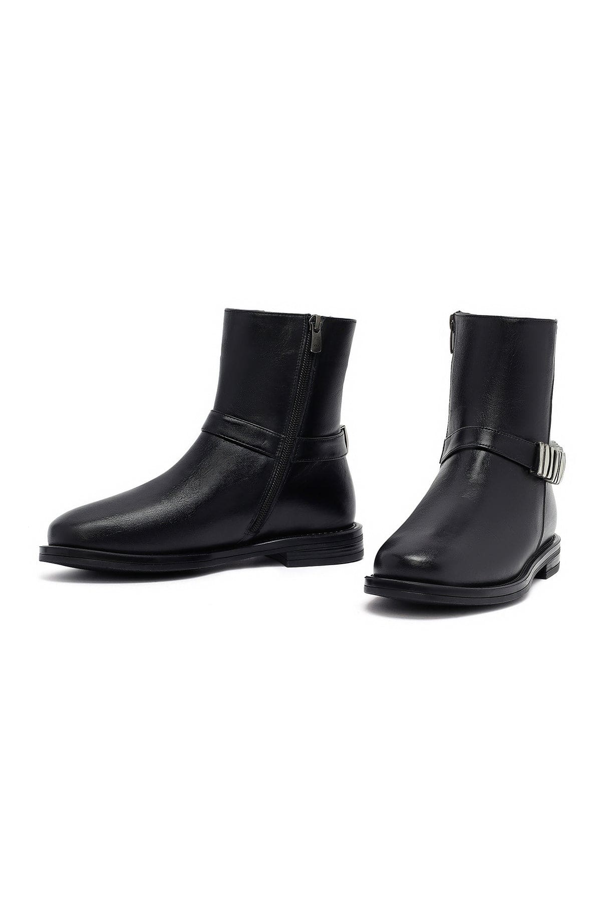 بوت زنانه مشکی چرمی زیپدار جزئیات فلزی دری مد