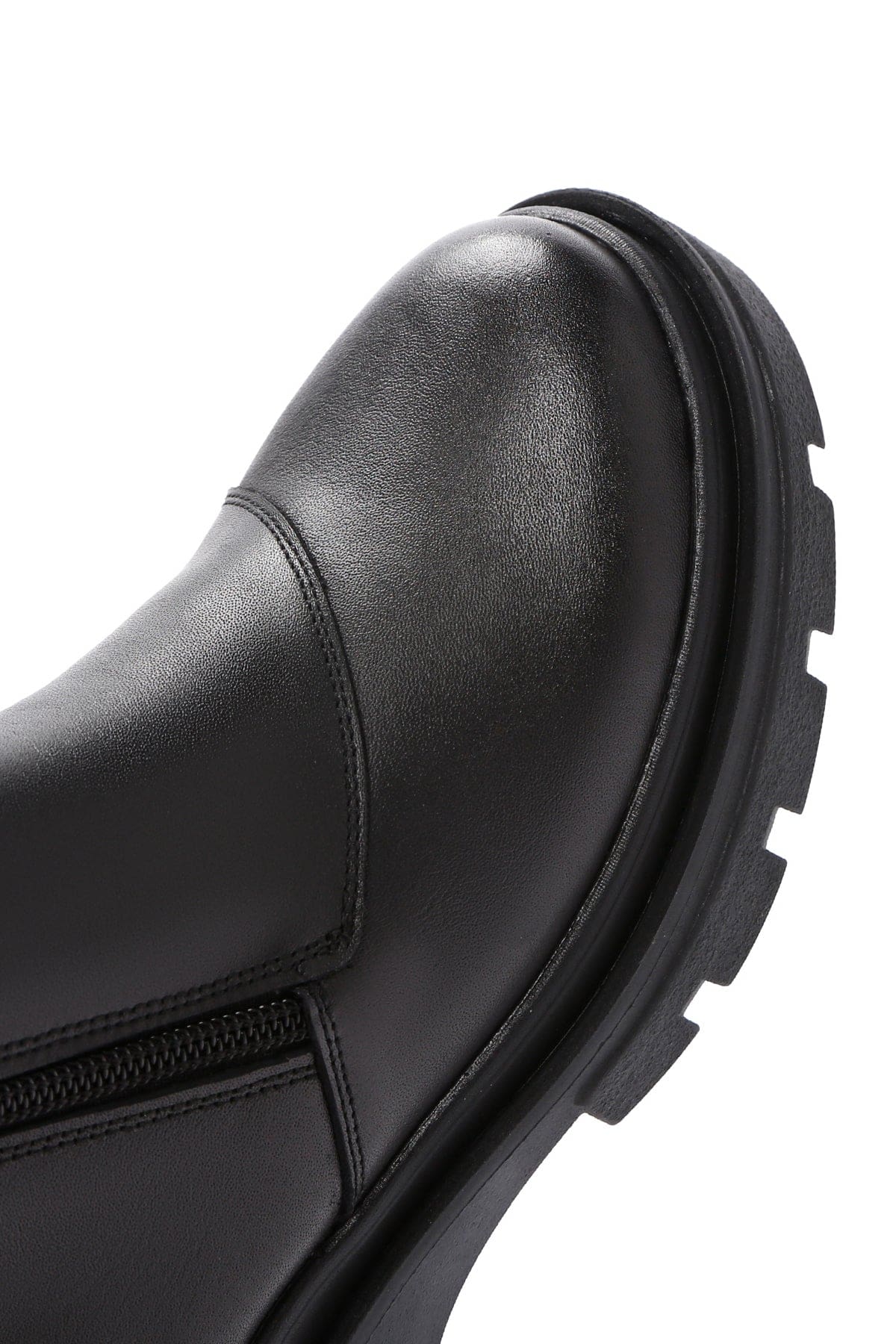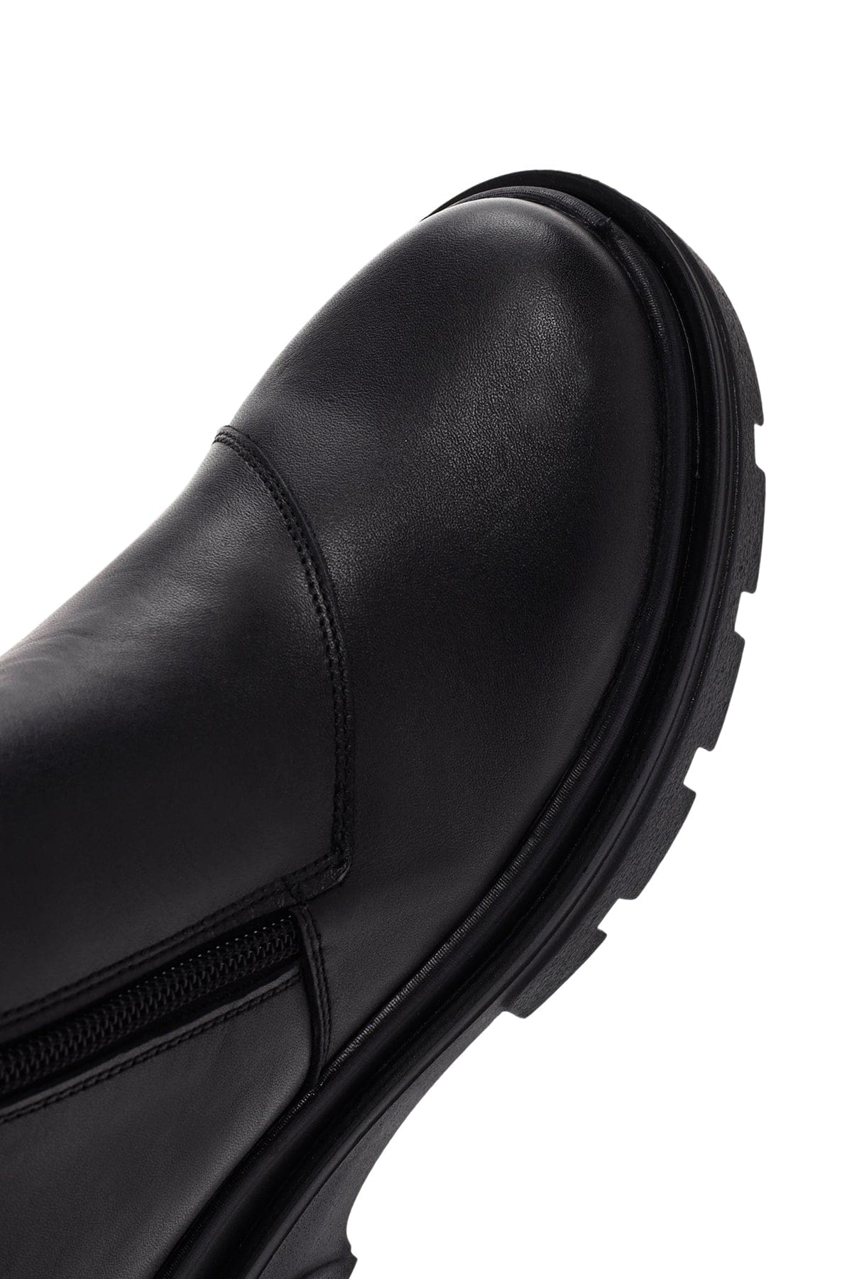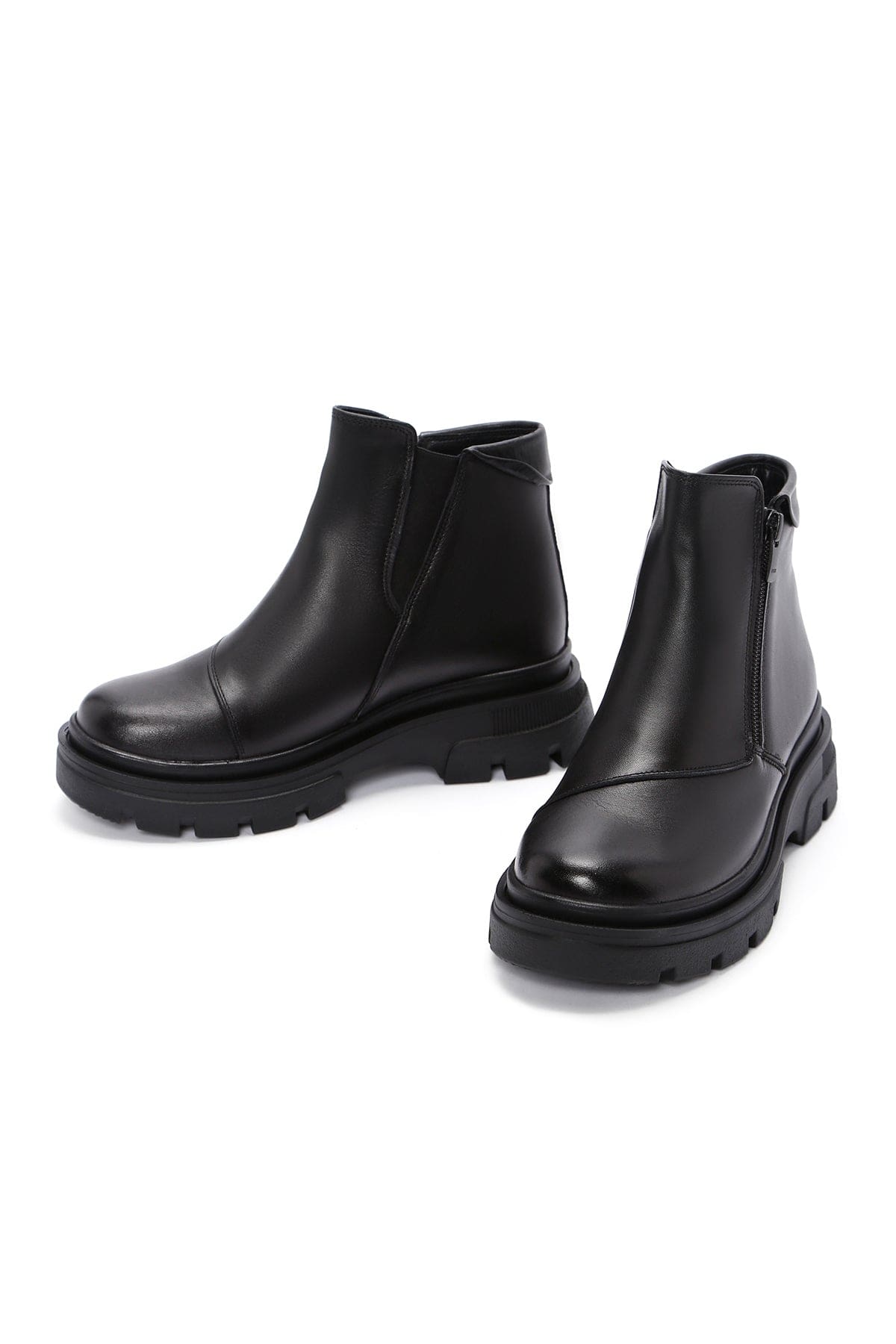 Kadın Siyah Fermuarlı Kalın Tabanlı Deri Bot