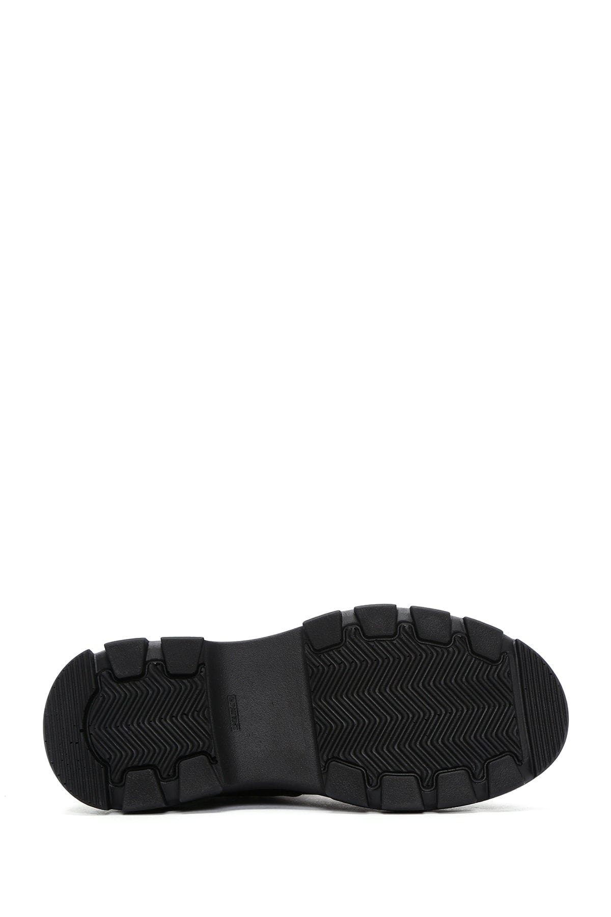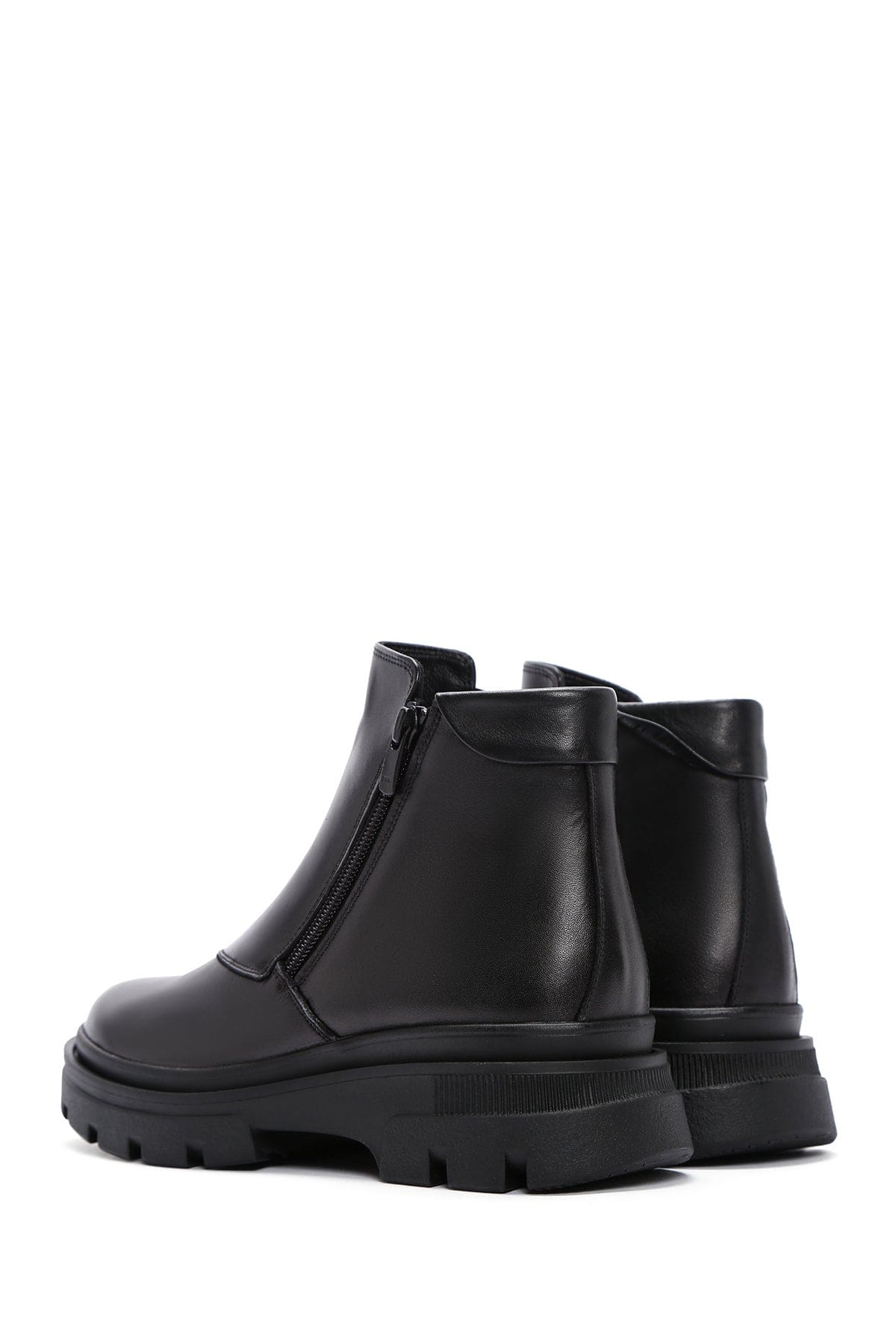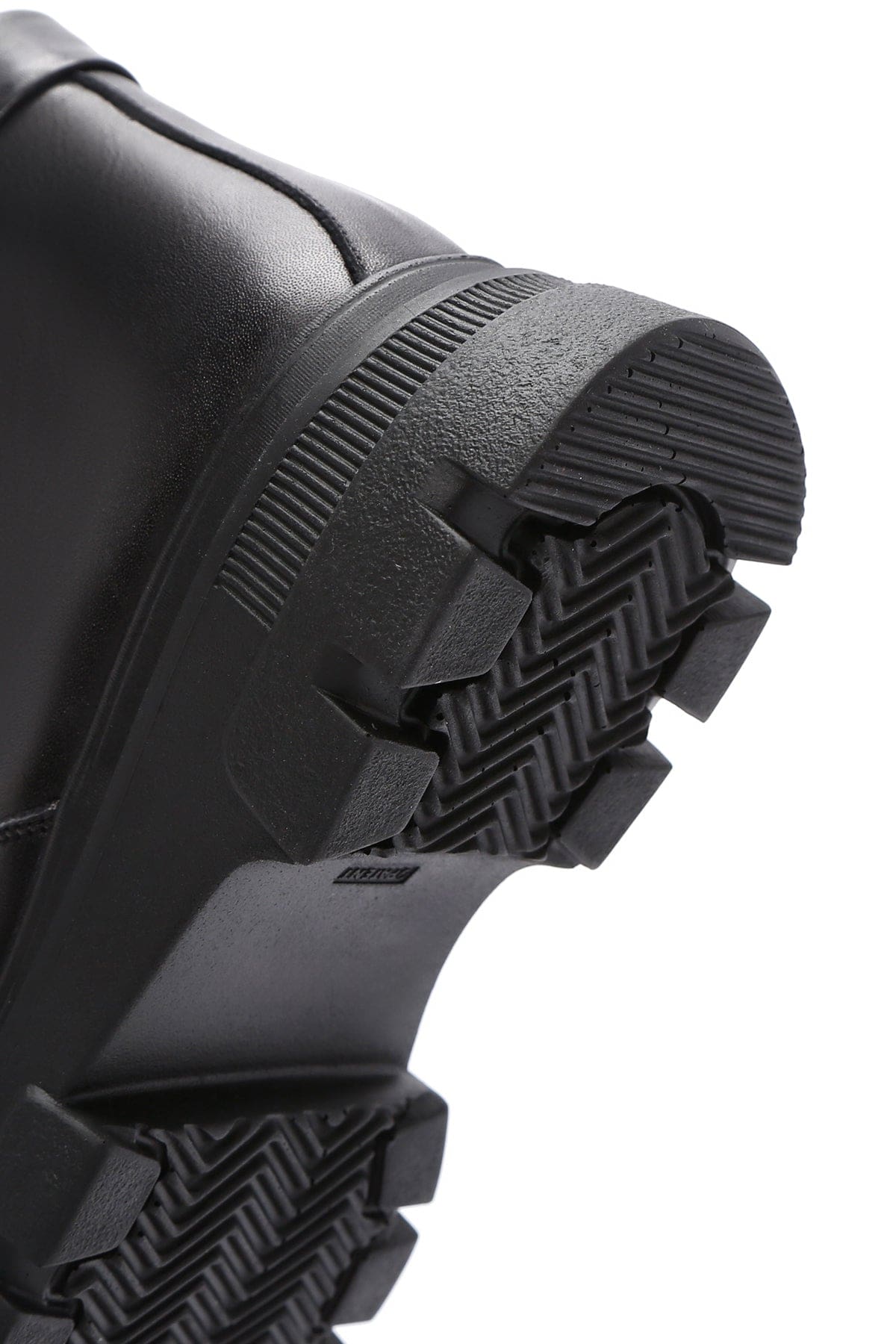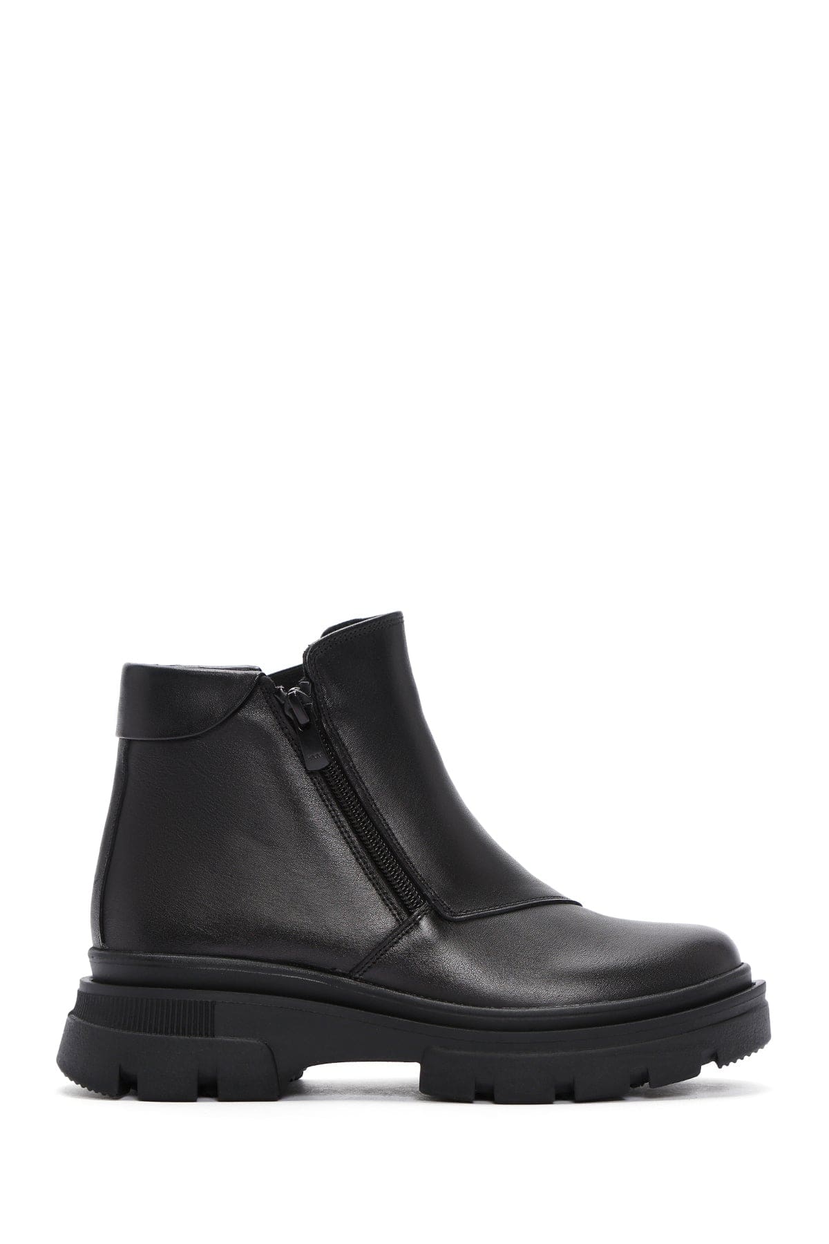 Kadın Siyah Fermuarlı Kalın Tabanlı Deri Bot