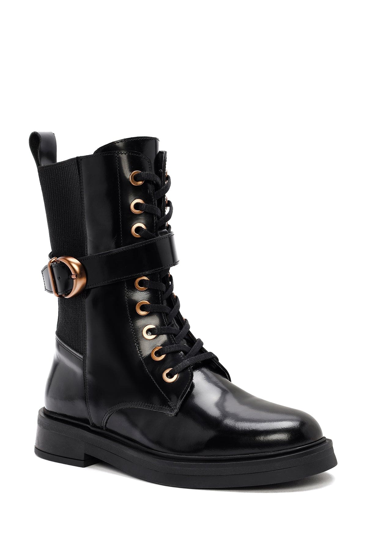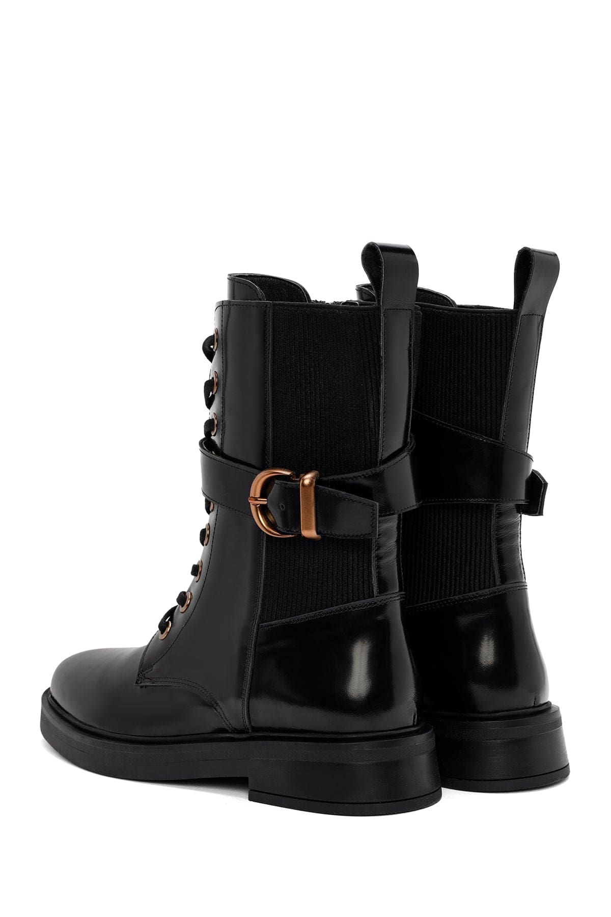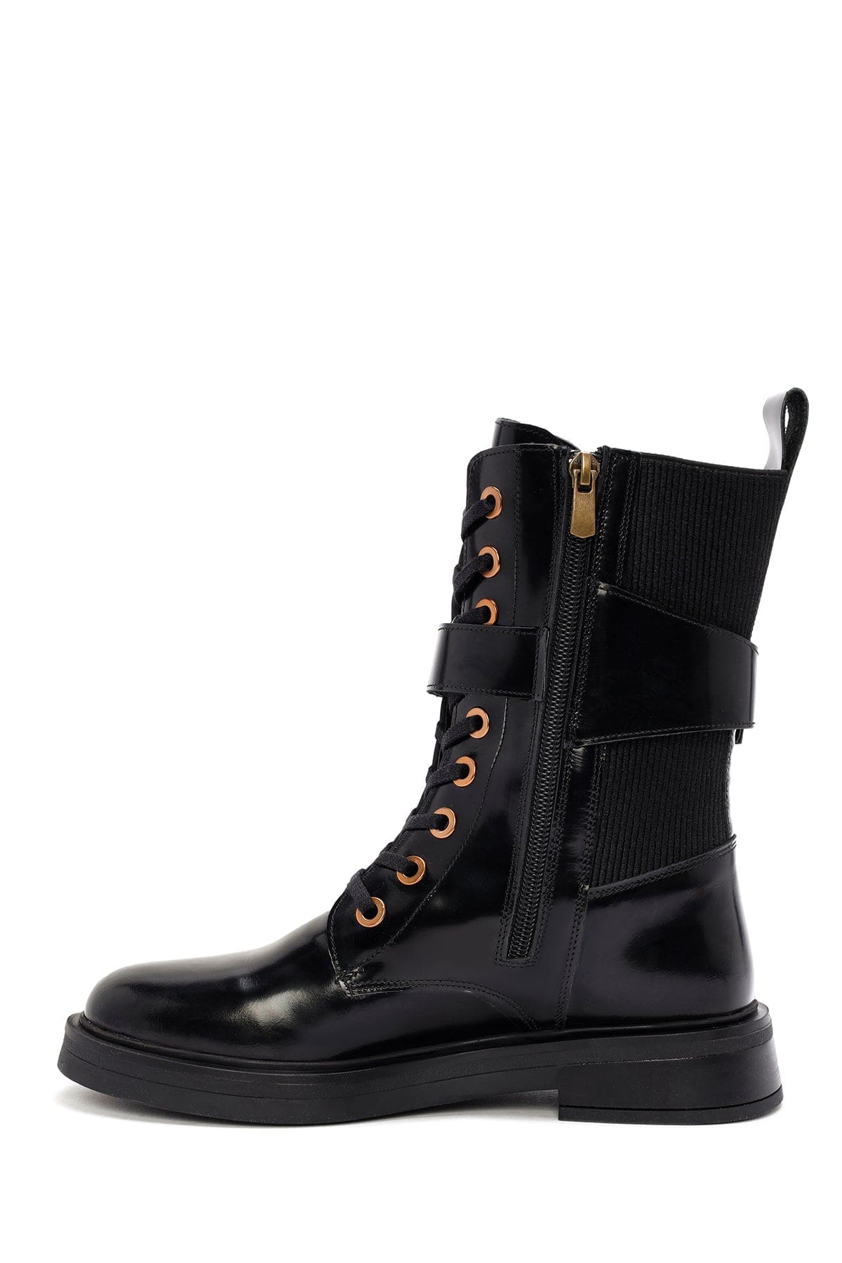 Kadın Siyah Fermuarlı Deri Postal Bot