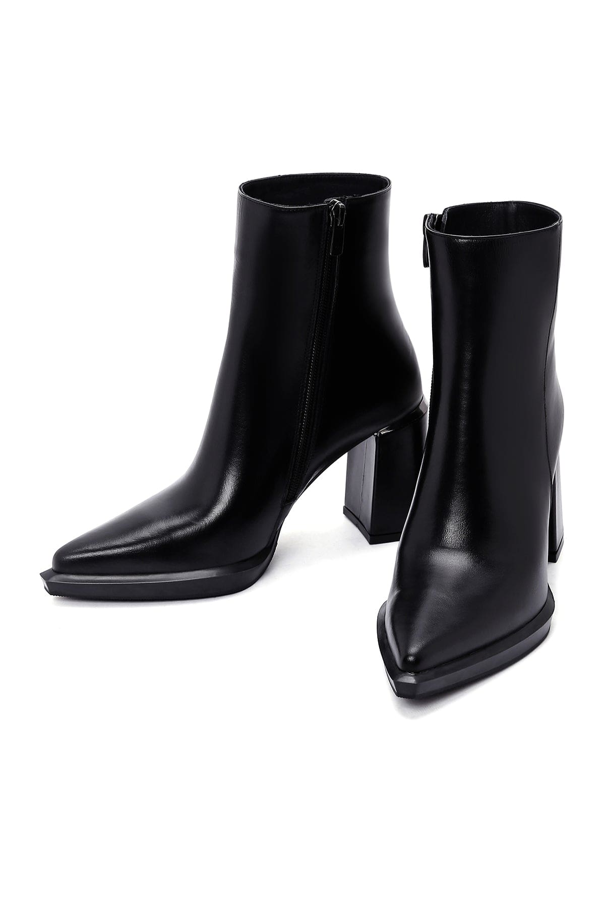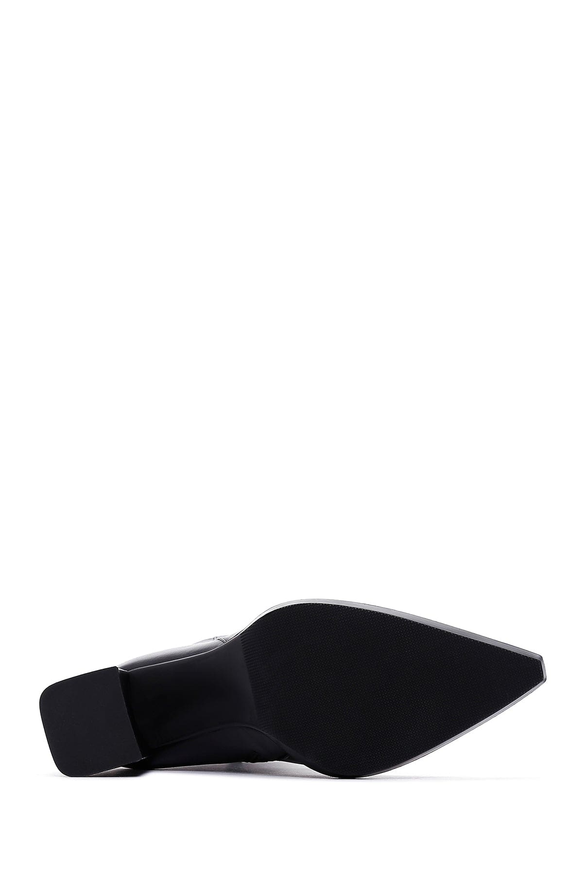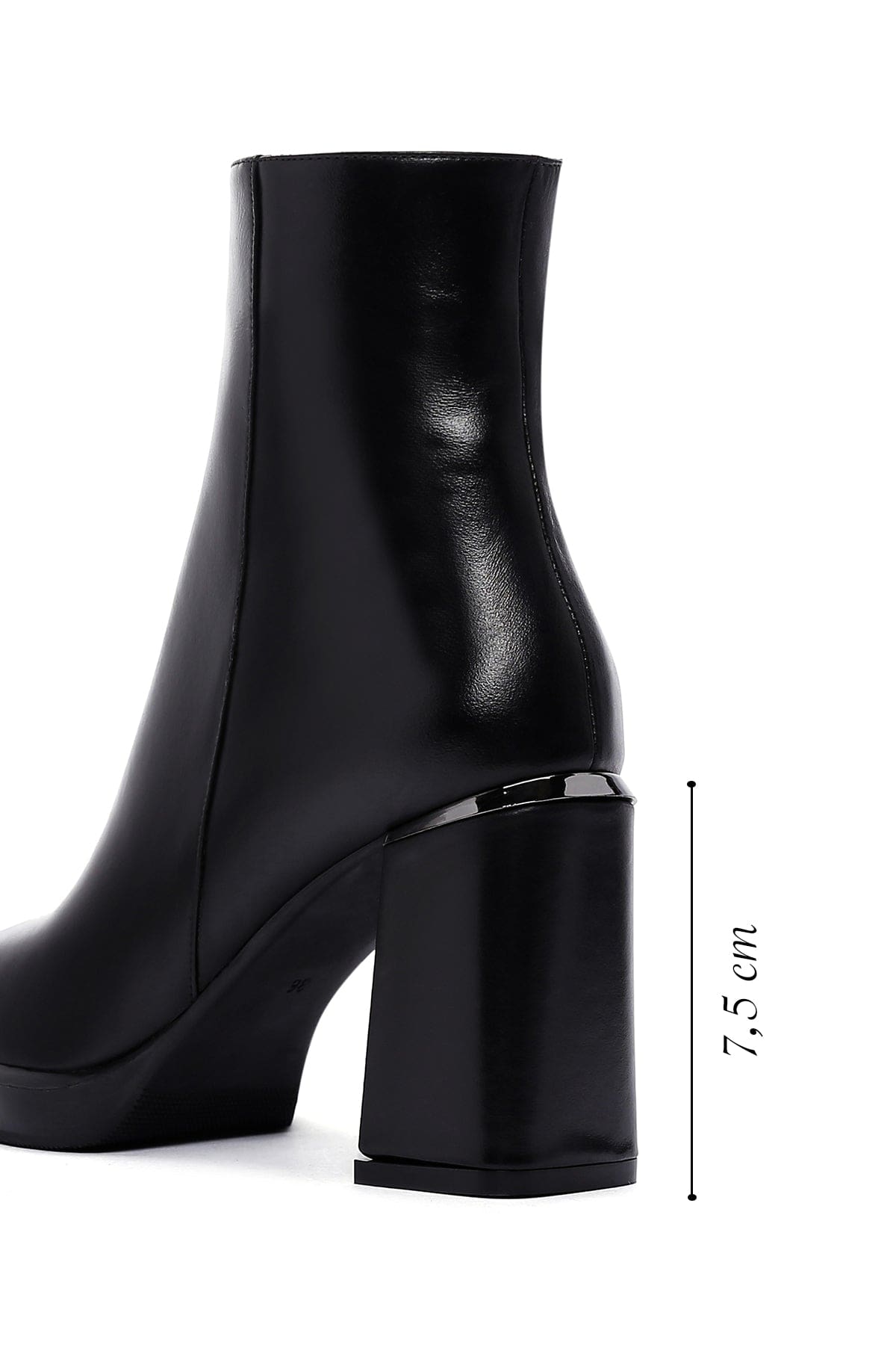 Kadın Siyah Fermuarlı Kalın Topuklu Deri Bot
