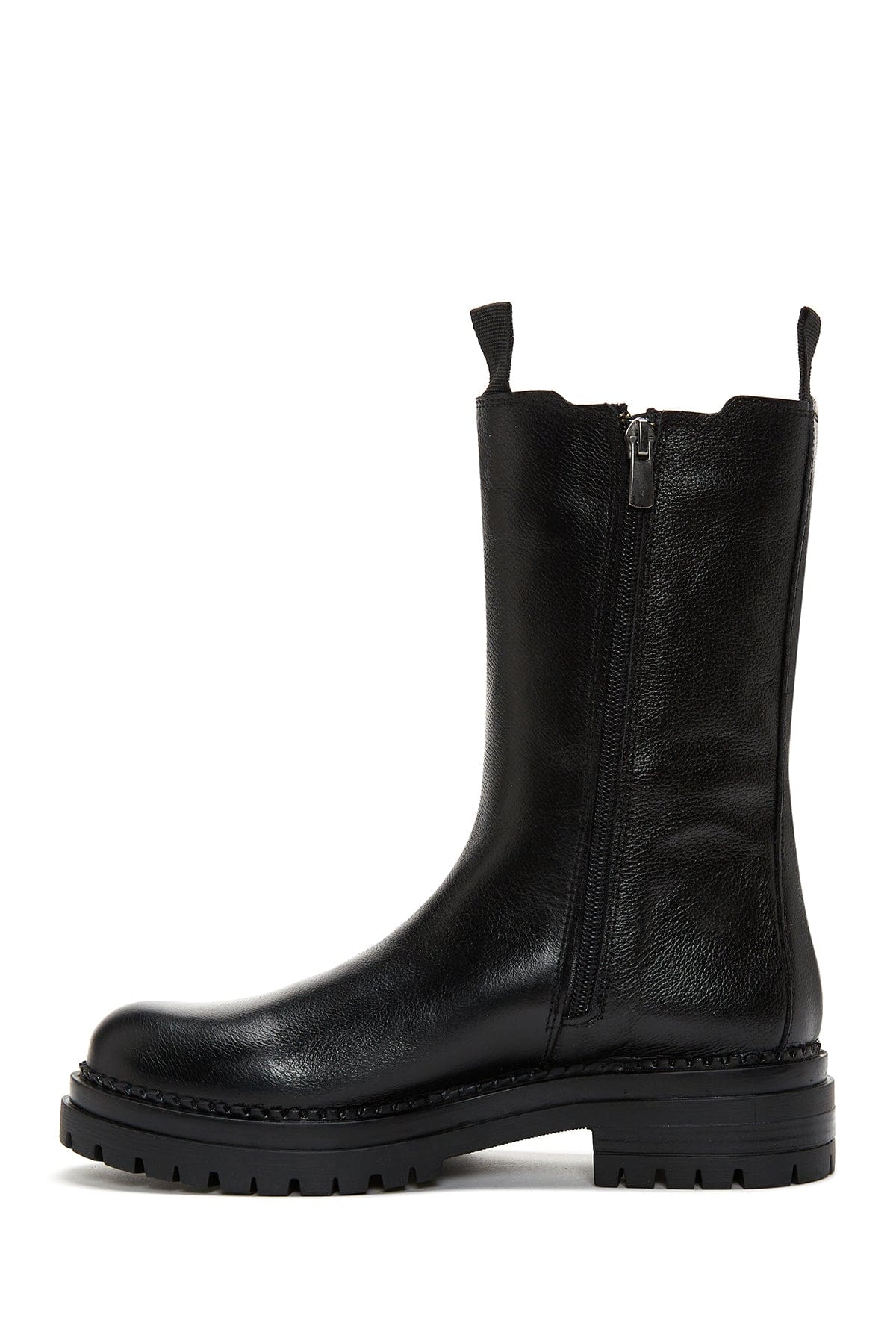 Kadın Siyah Fermuarlı Deri Casual Bot