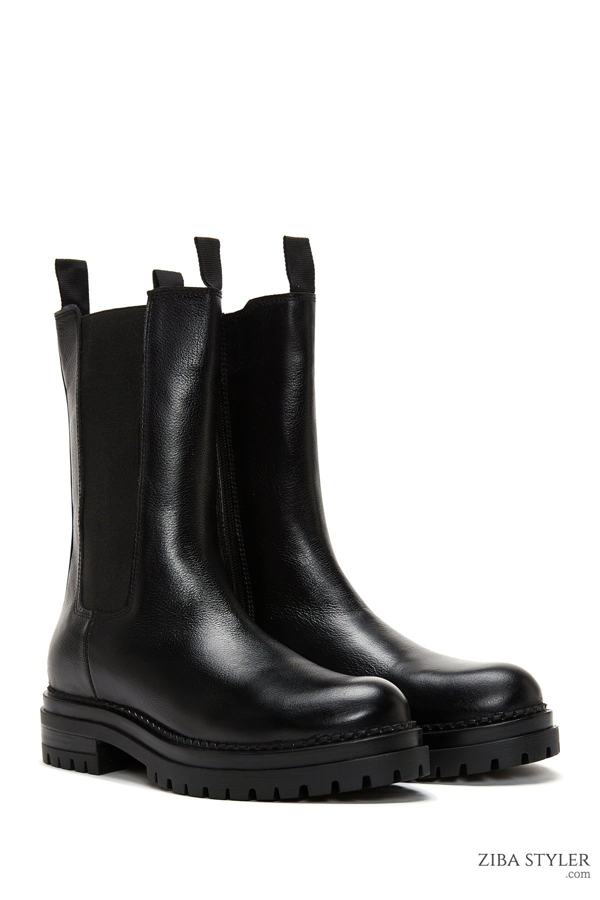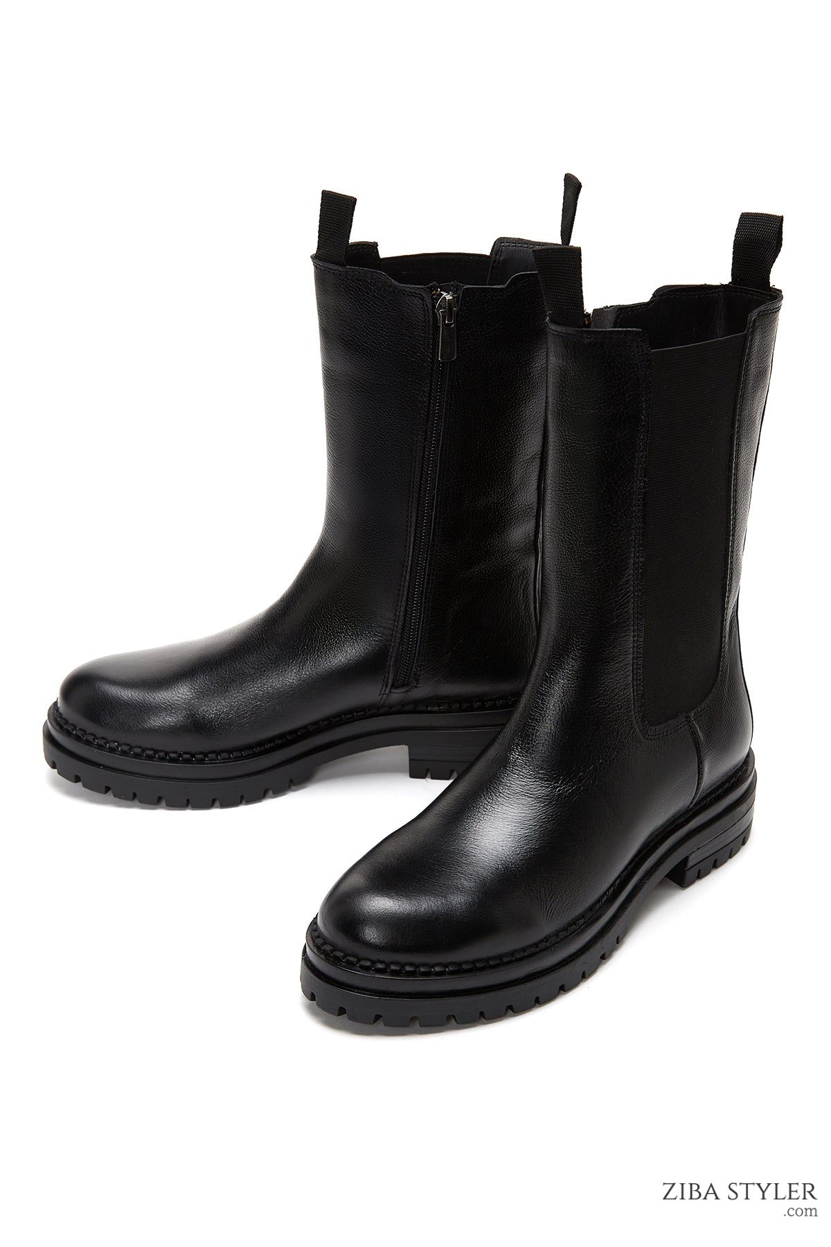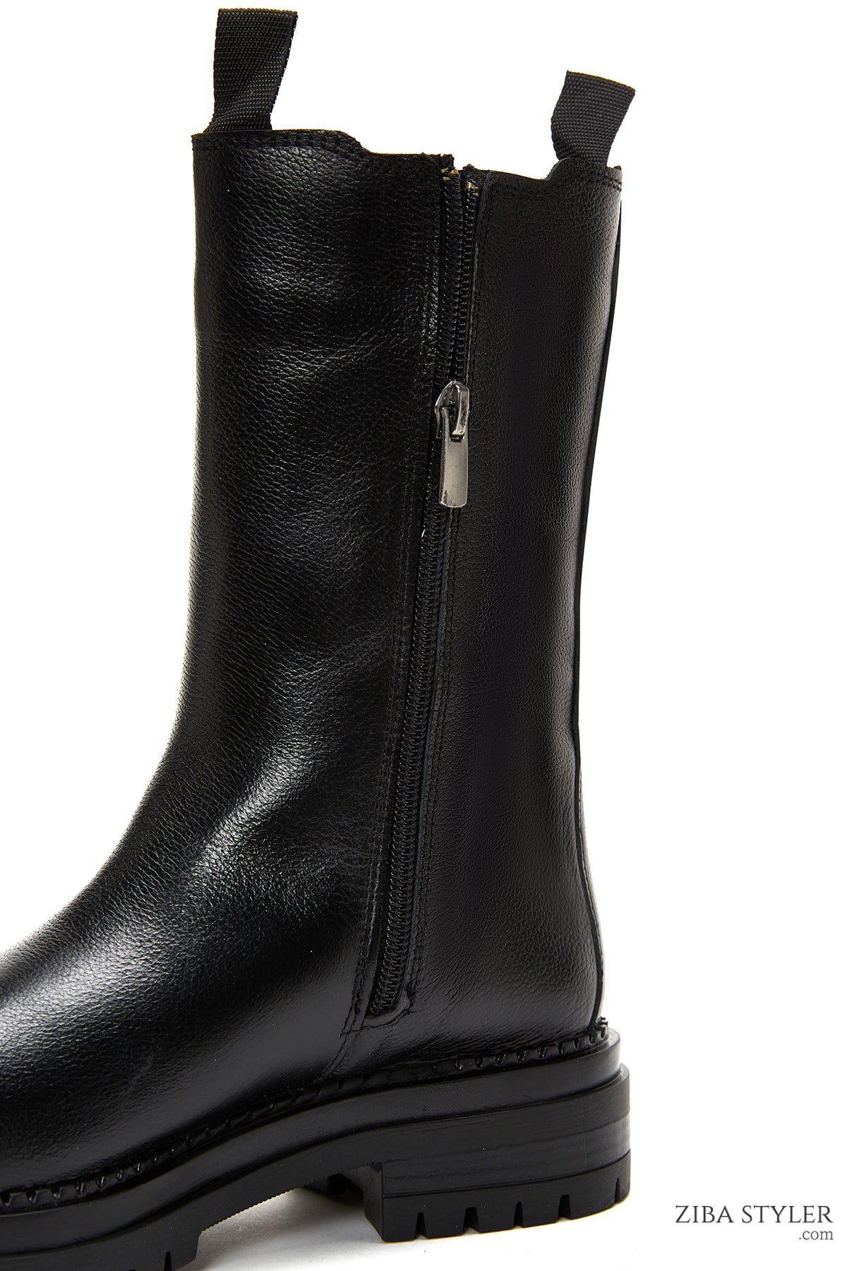 نیم بوت زنانه چرمی مشکی زیپدار کژوال دری مد