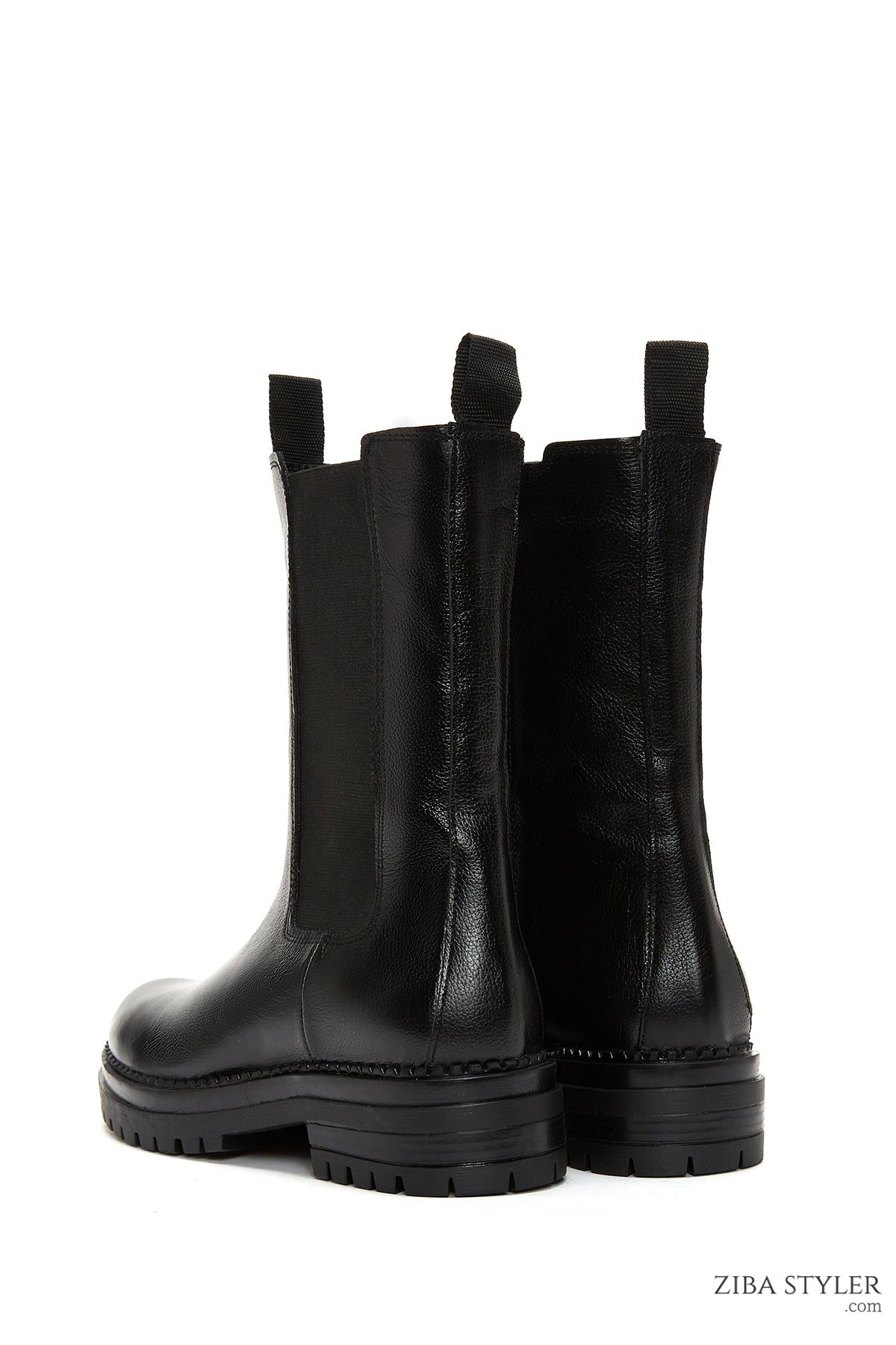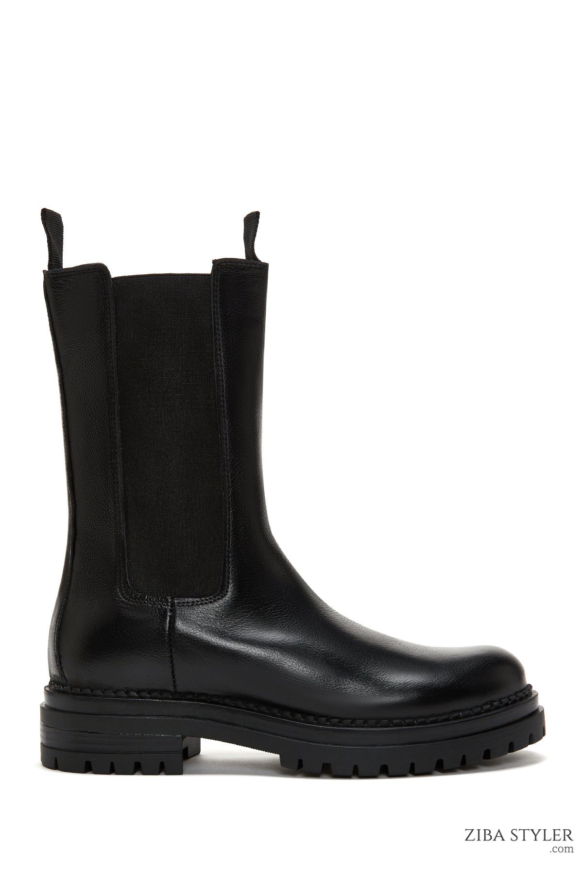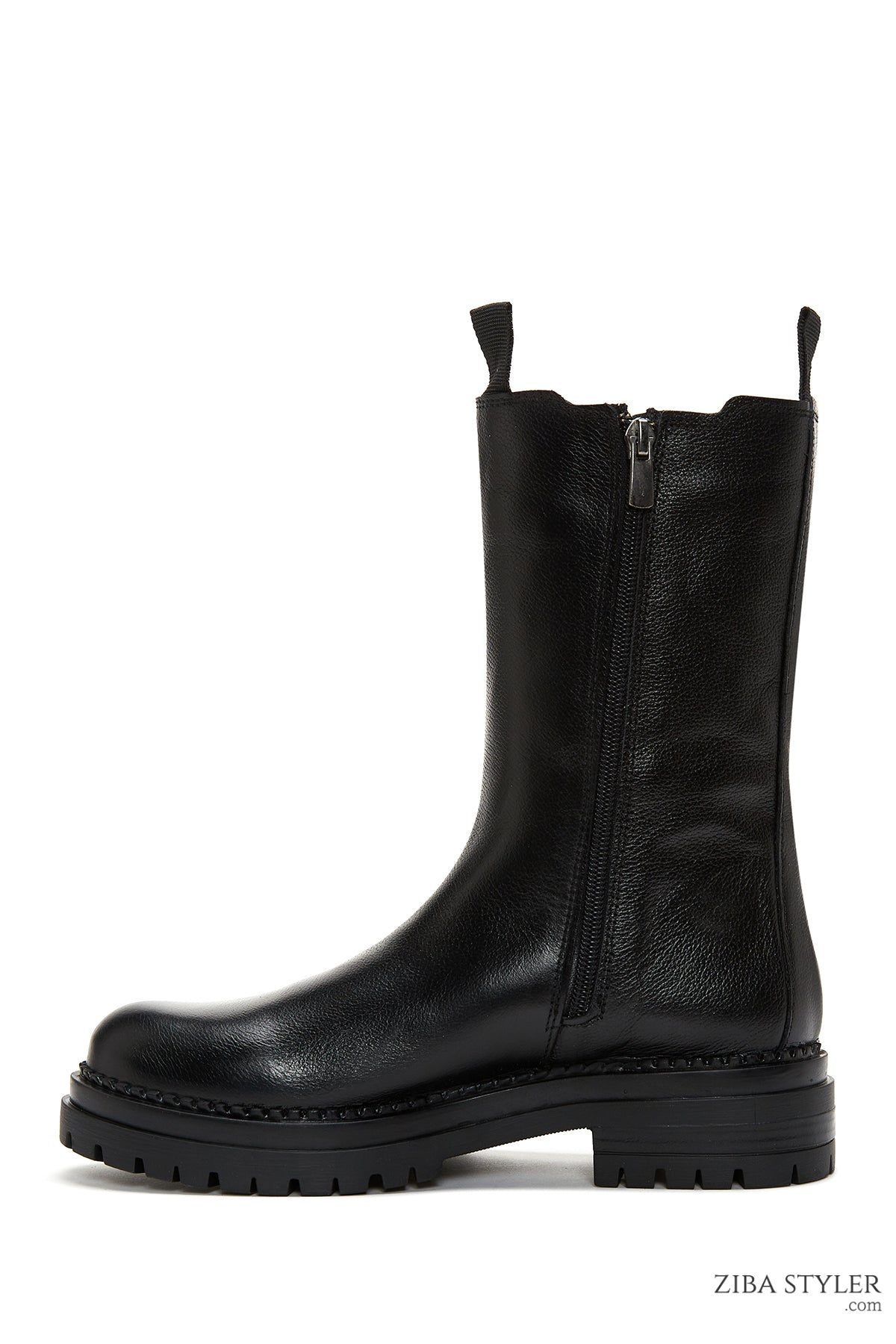 نیم بوت زنانه چرمی مشکی زیپدار کژوال دری مد