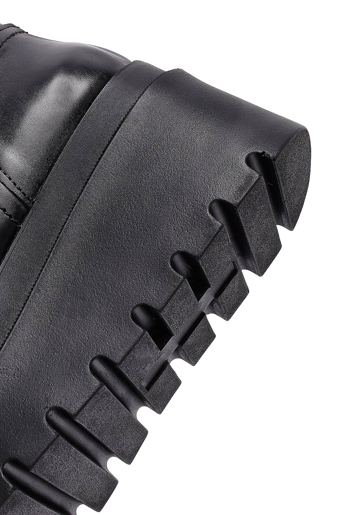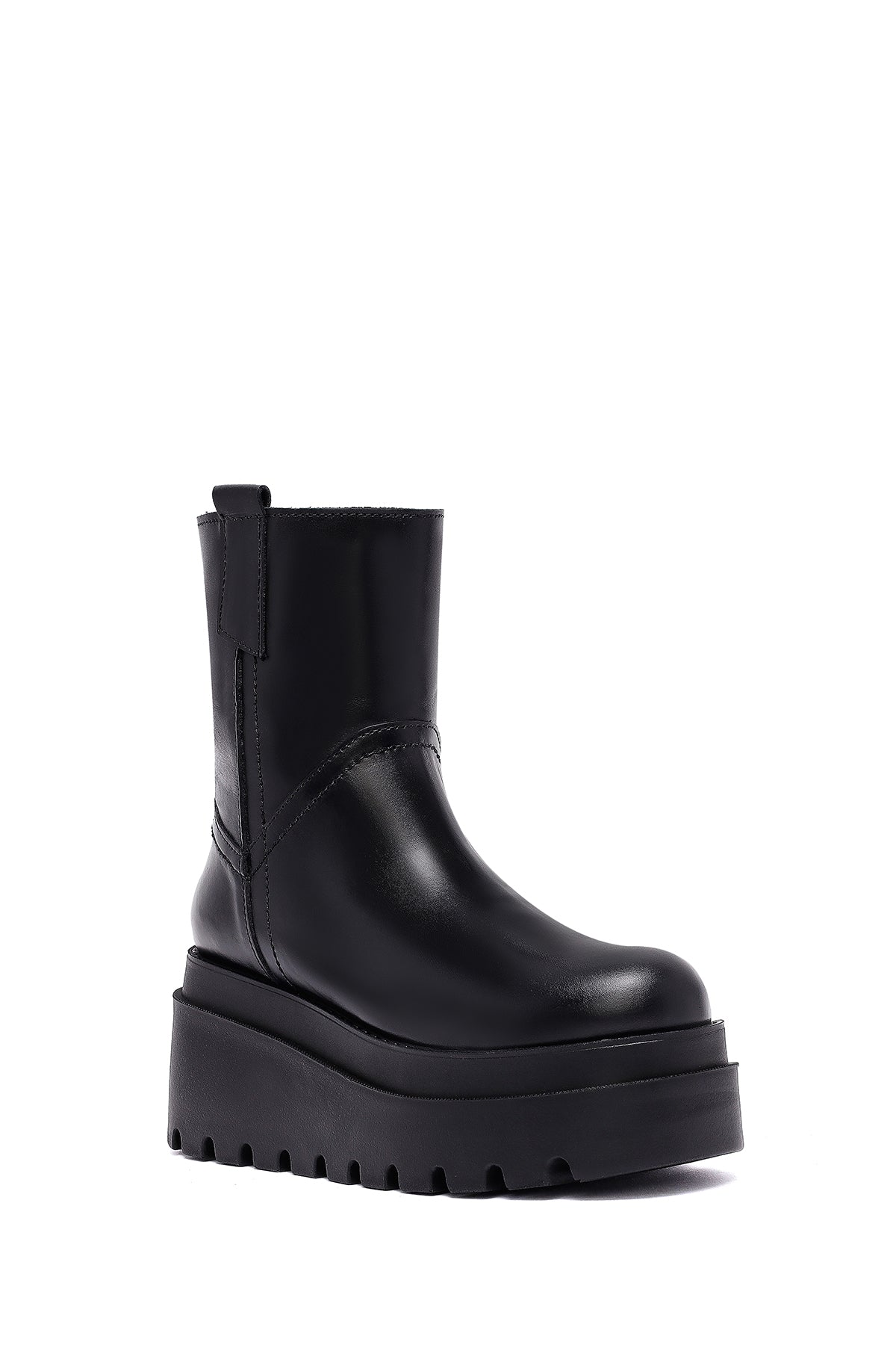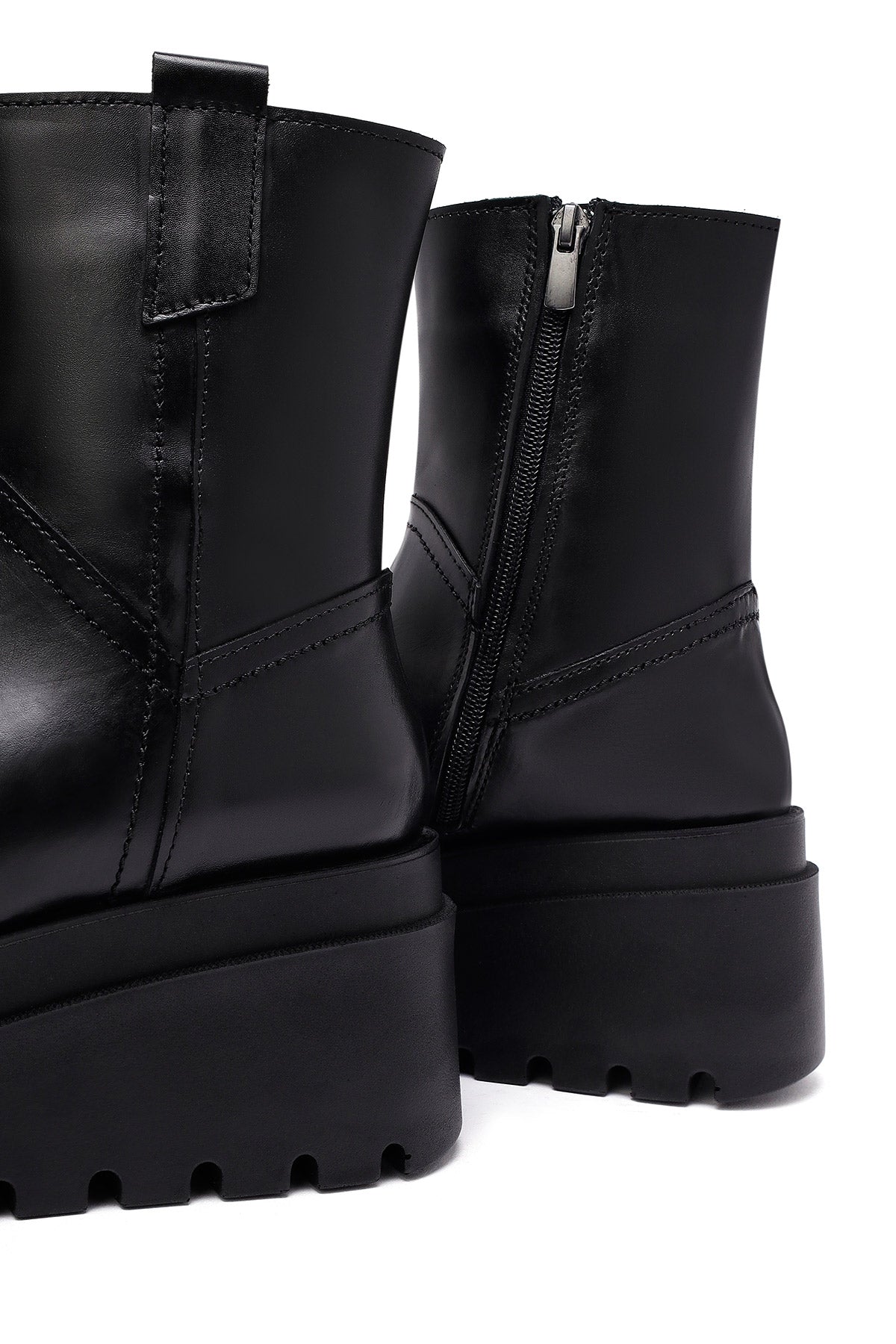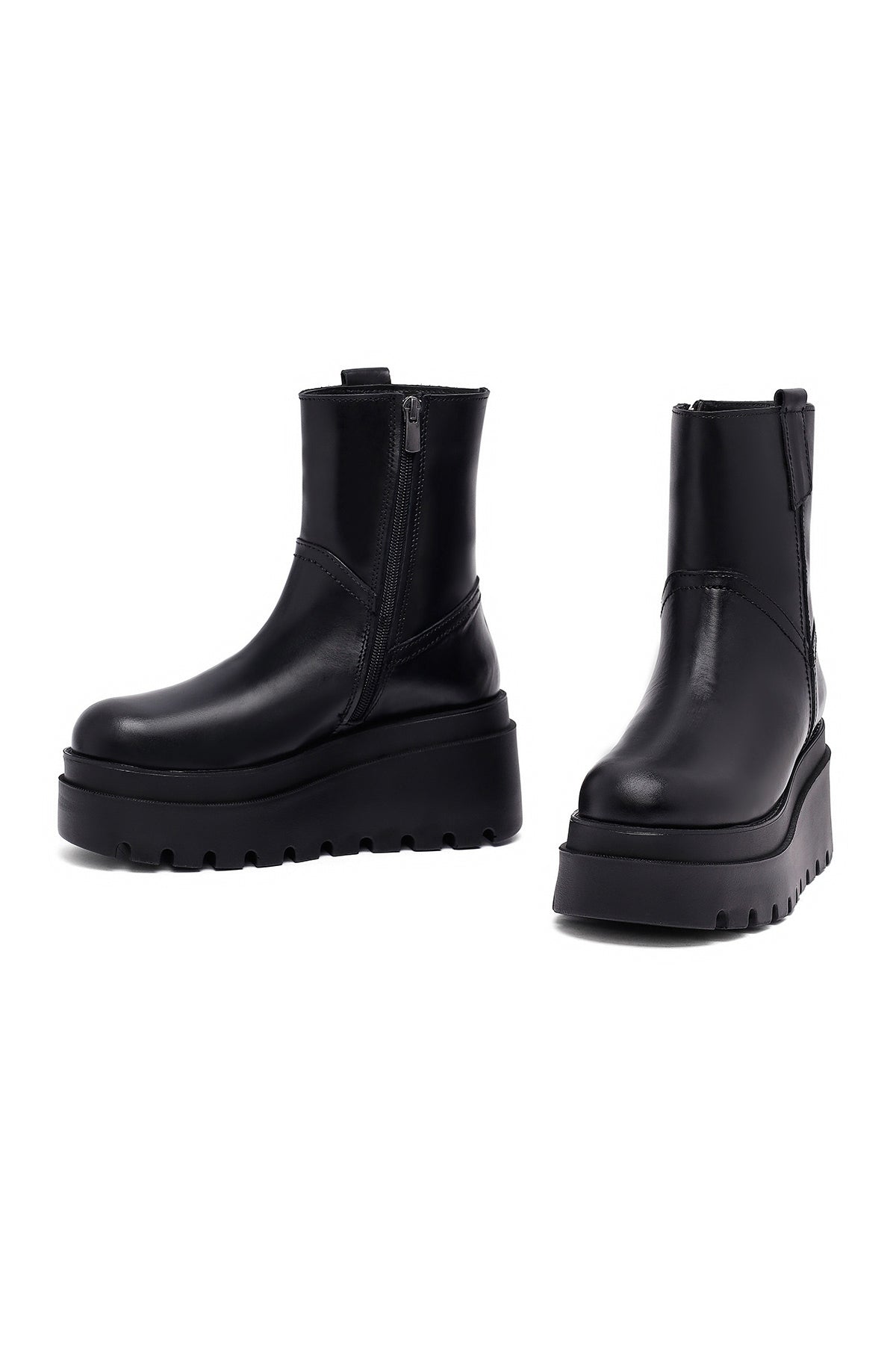 نیم بوت زنانه چرمی مشکی زیپدار زیرهضخیم دری مد