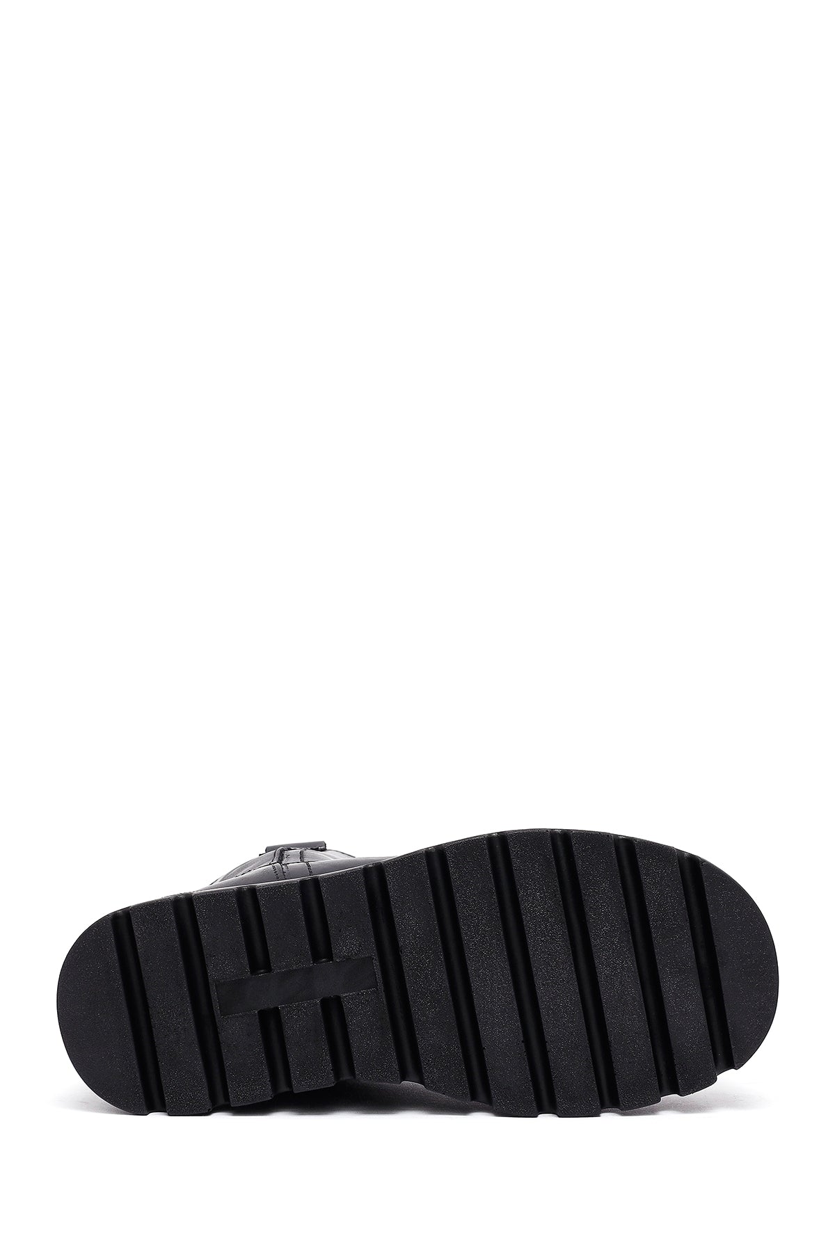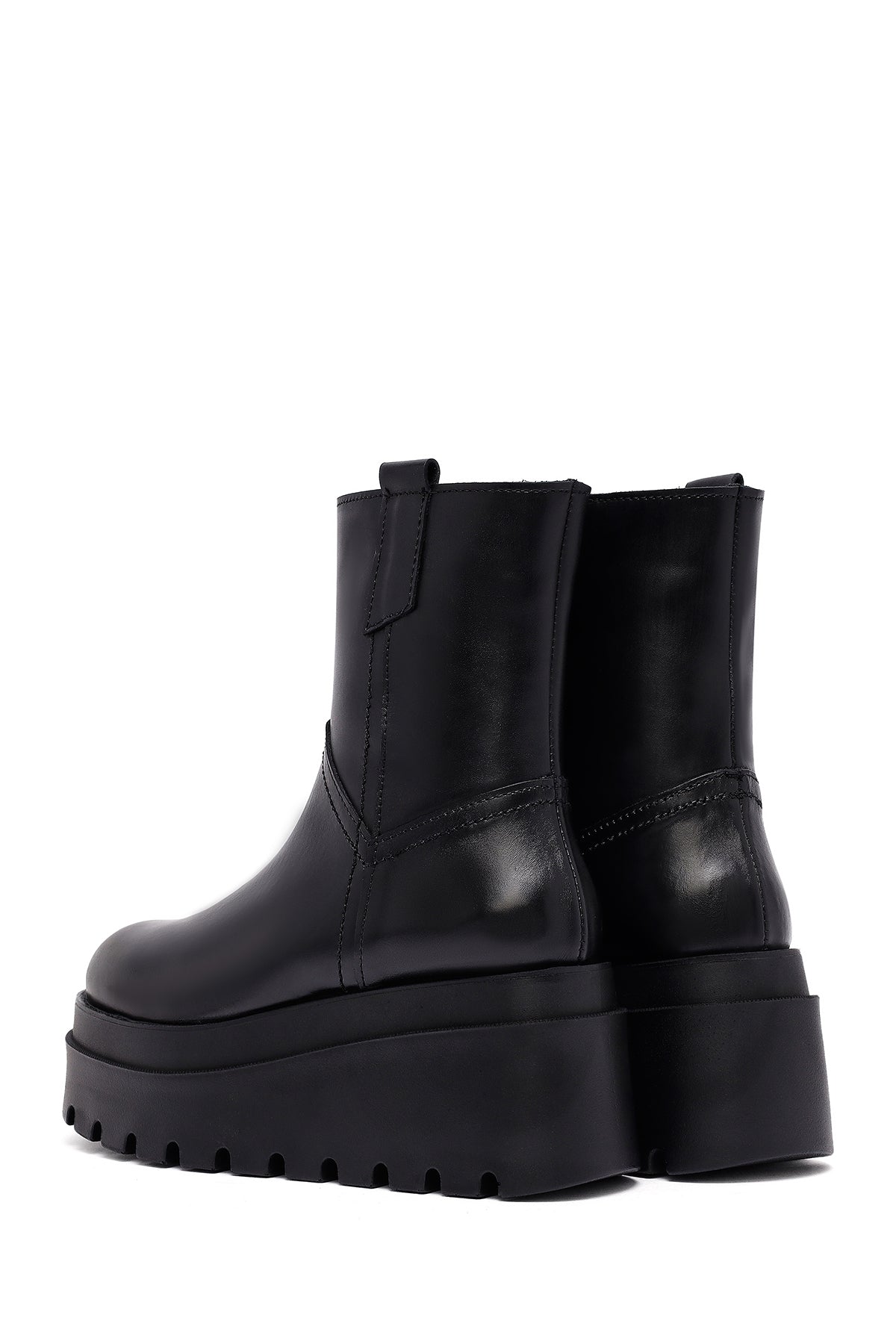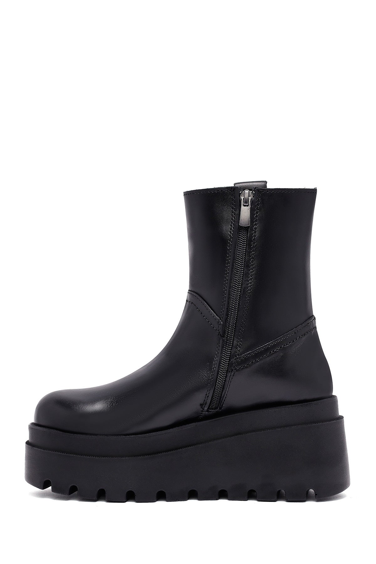 Kadın Siyah Fermuarlı Kalın Tabanlı Deri Bot