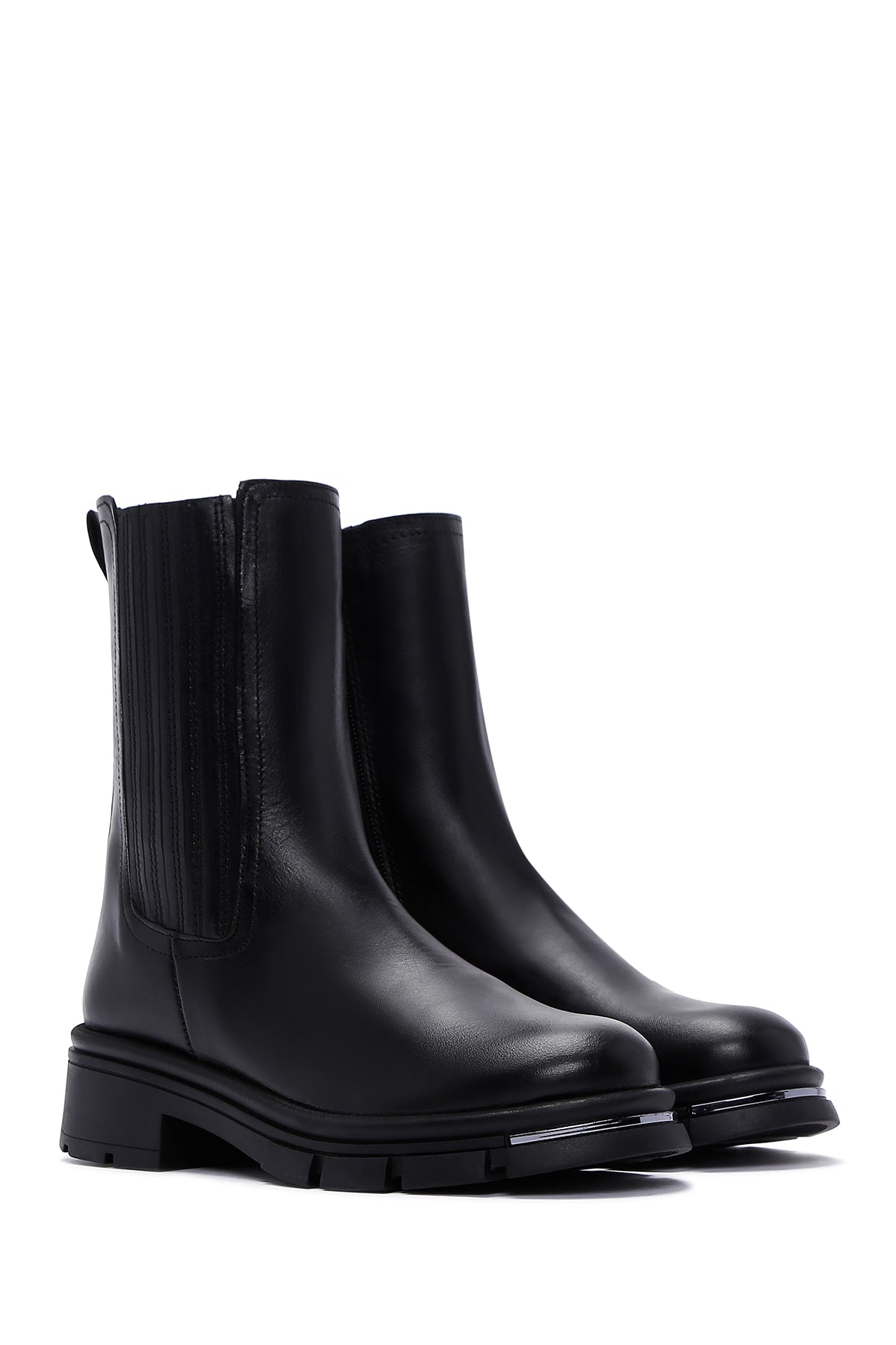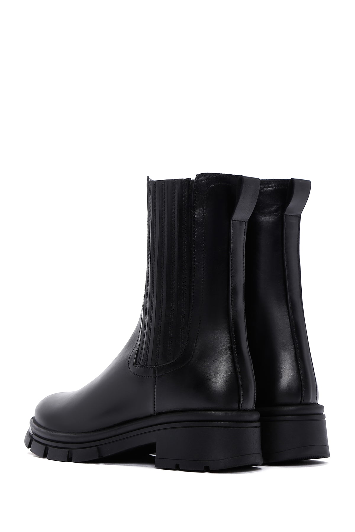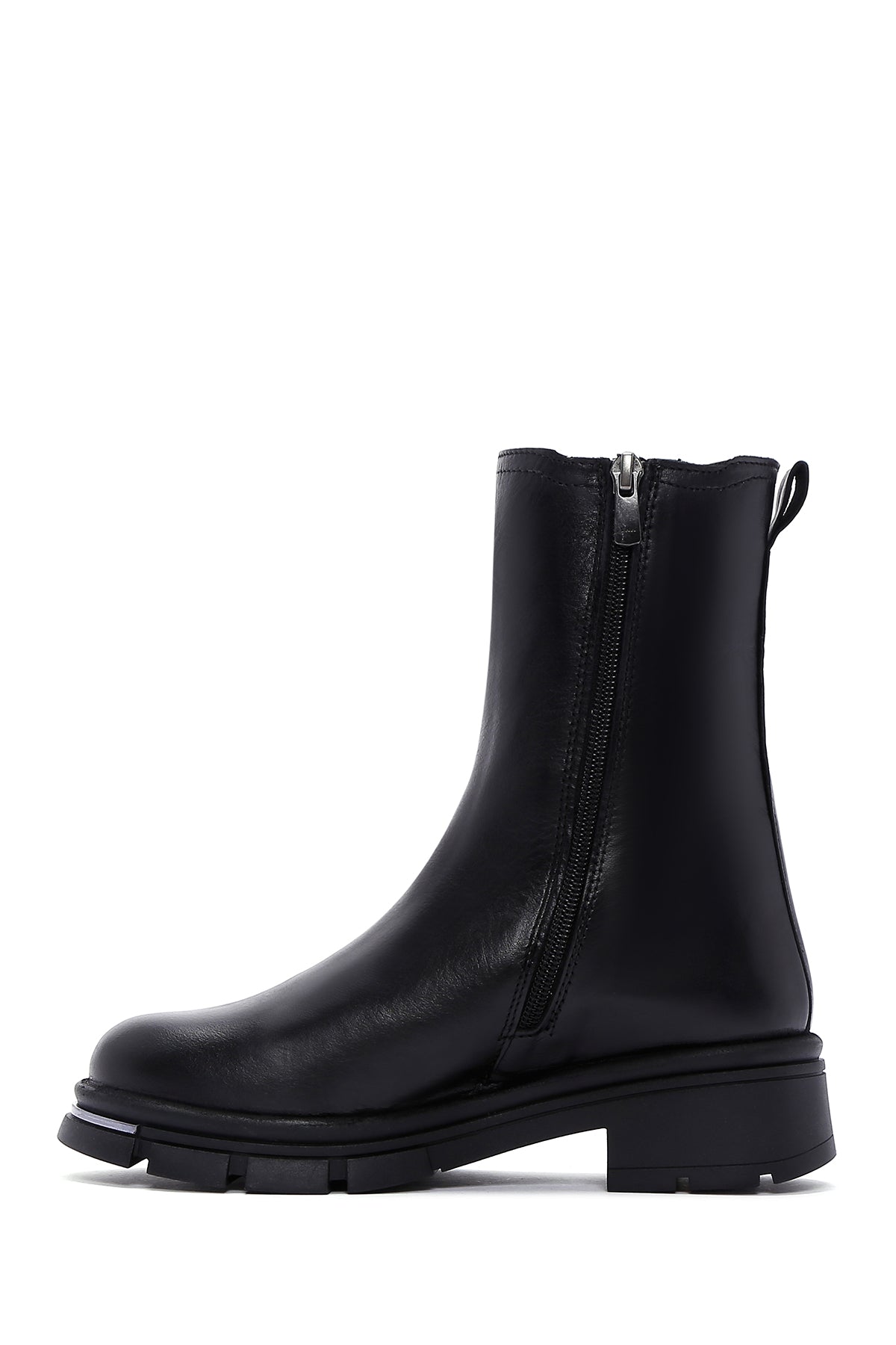 Kadın Siyah Fermuarlı Kalın Tabanlı Deri Bot