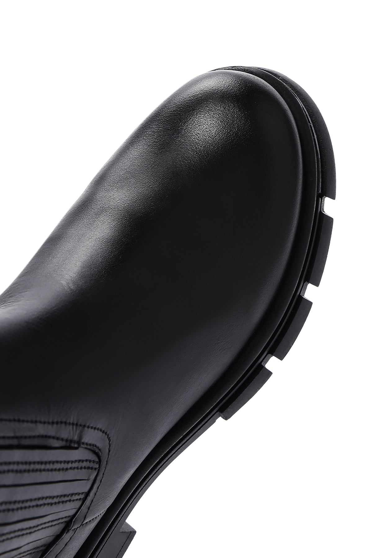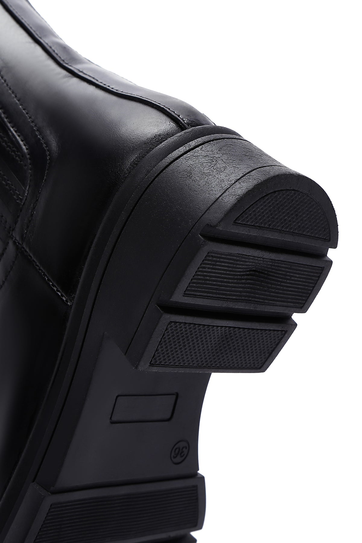 نیم بوت زنانه چرمی مشکی زیپدار زیرهضخیم دری مد