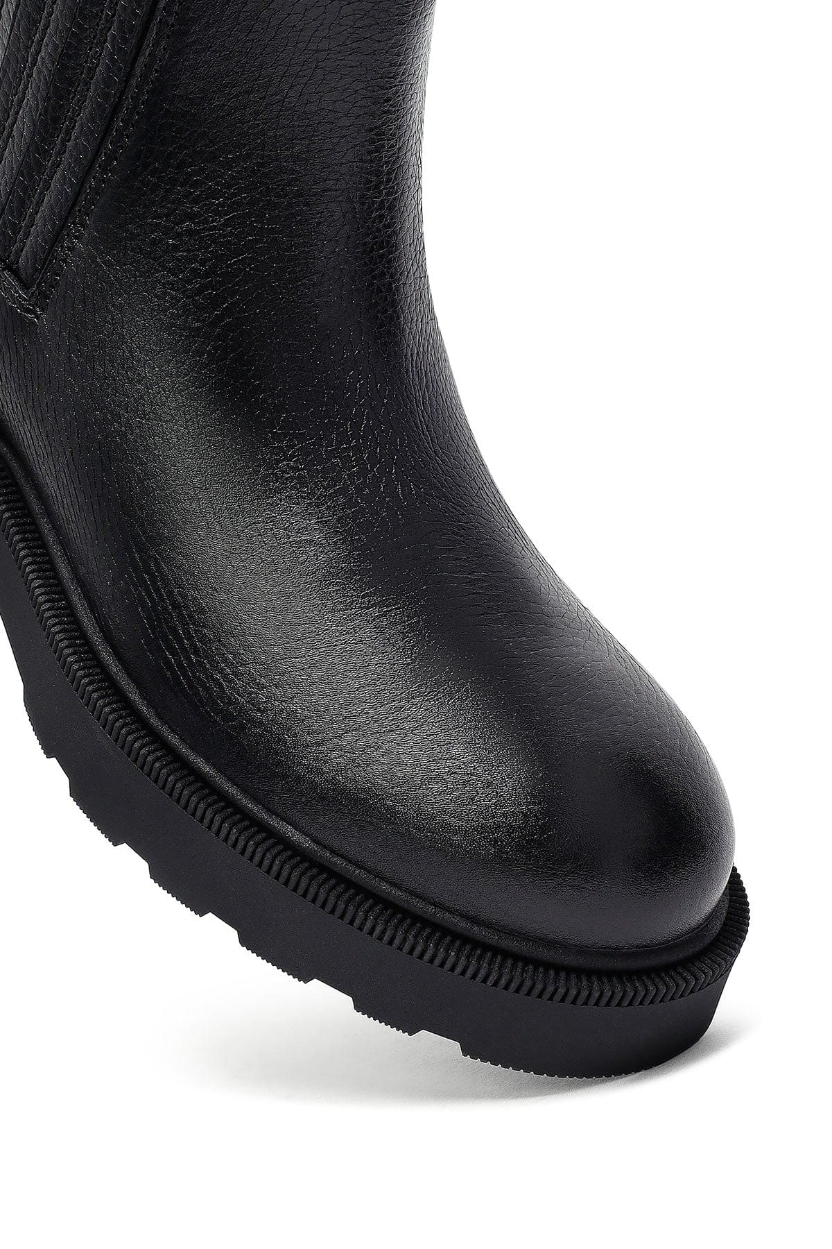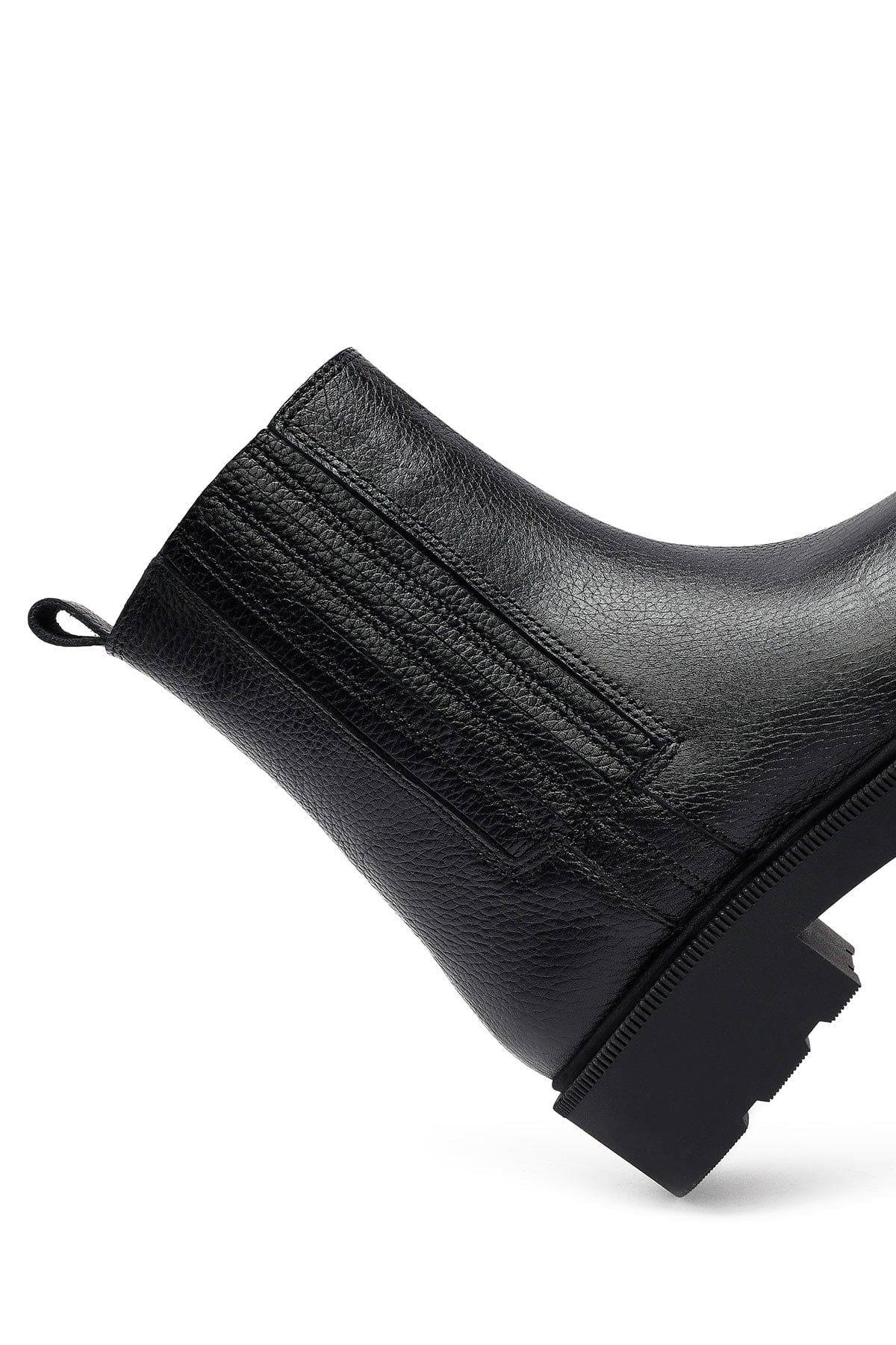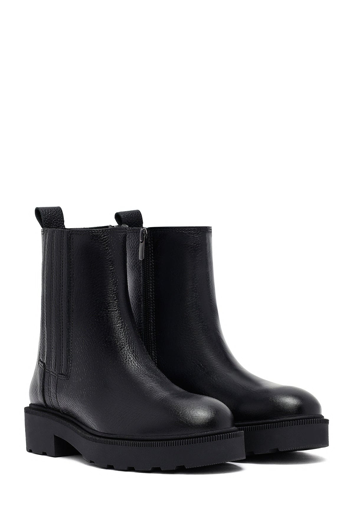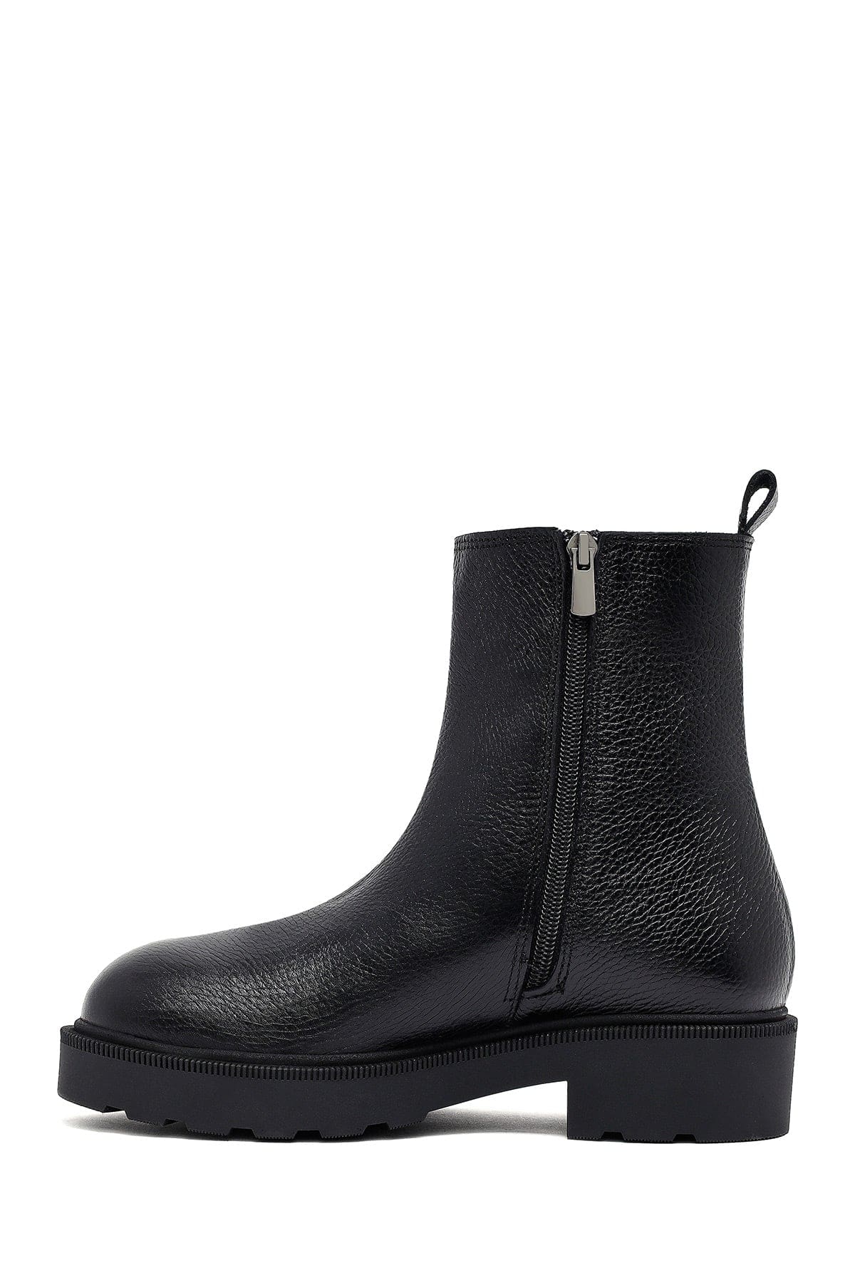 Kadın Siyah Fermuarlı Kalın Tabanlı Deri Bot