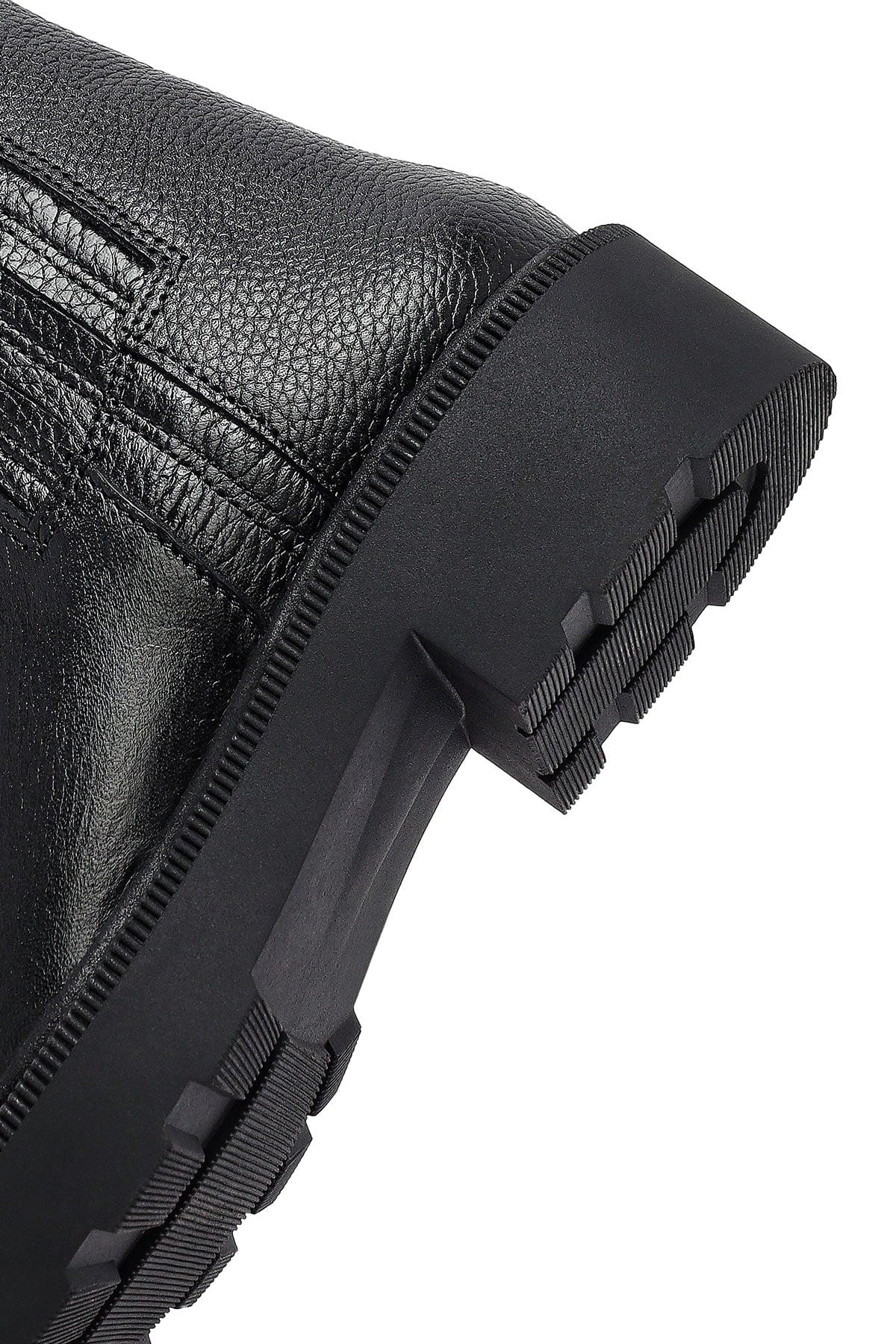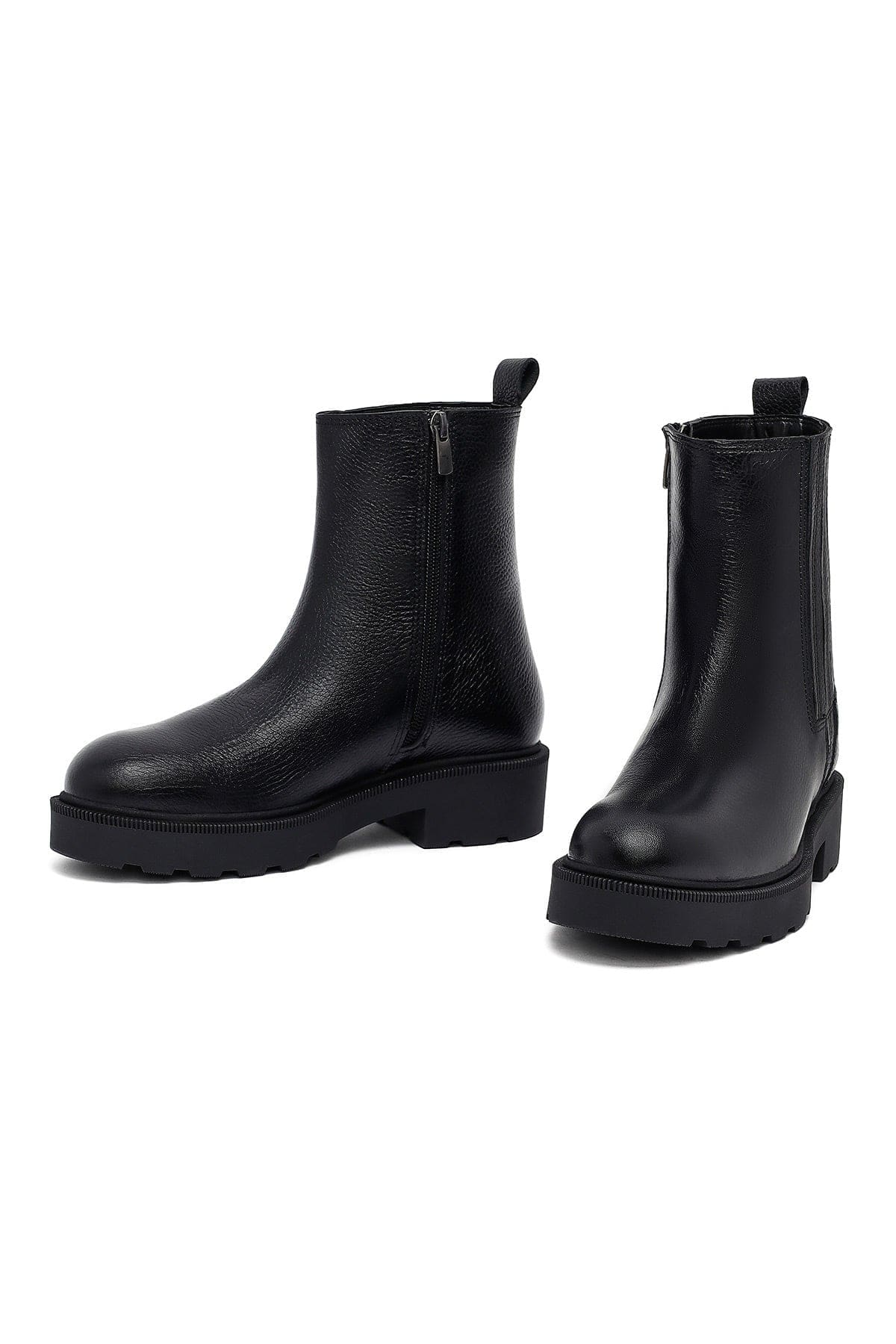 نیم بوت زنانه چرمی مشکی زیپدار زیرهضخیم دری مد