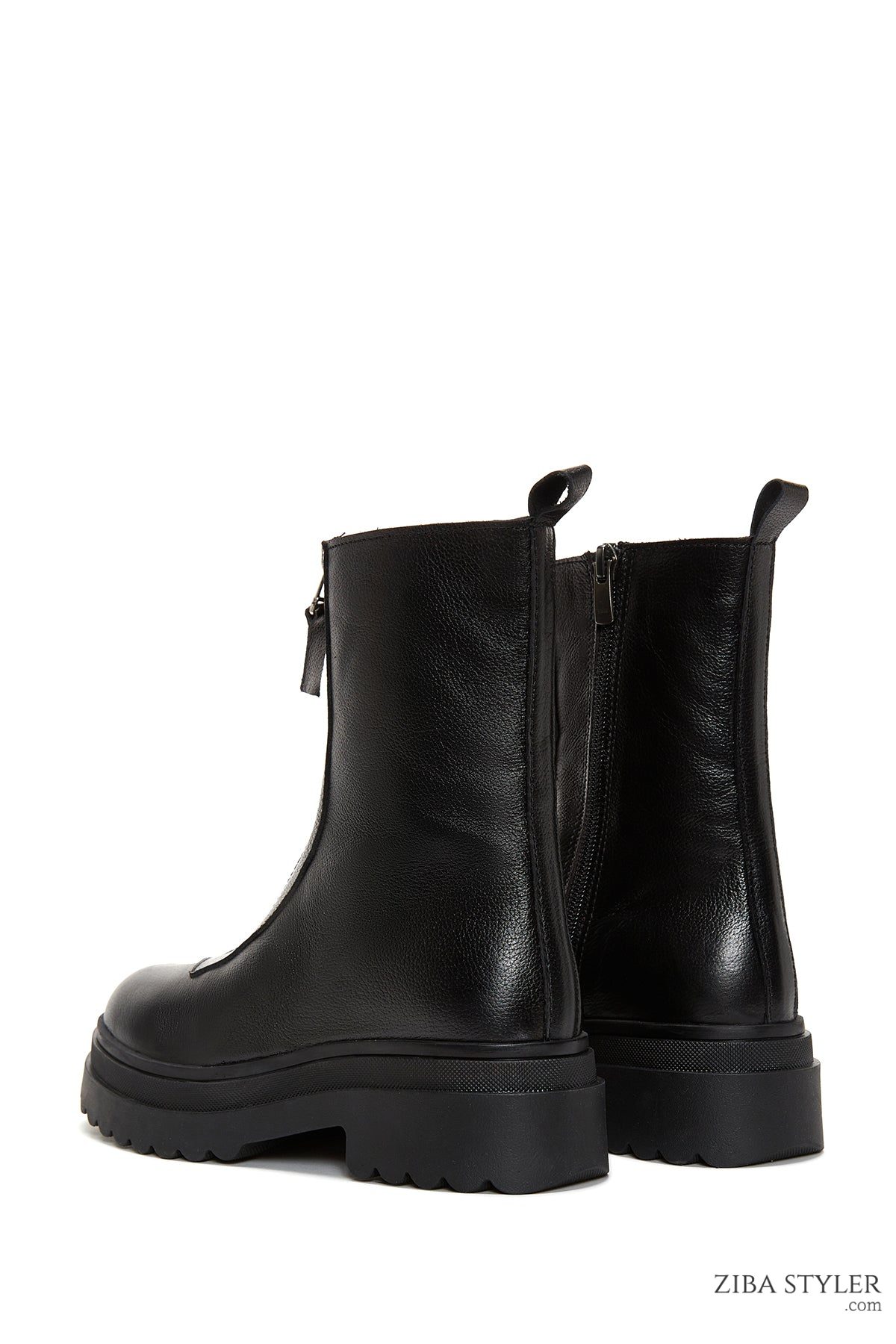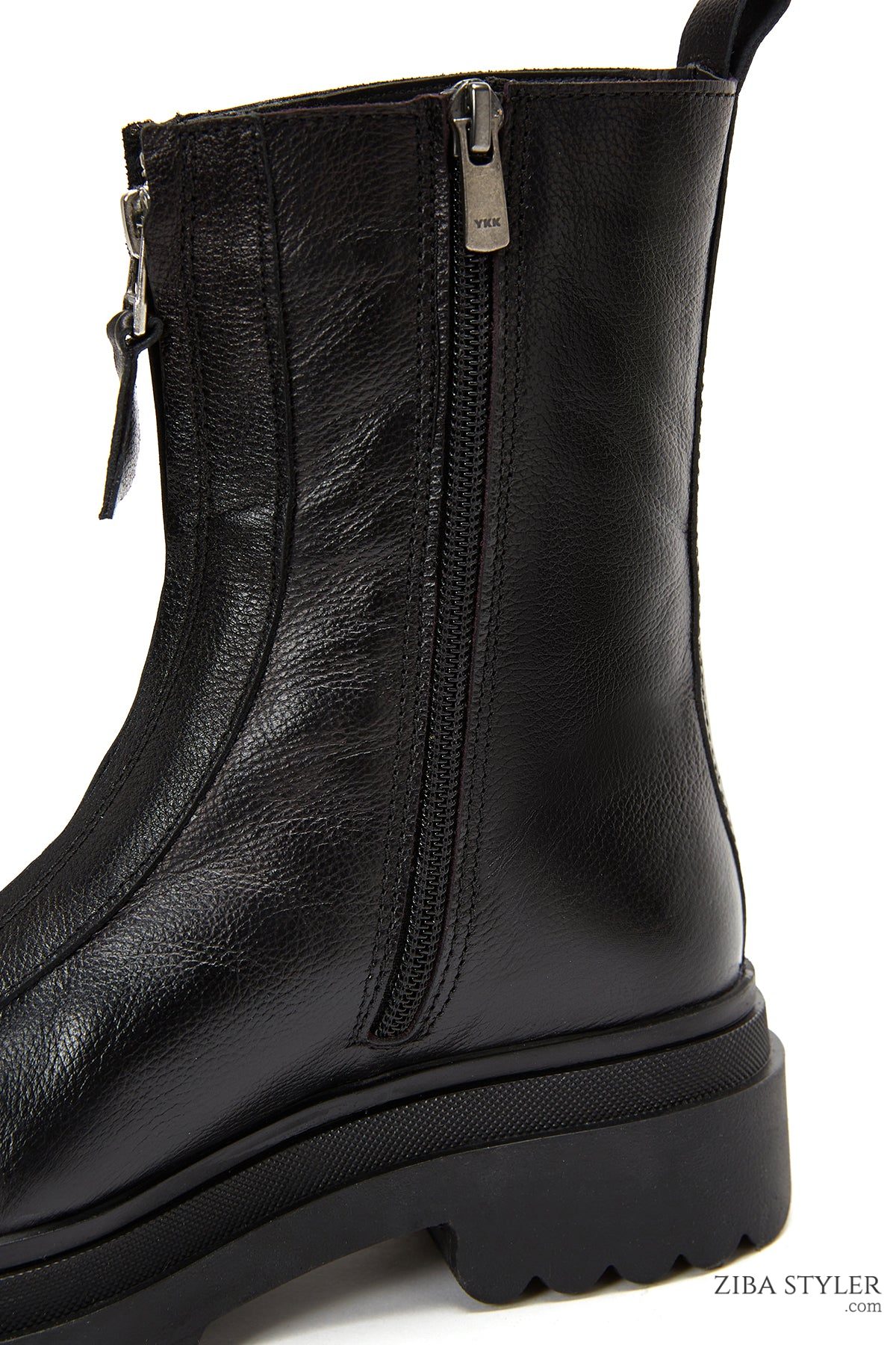 نیم بوت زنانه چرمی مشکی زیپدار زیرهضخیم دری مد