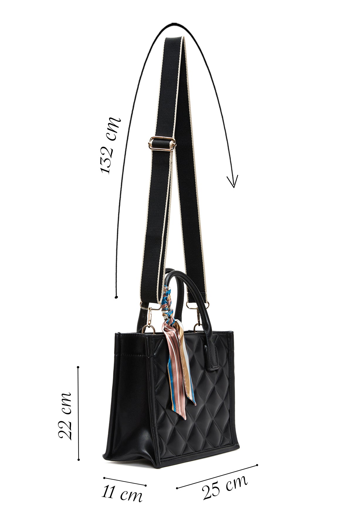Kadın Siyah Uzun Askılı Aksesuarlı Kapitone Kol Çantası