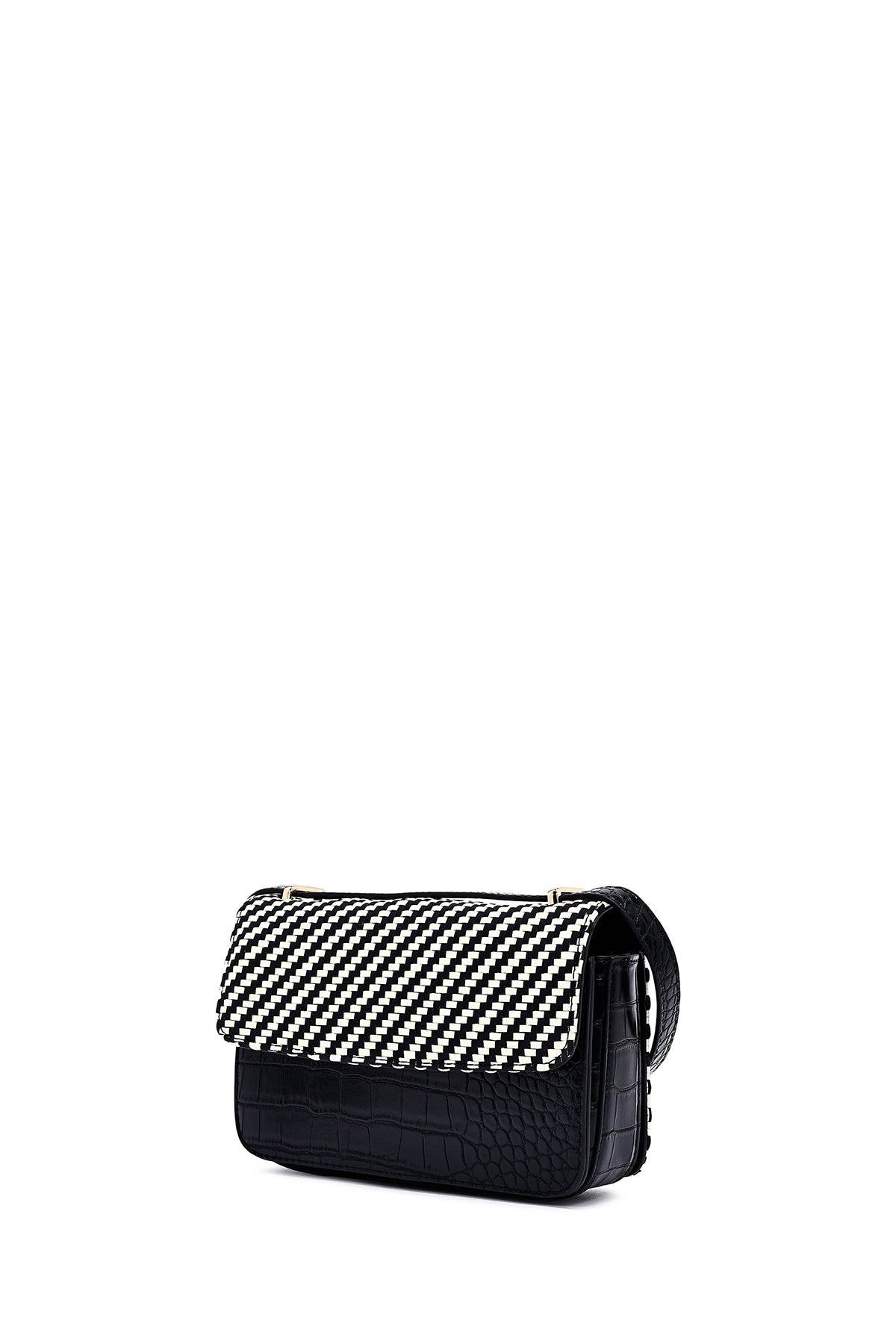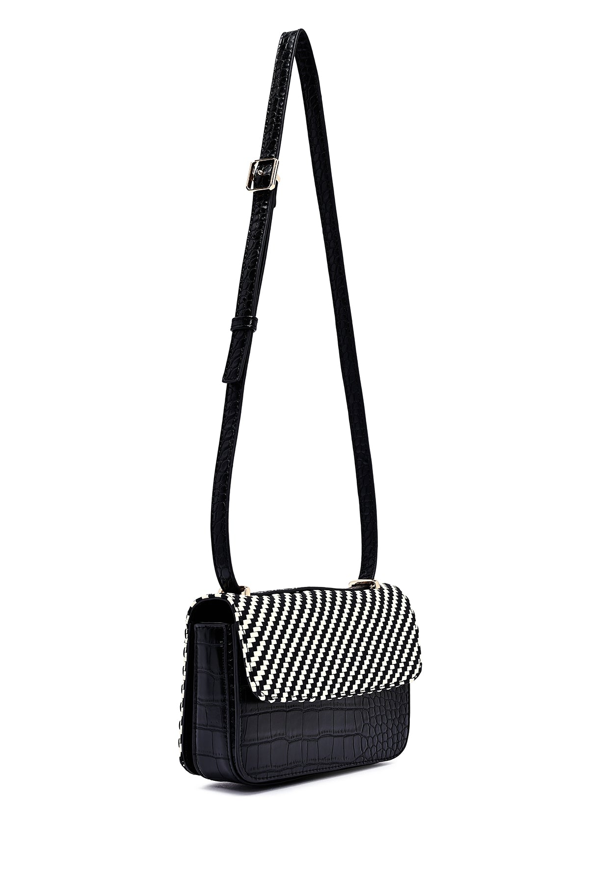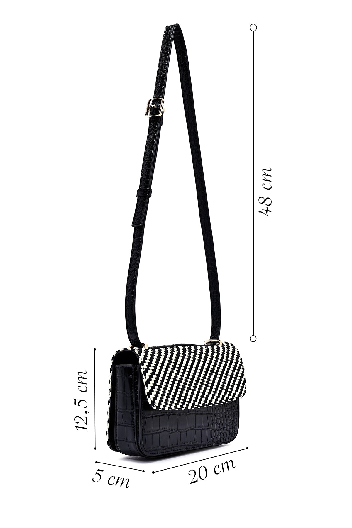 Kadın Siyah Uzun Askılı Baskılı Çapraz Çanta