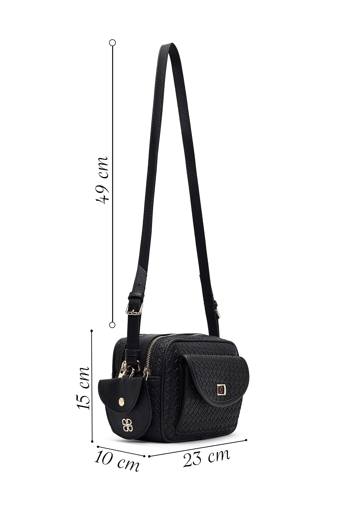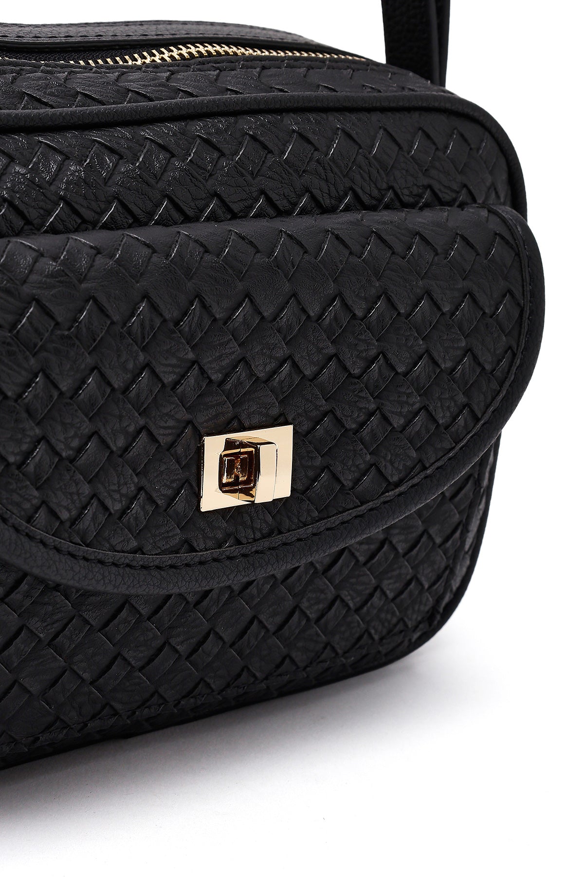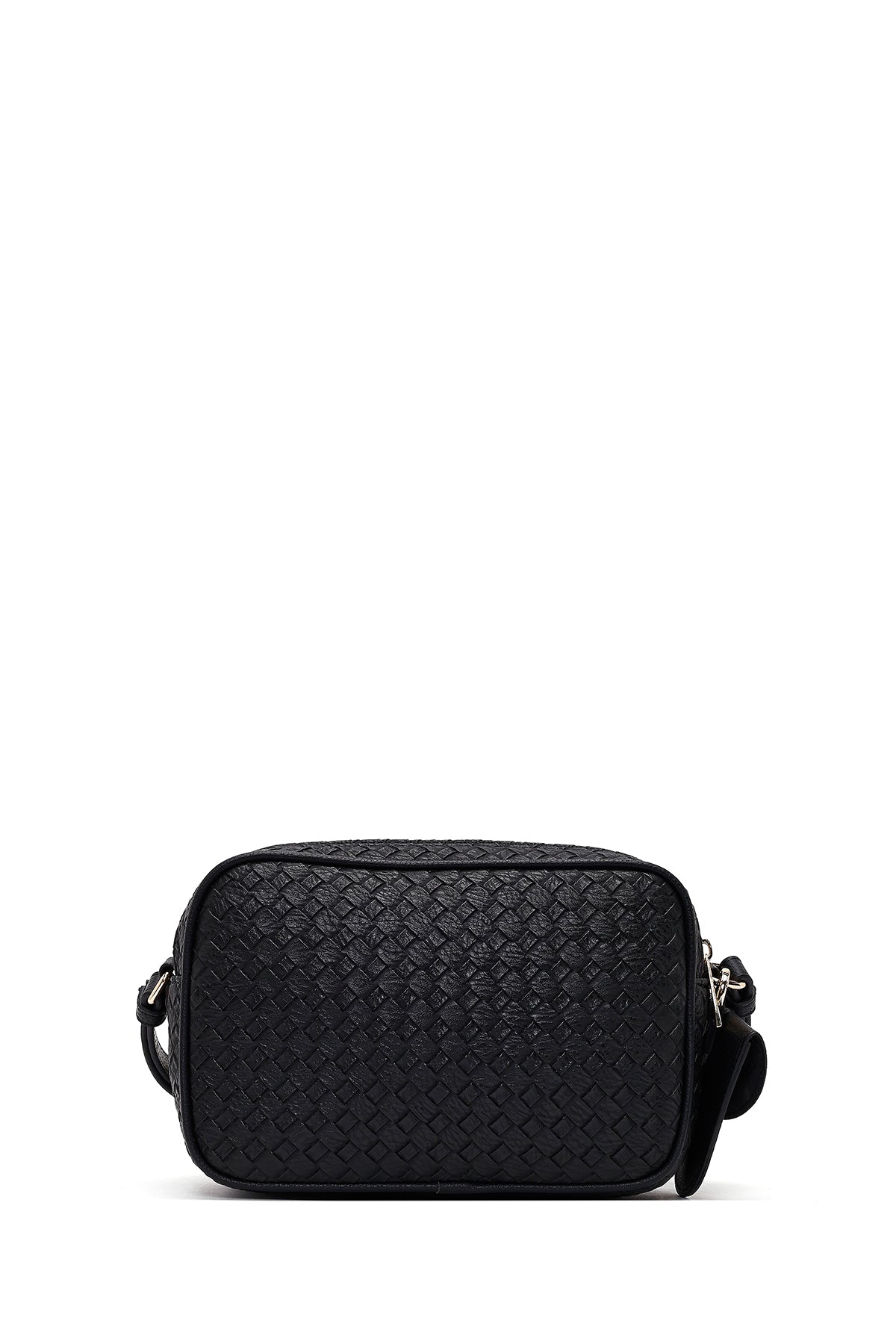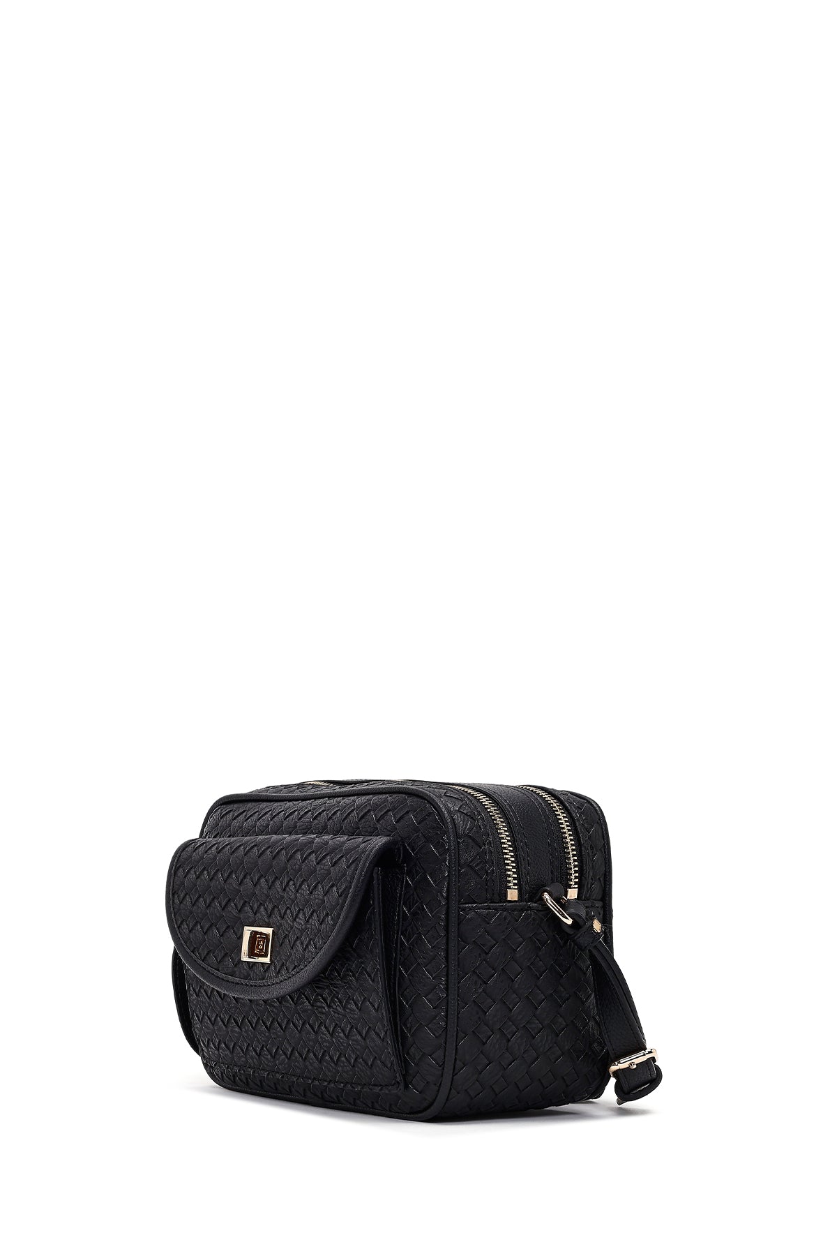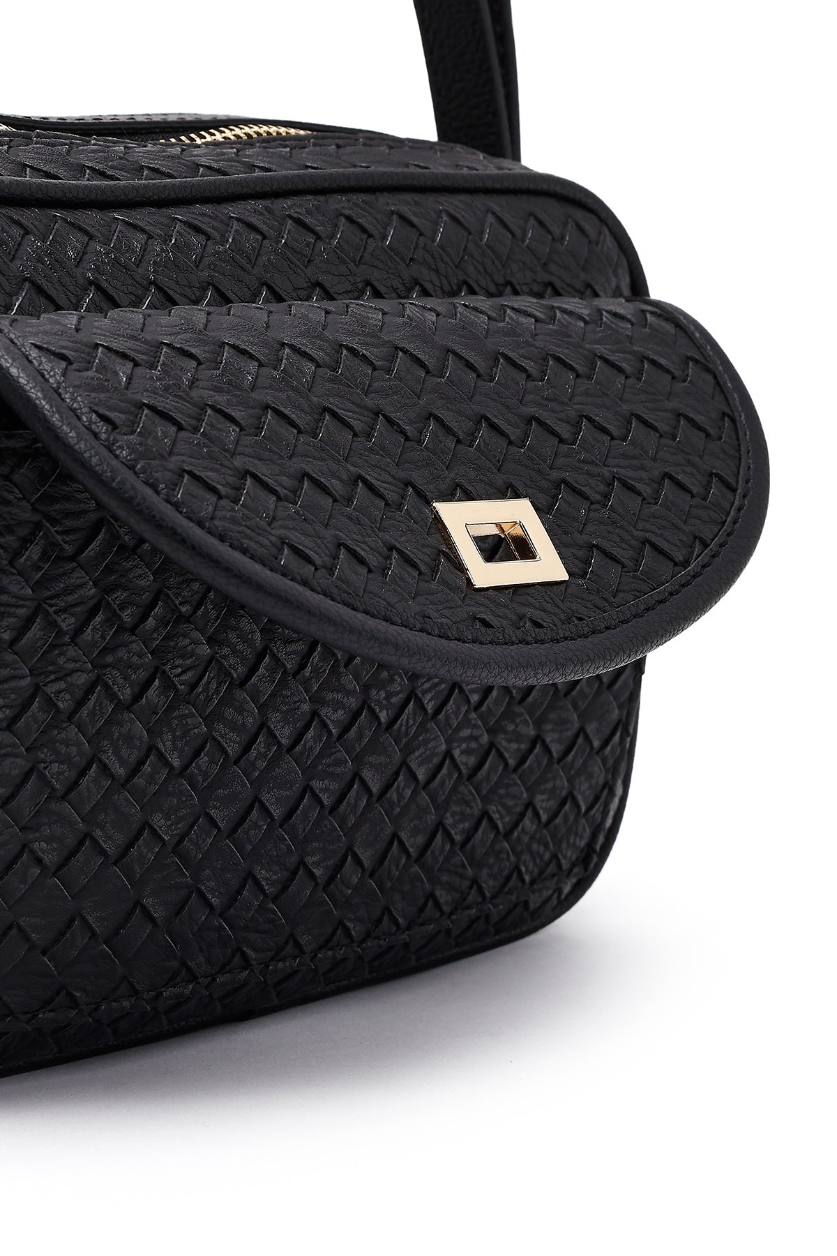 کیف کراس بادی زنانه مشکی بلند با جزئیات بافت دری مد