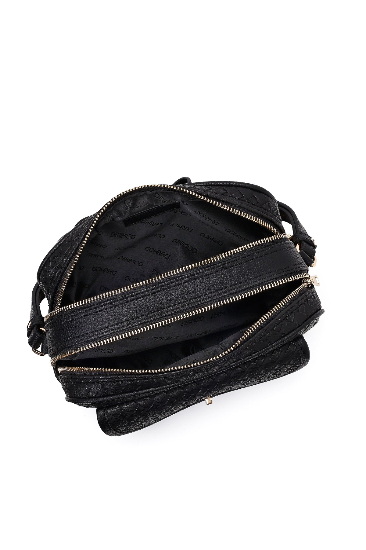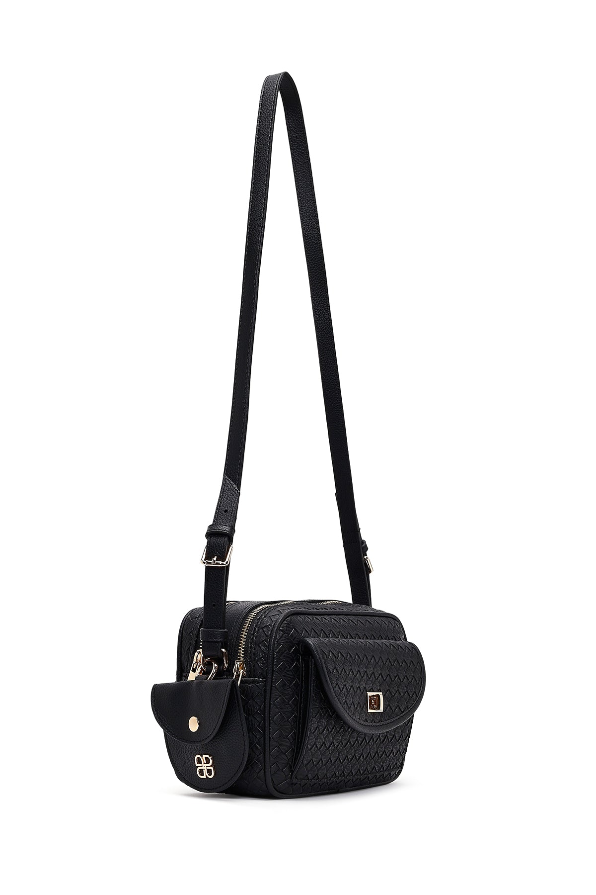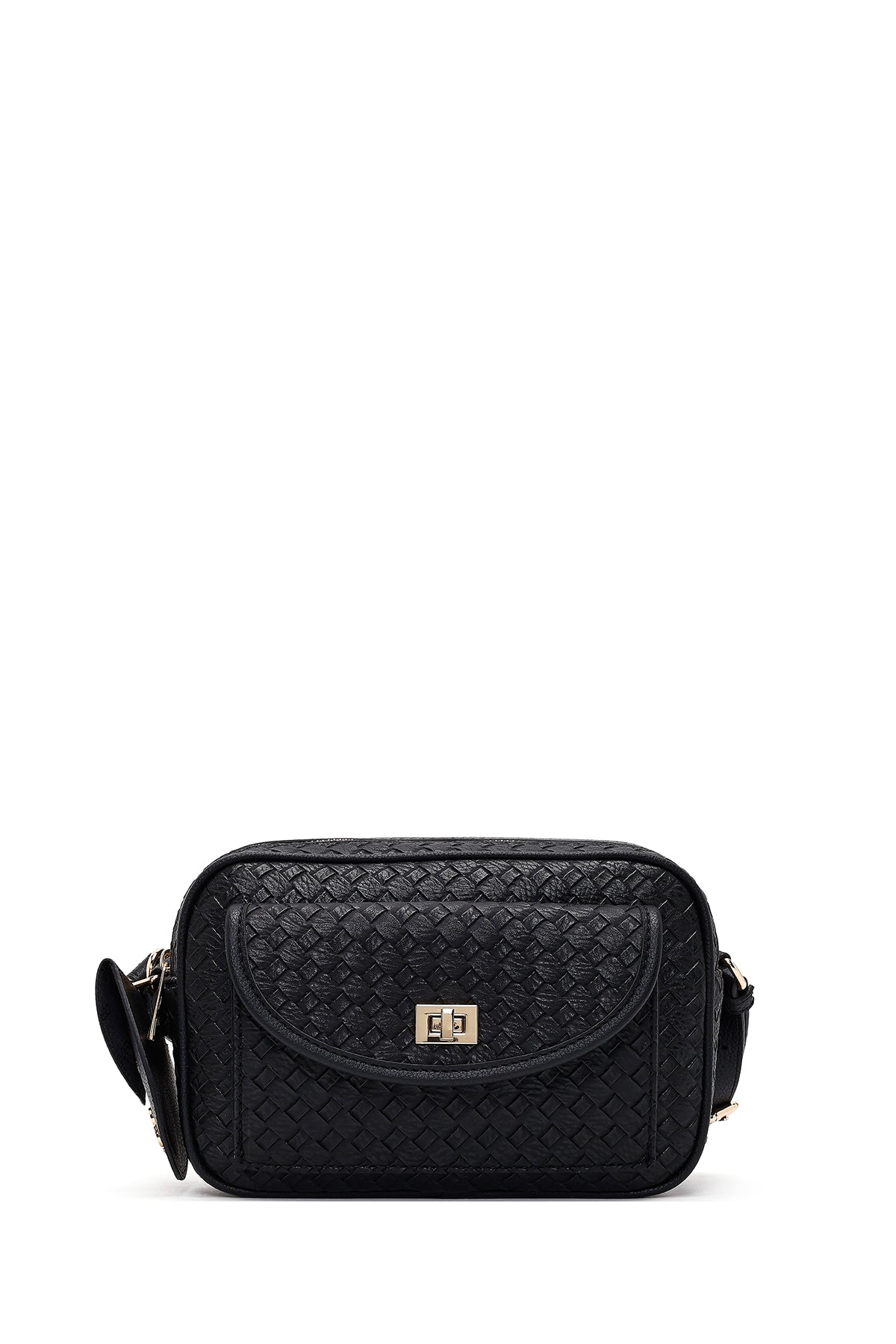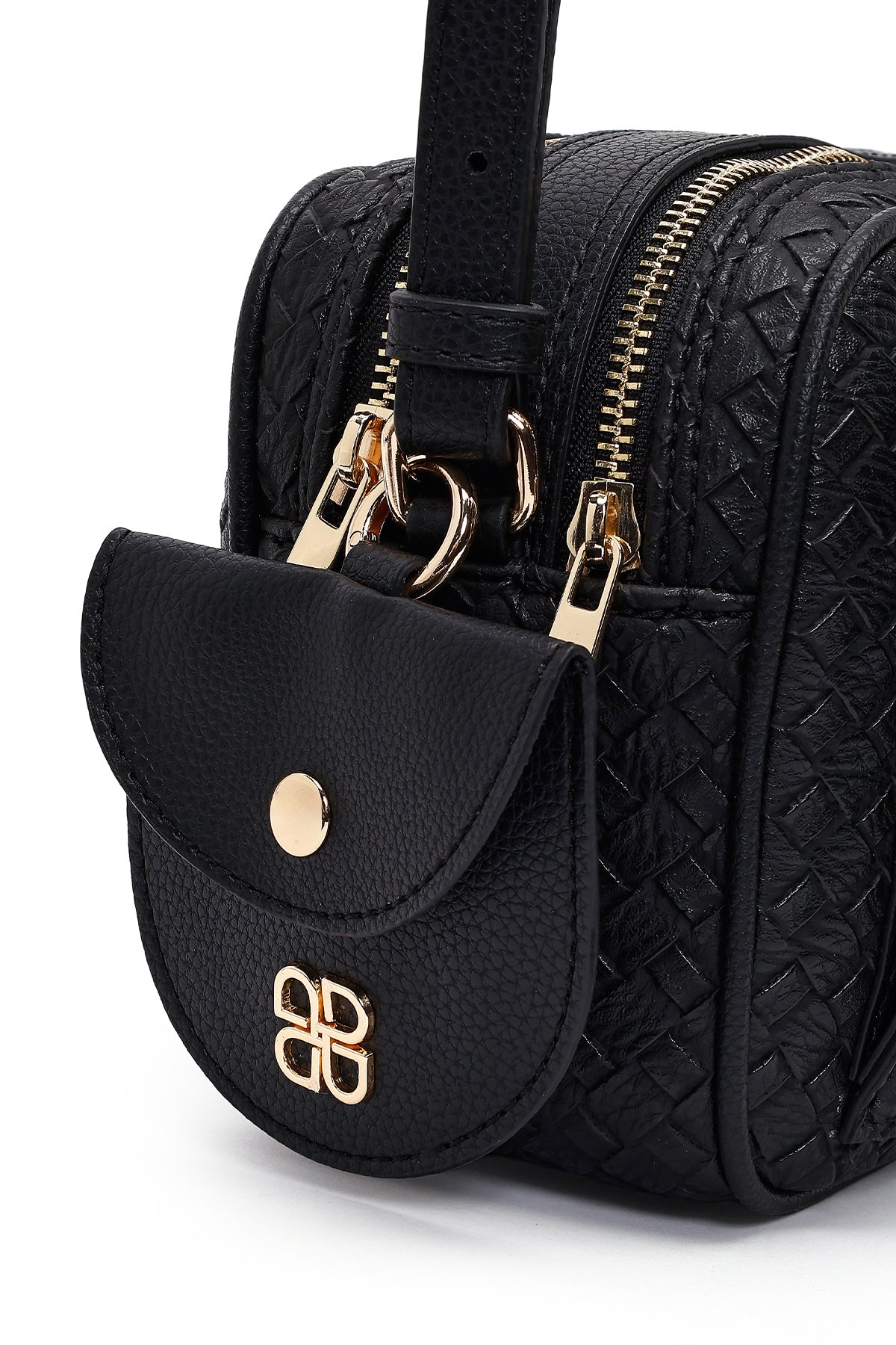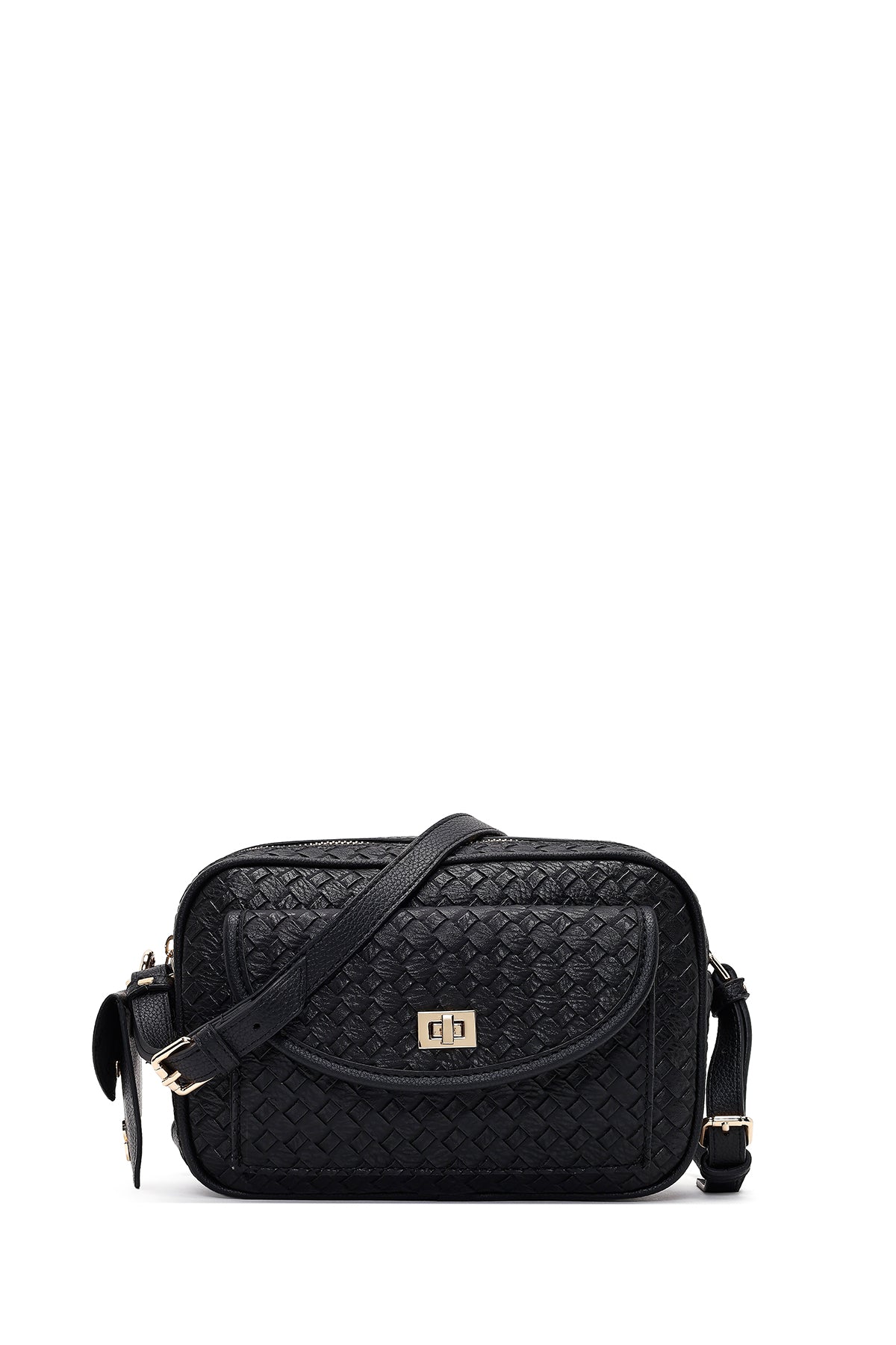 کیف کراس بادی زنانه مشکی بلند با جزئیات بافت دری مد