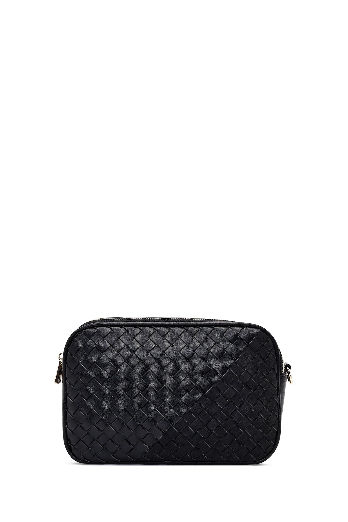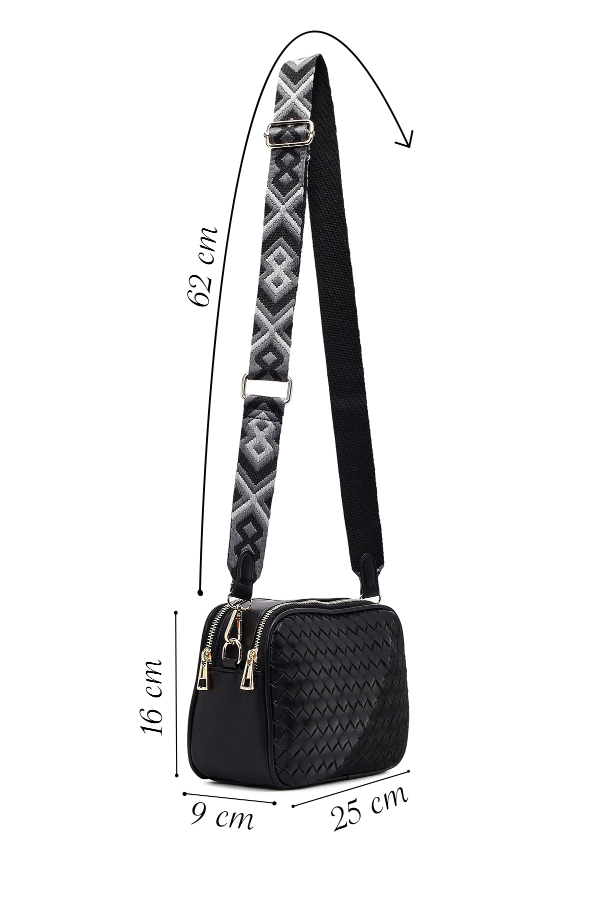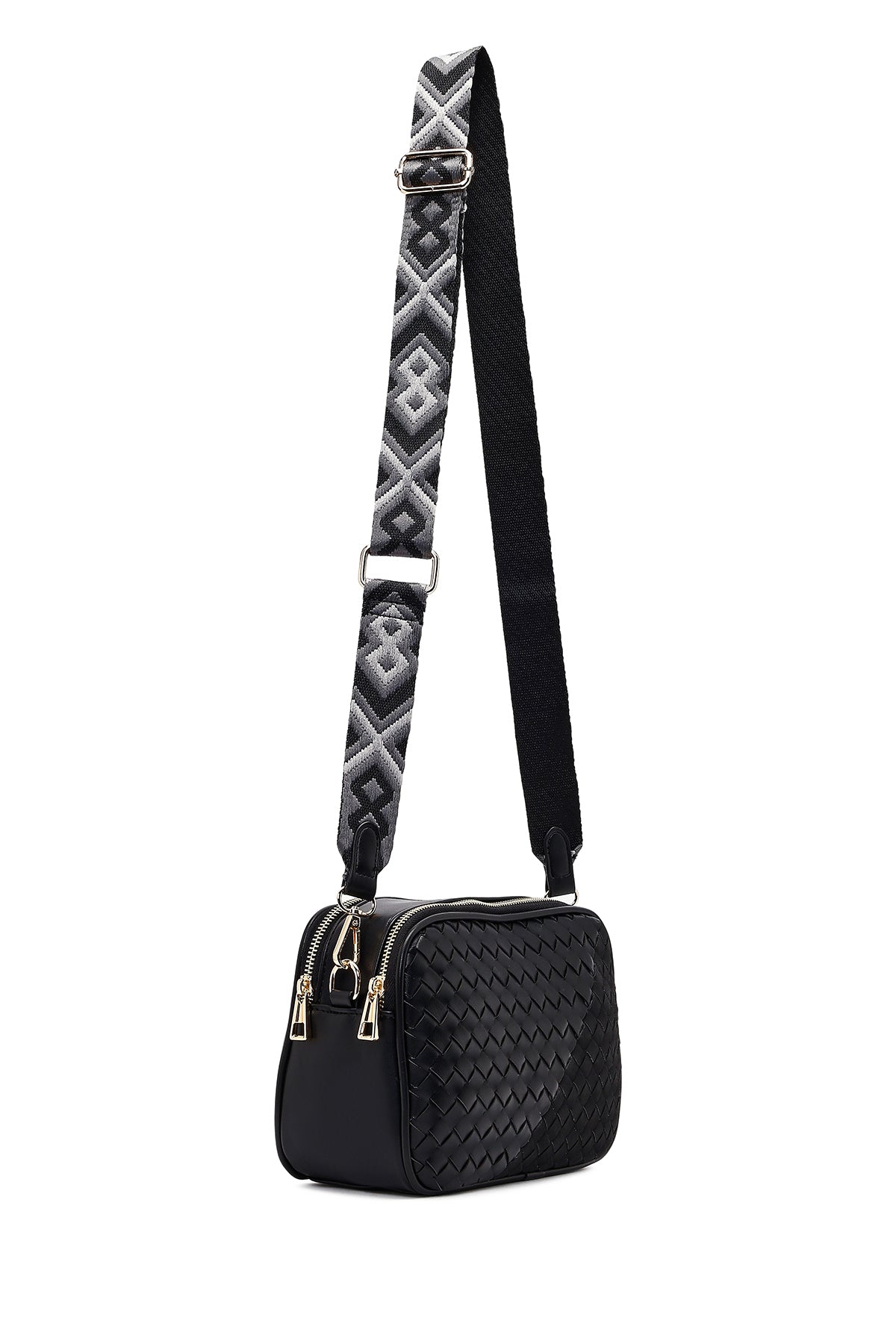 کیف کراس بادی زنانه مشکی بلند با جزئیات بافت دری مد